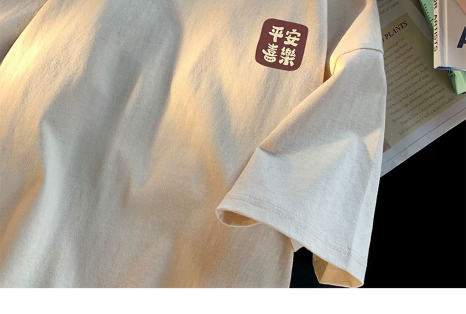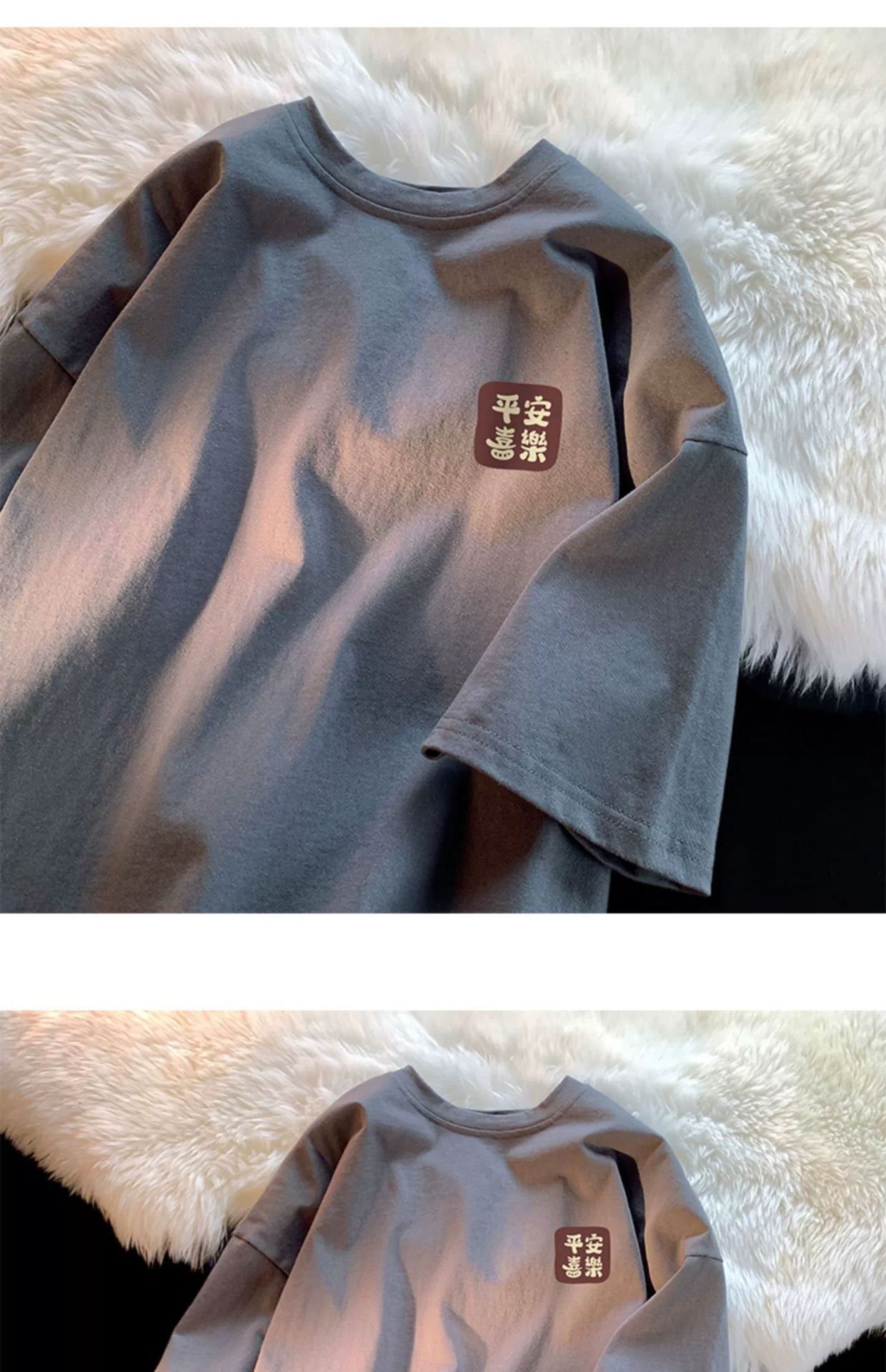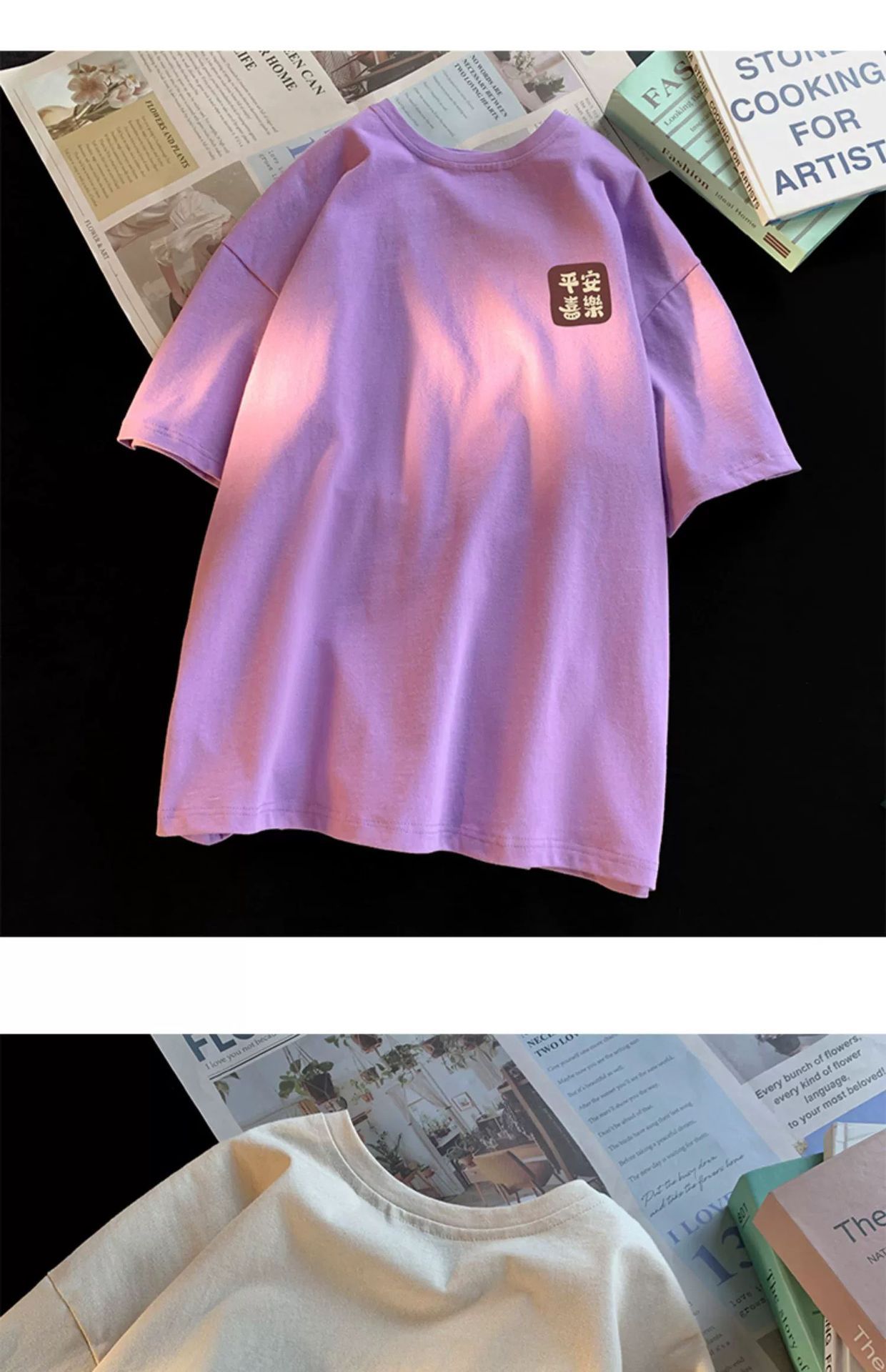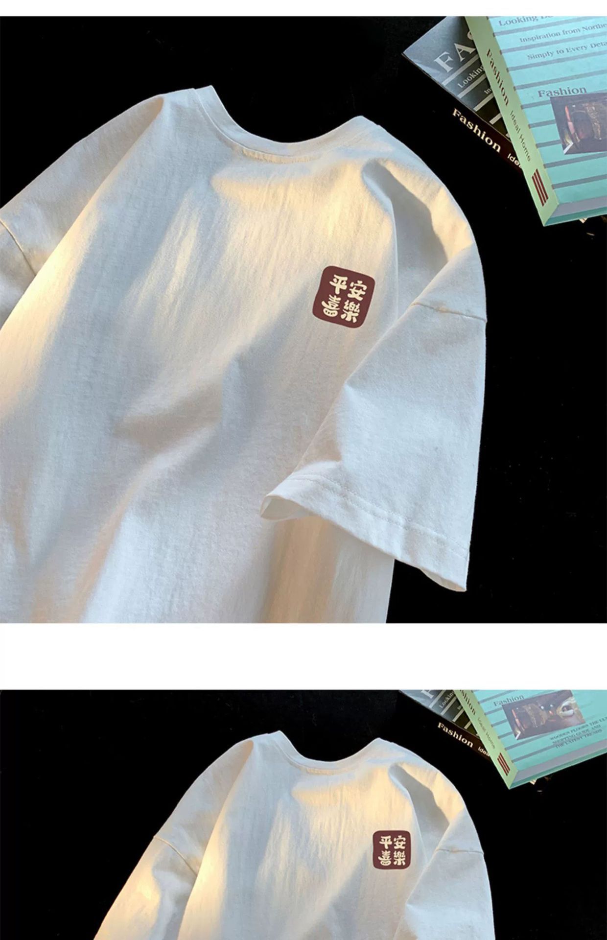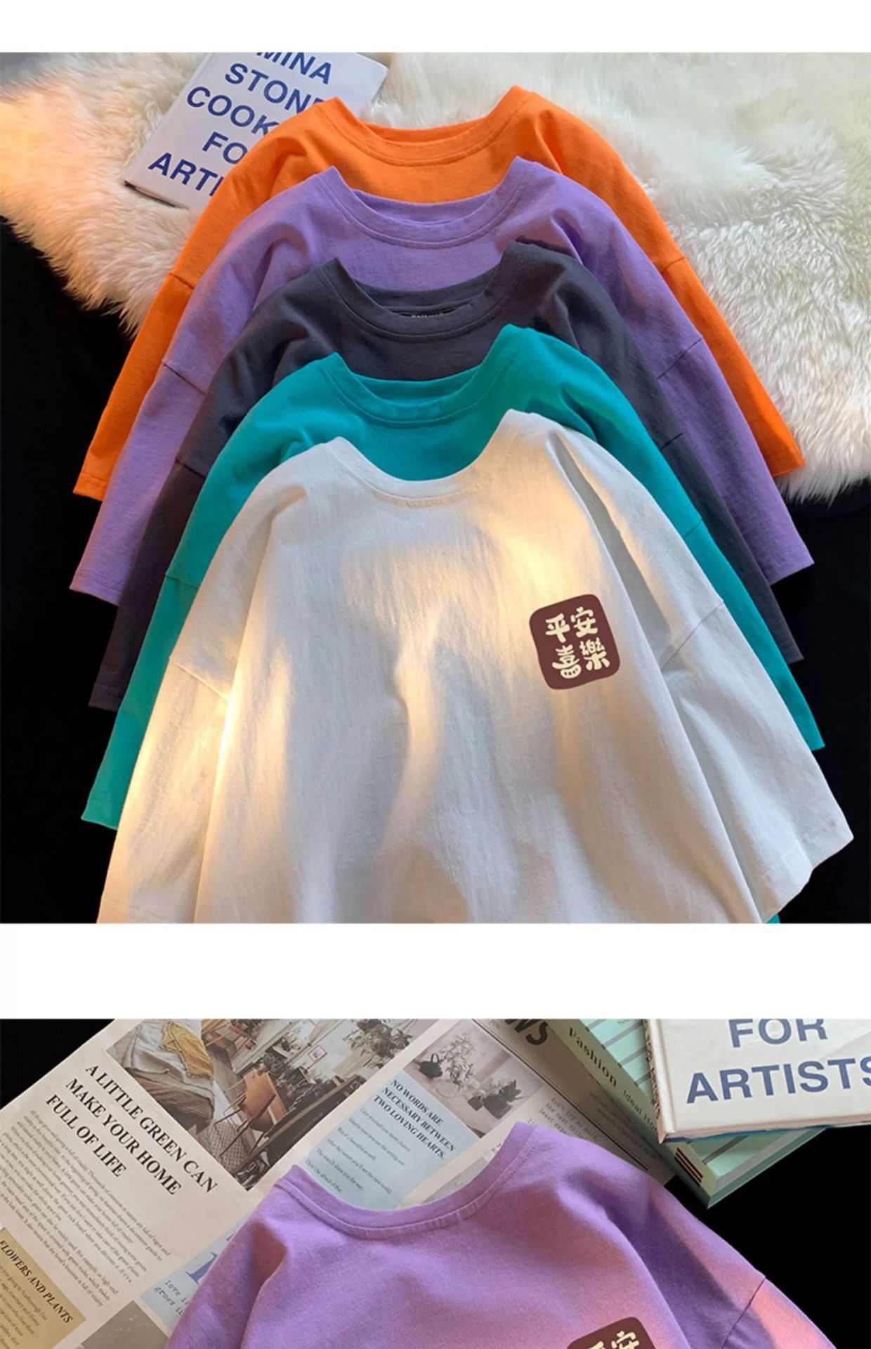 酒红色220g重磅t恤男潮牌夏季纯棉平安喜乐短袖美式复古高街半袖