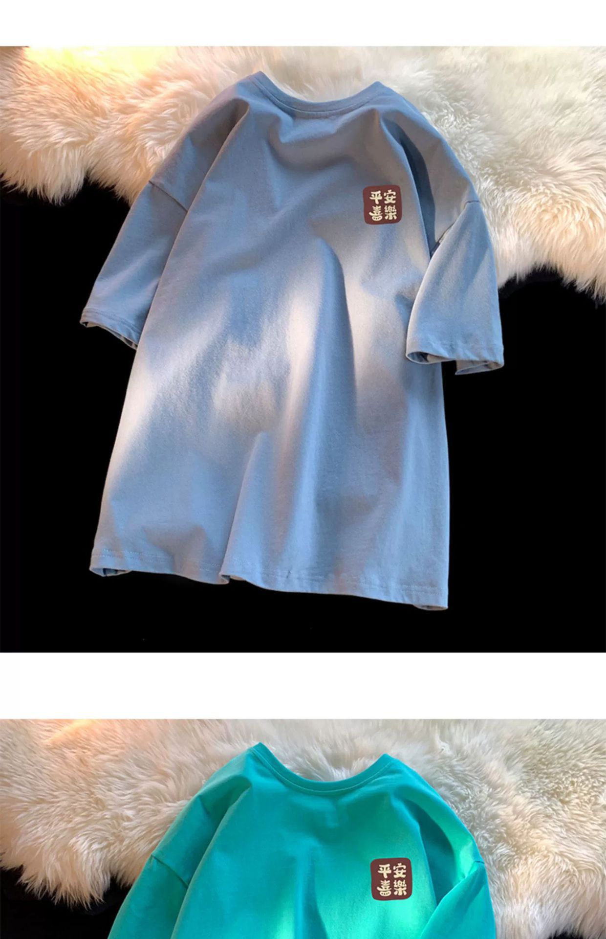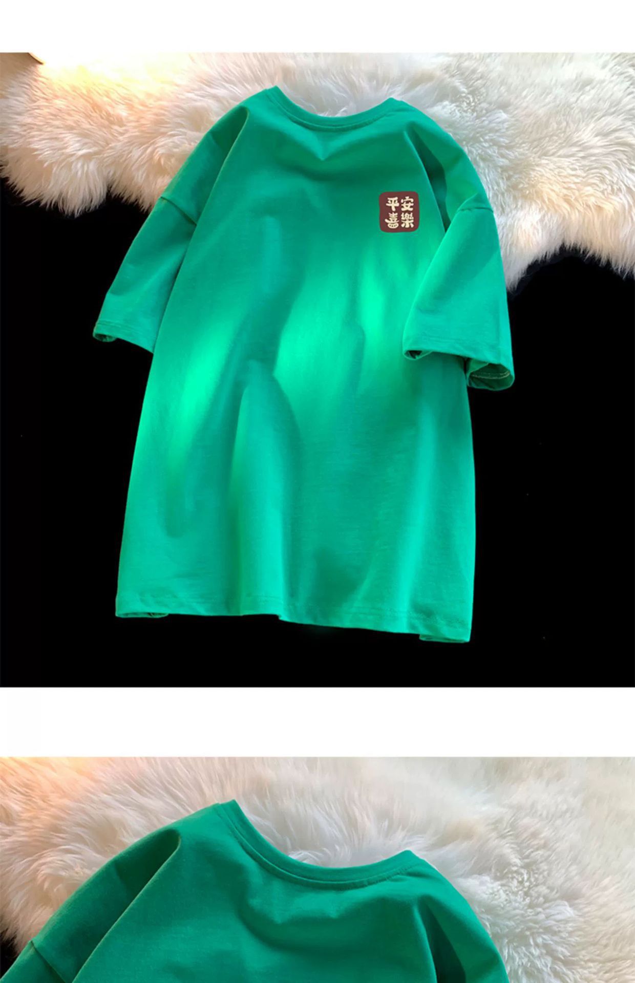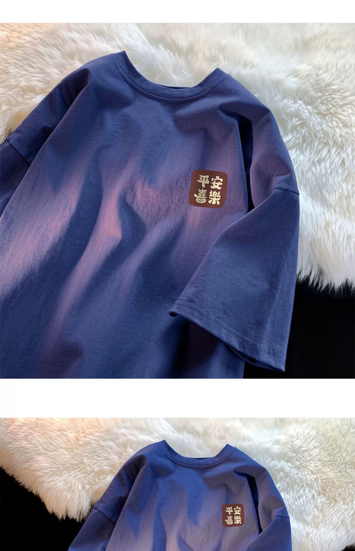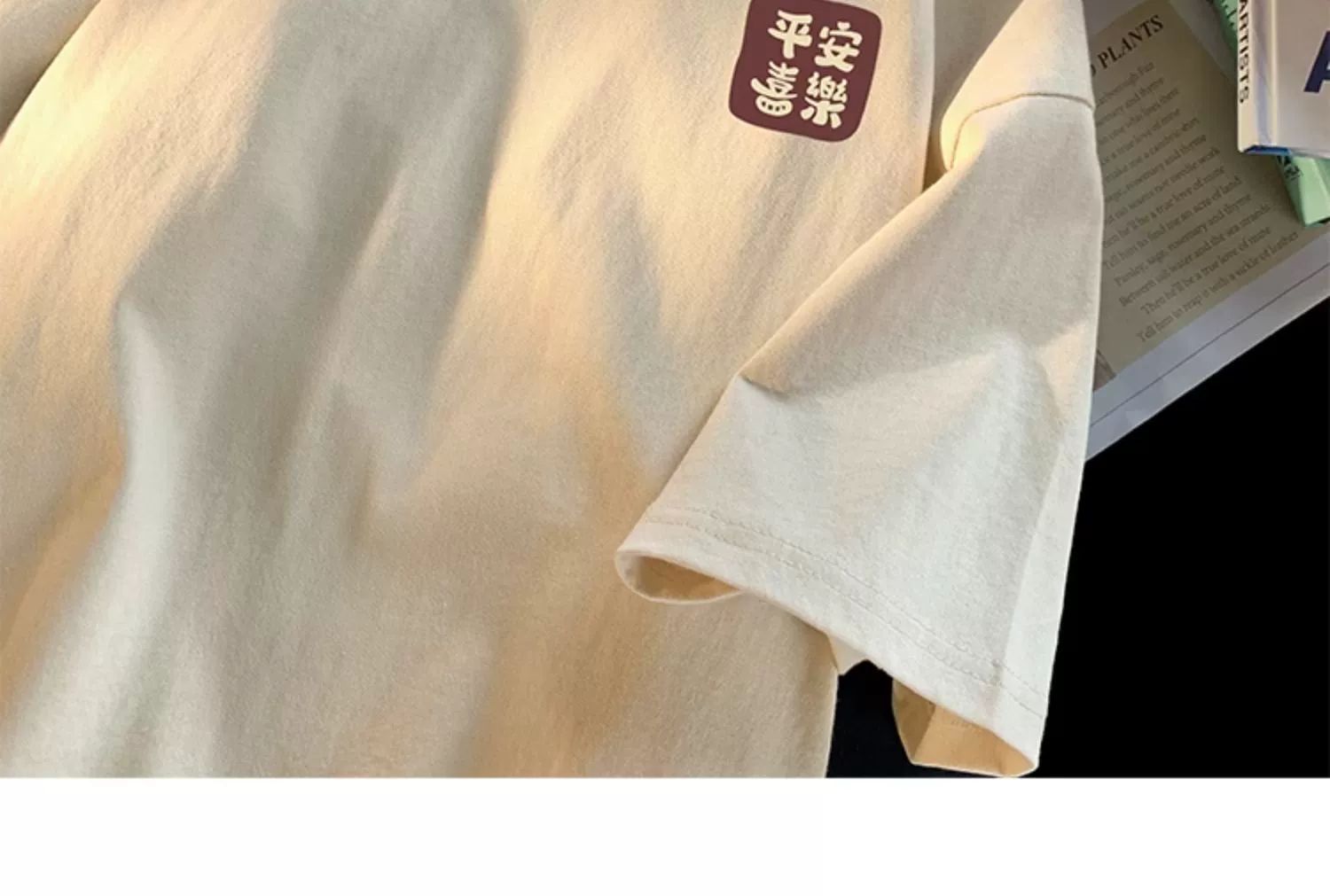酒红色220g重磅t恤男潮牌夏季纯棉平安喜乐短袖美式复古高街半袖