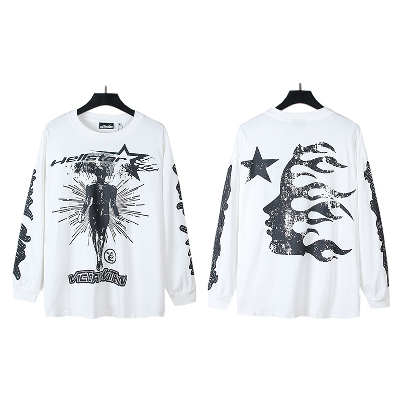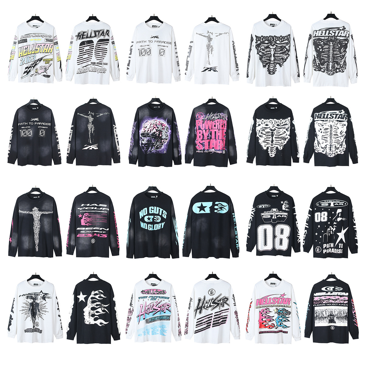 跨境批发Hellstar地狱之星TShirt秋装美潮高街宽松长袖T恤男女潮