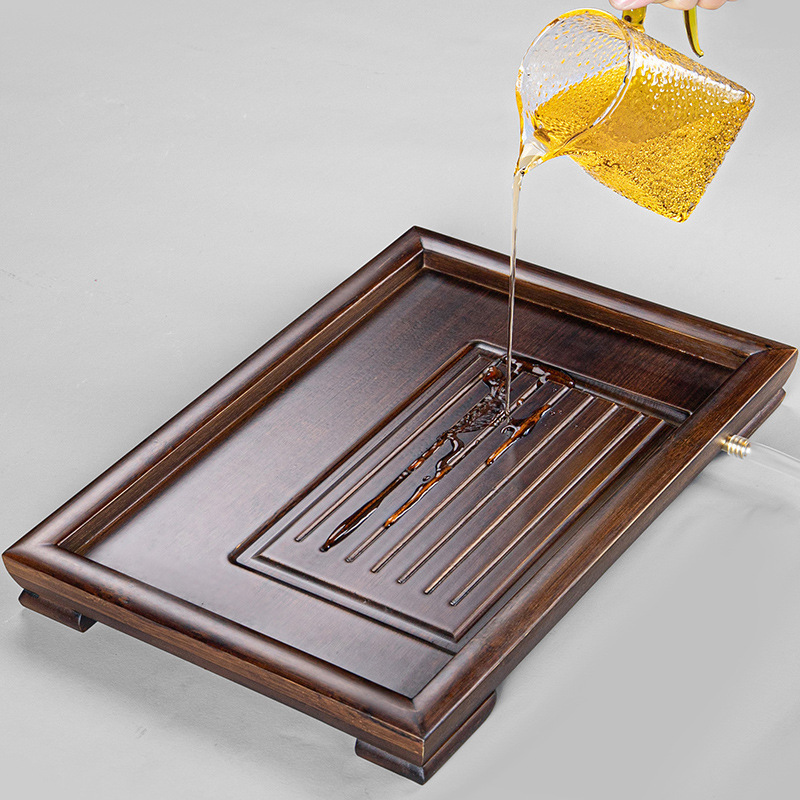 竹制茶盘功夫平板茶盘胡桃色竹制老竹排水功夫茶具茶台源头工厂