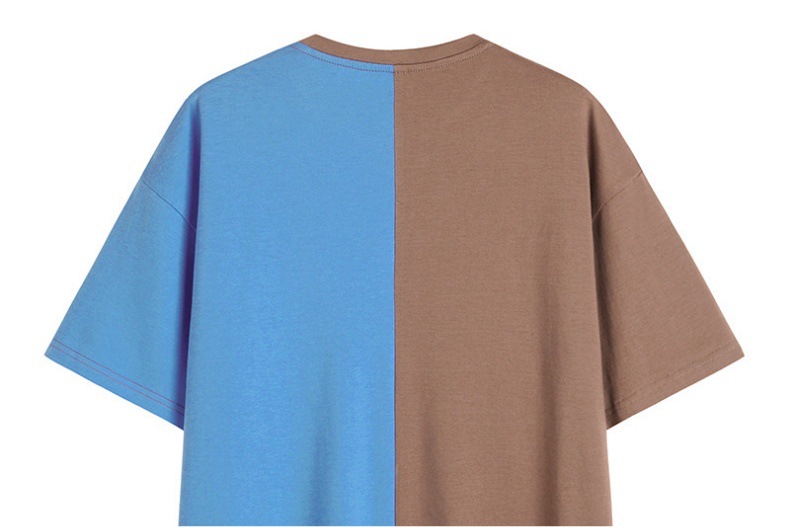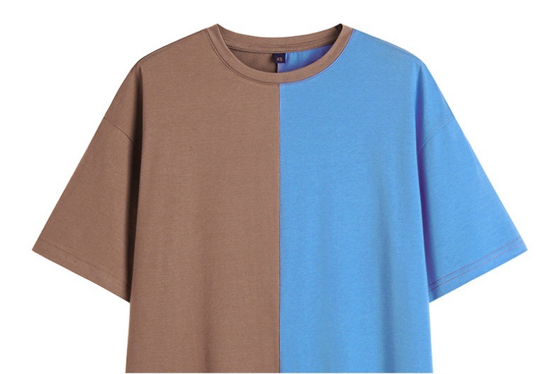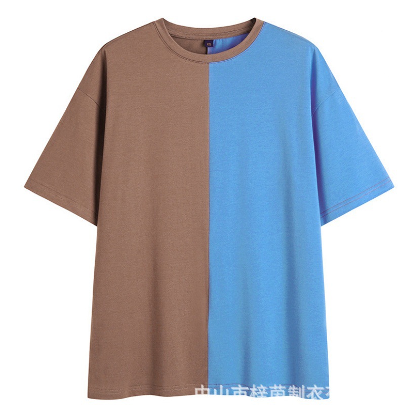 定制 欧美复古撞色短袖T恤 跨境亚马逊热销夏季宽松休闲半袖上衣