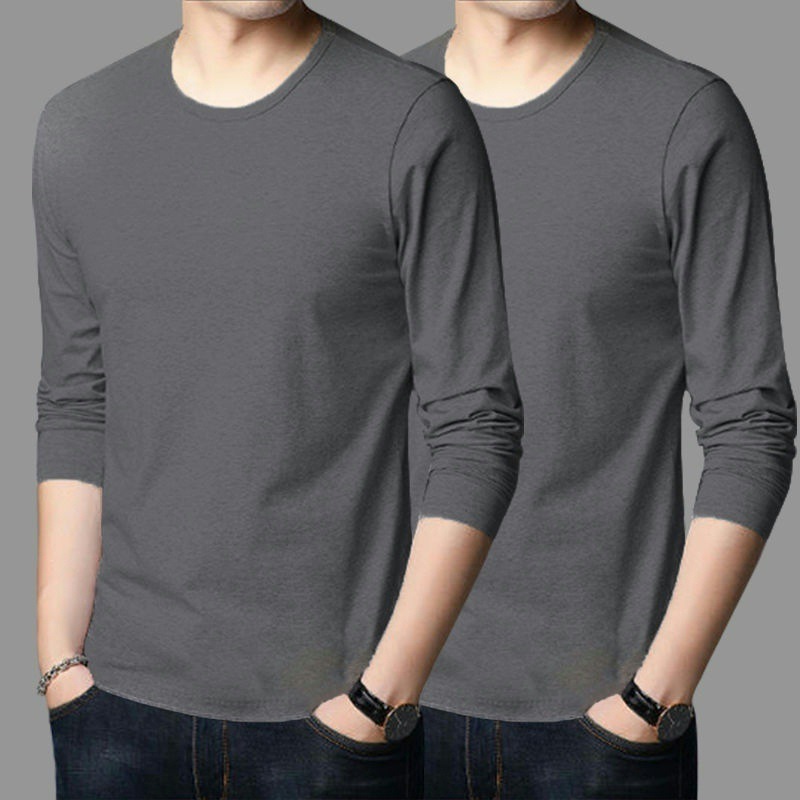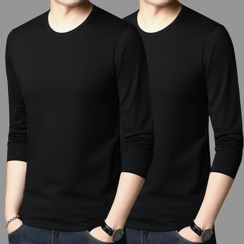 男士T恤男长袖打底衫百搭内搭秋衣白色纯色体恤秋装圆领休闲上衣
