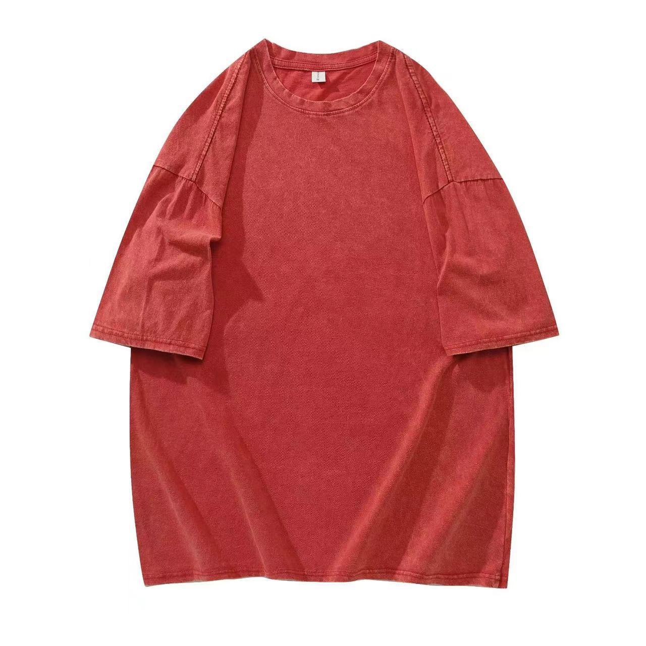 水洗做旧重磅纯棉短袖T恤男宽松港风ins五分袖夏季潮半袖体恤潮牌