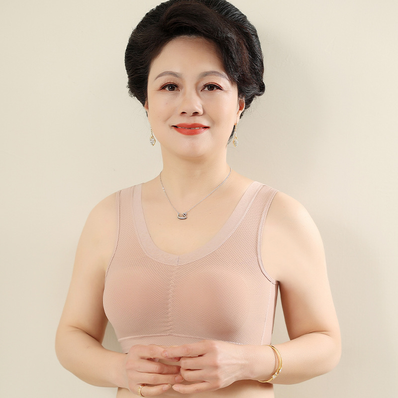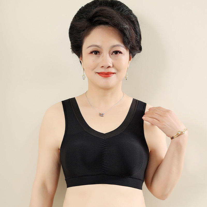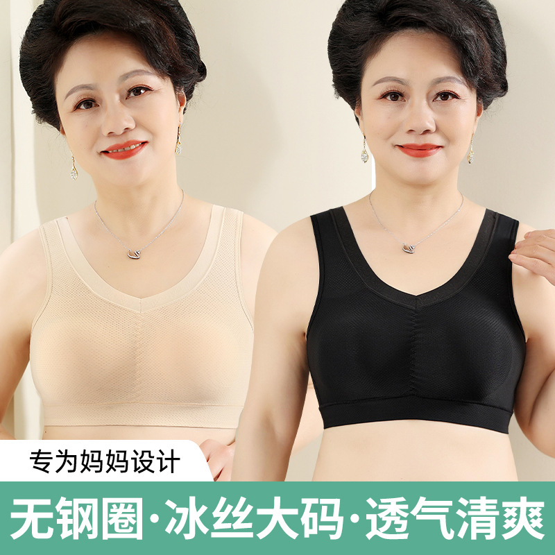 中老年冰丝大码内衣女背心式运动无钢圈文胸聚拢防下垂胸罩夏季薄