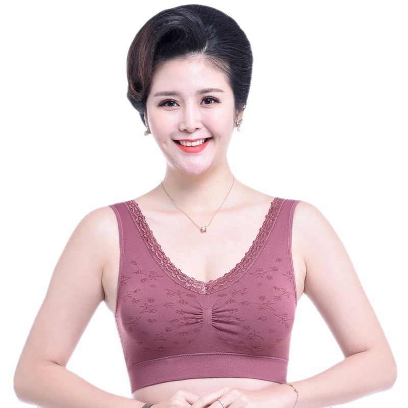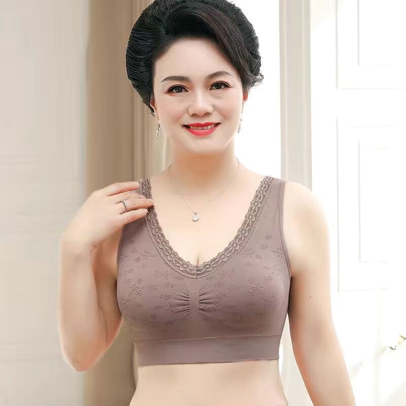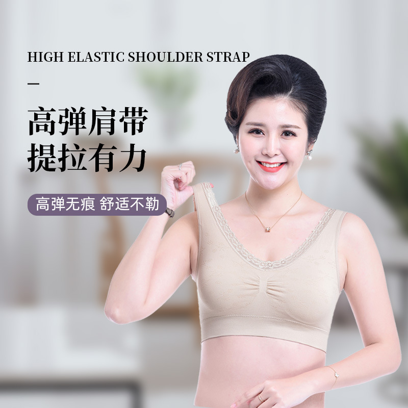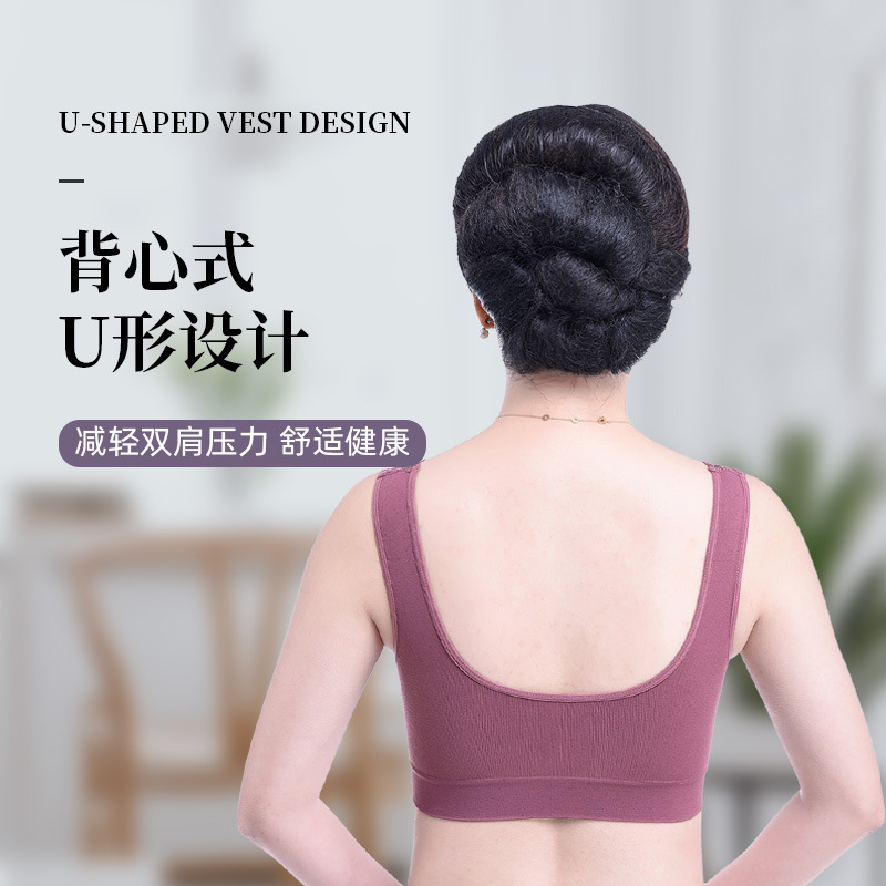 妈妈文胸中老年内人衣女棉透气美背无钢圈中年妇女大码背心式胸罩