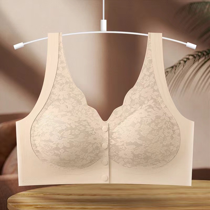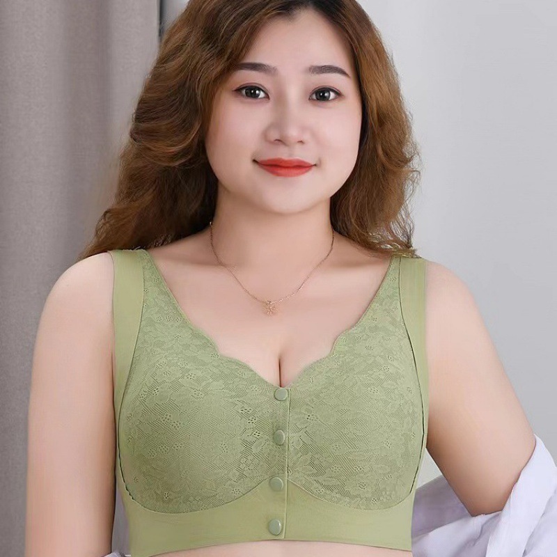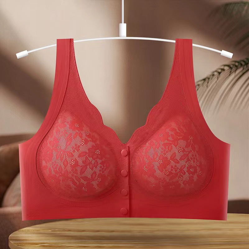 爆款蕾丝前开扣大码裹胸中老年妈妈无痕美背文胸无钢圈固定杯内衣