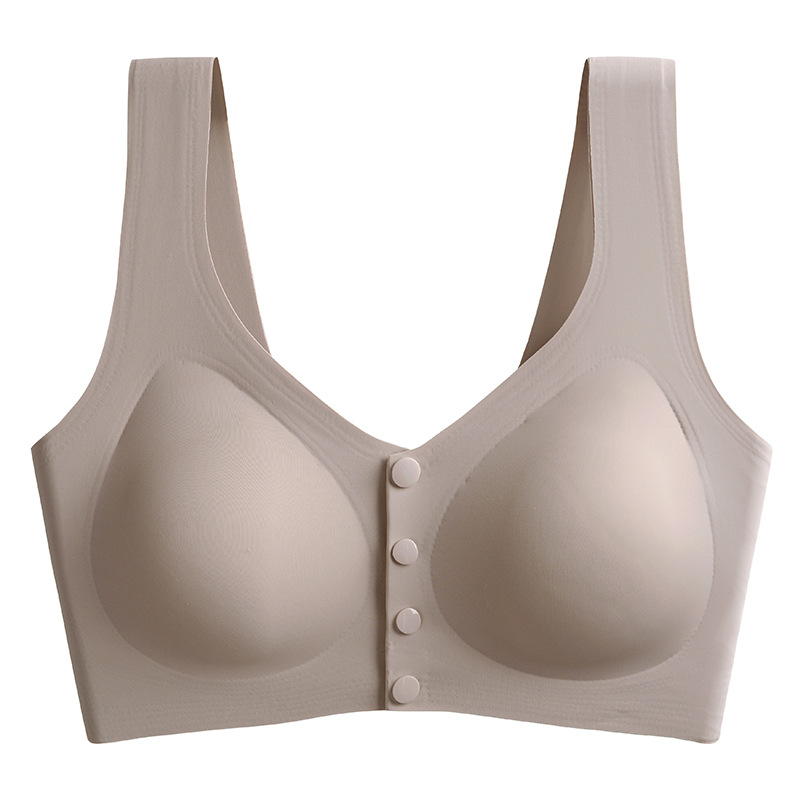 夏季冰丝中老年妈妈内衣女前排扣无痕文胸薄款老人背心运动胸罩