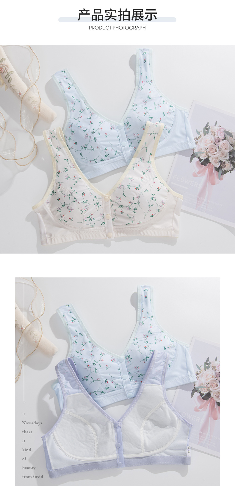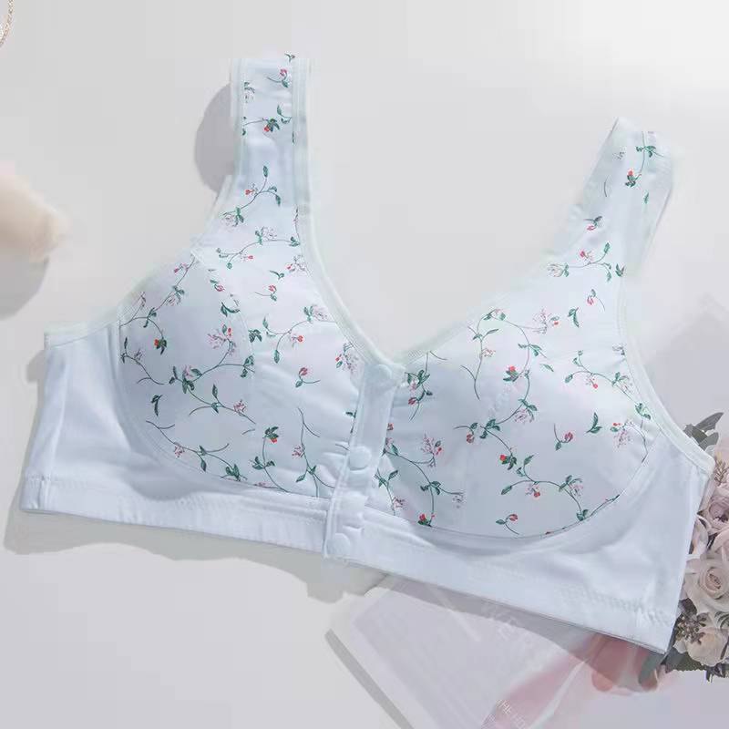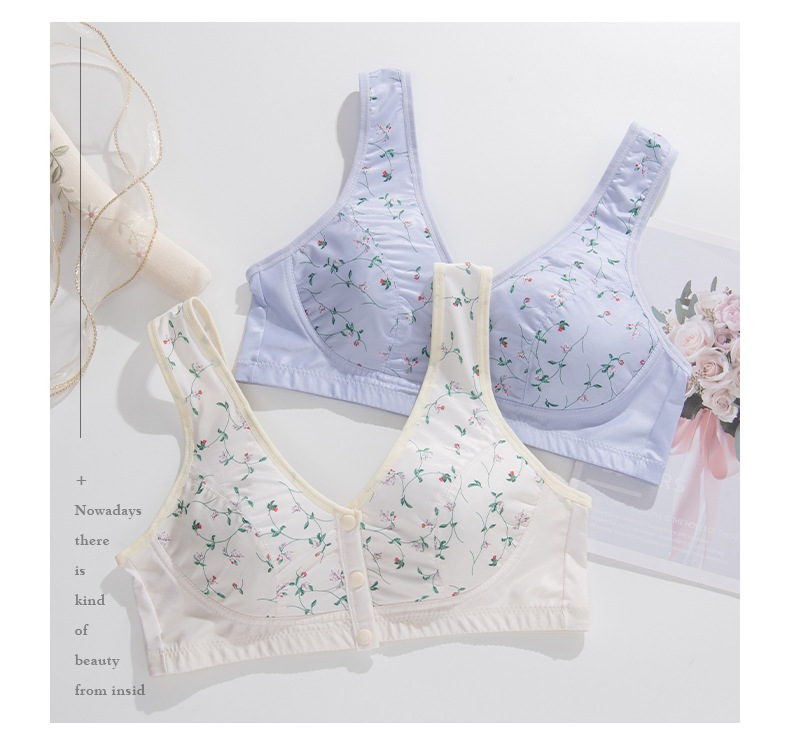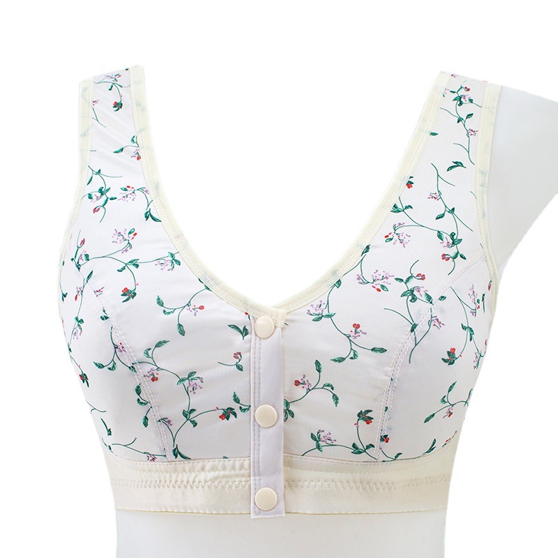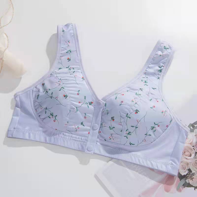 背心式聚拢印花大码文胸 舒适前扣无钢圈妈妈内衣中老年大胸罩