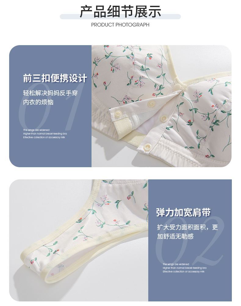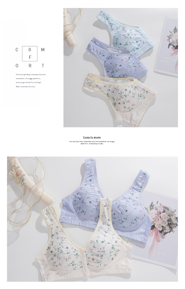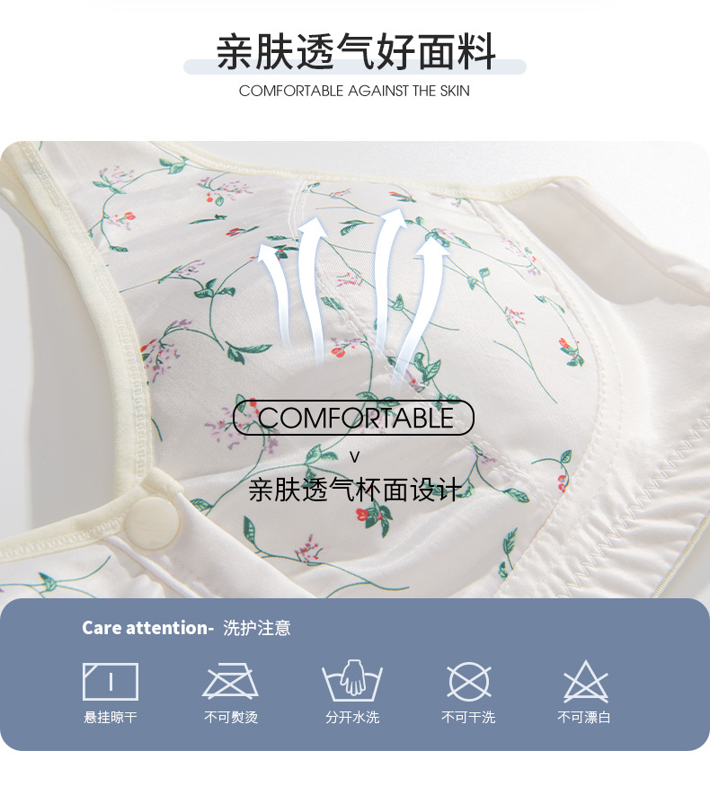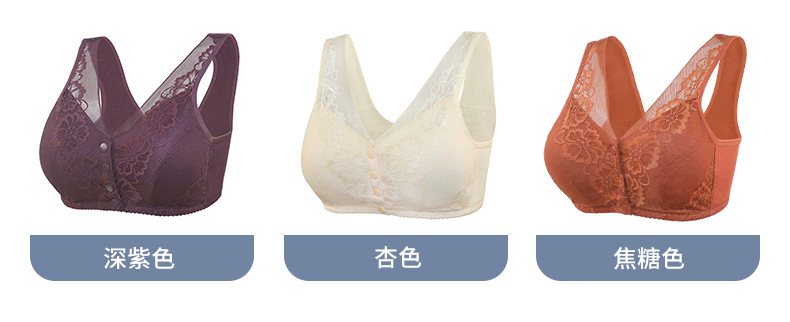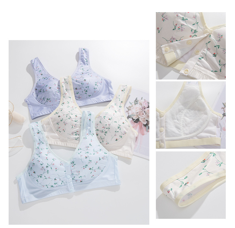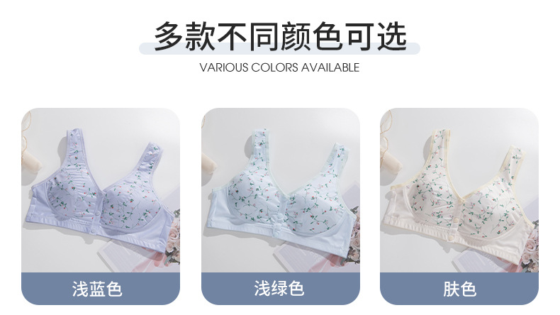 背心式聚拢印花大码文胸 舒适前扣无钢圈妈妈内衣中老年大胸罩