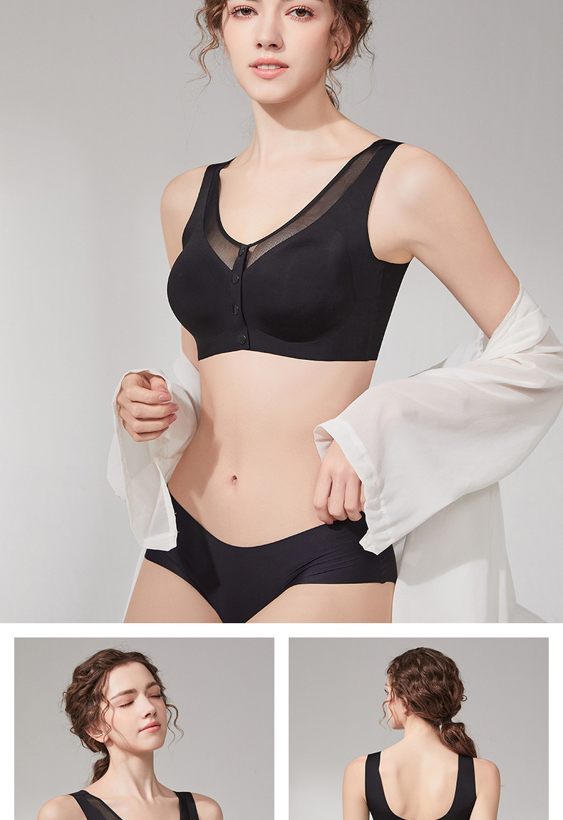 中老年人妈妈文胸前扣大码内衣女无钢圈无痕聚拢美背心式运动胸罩
