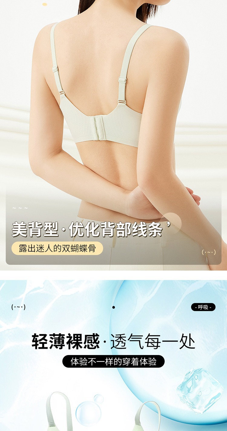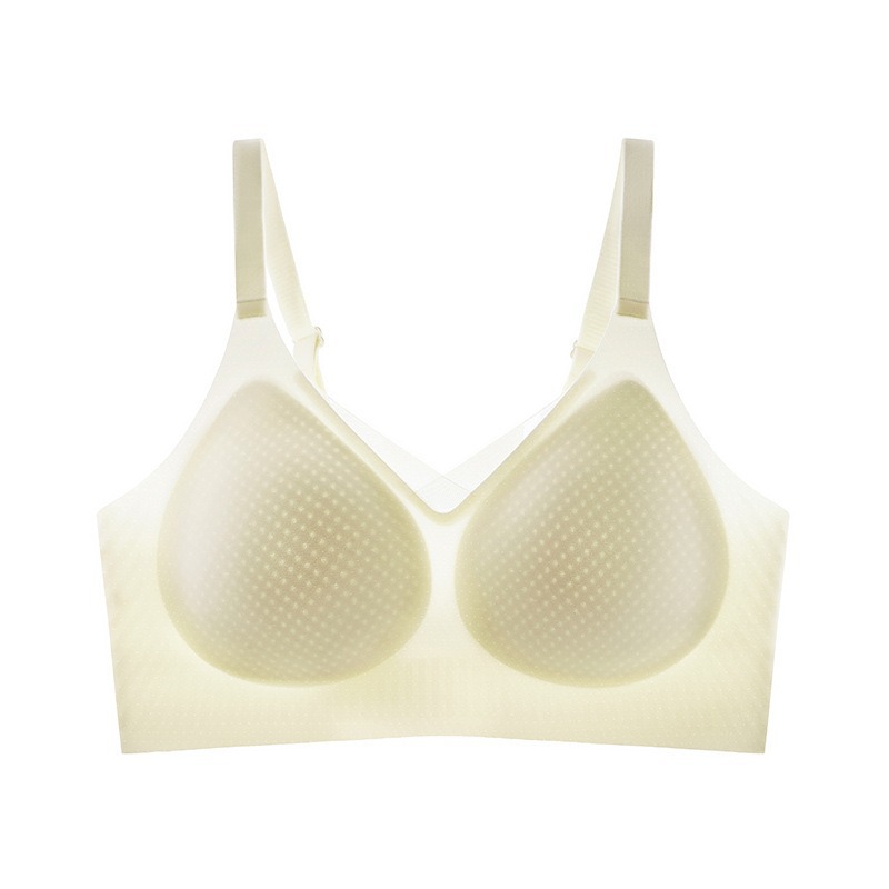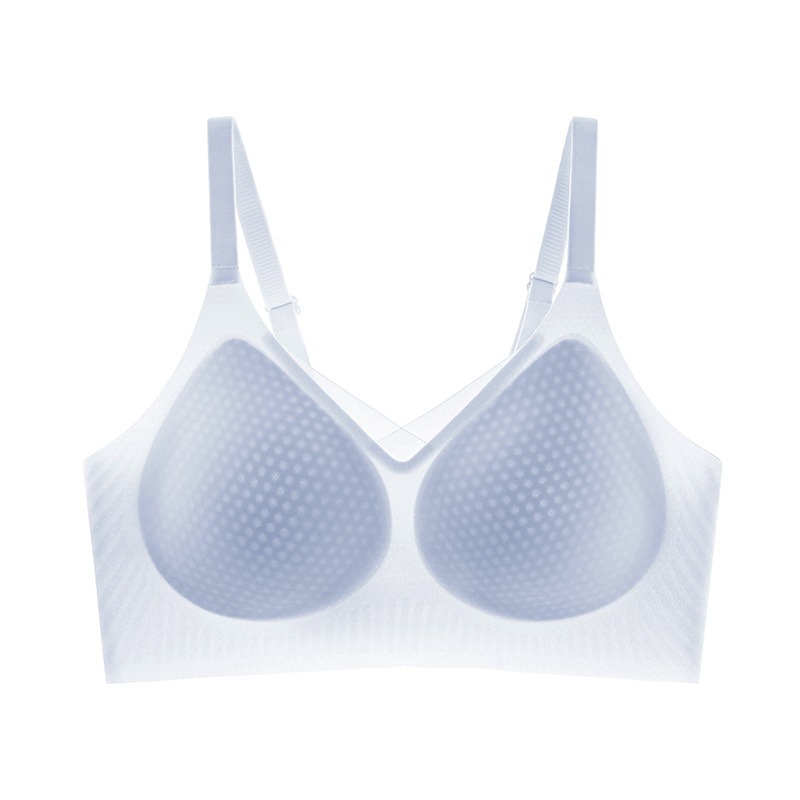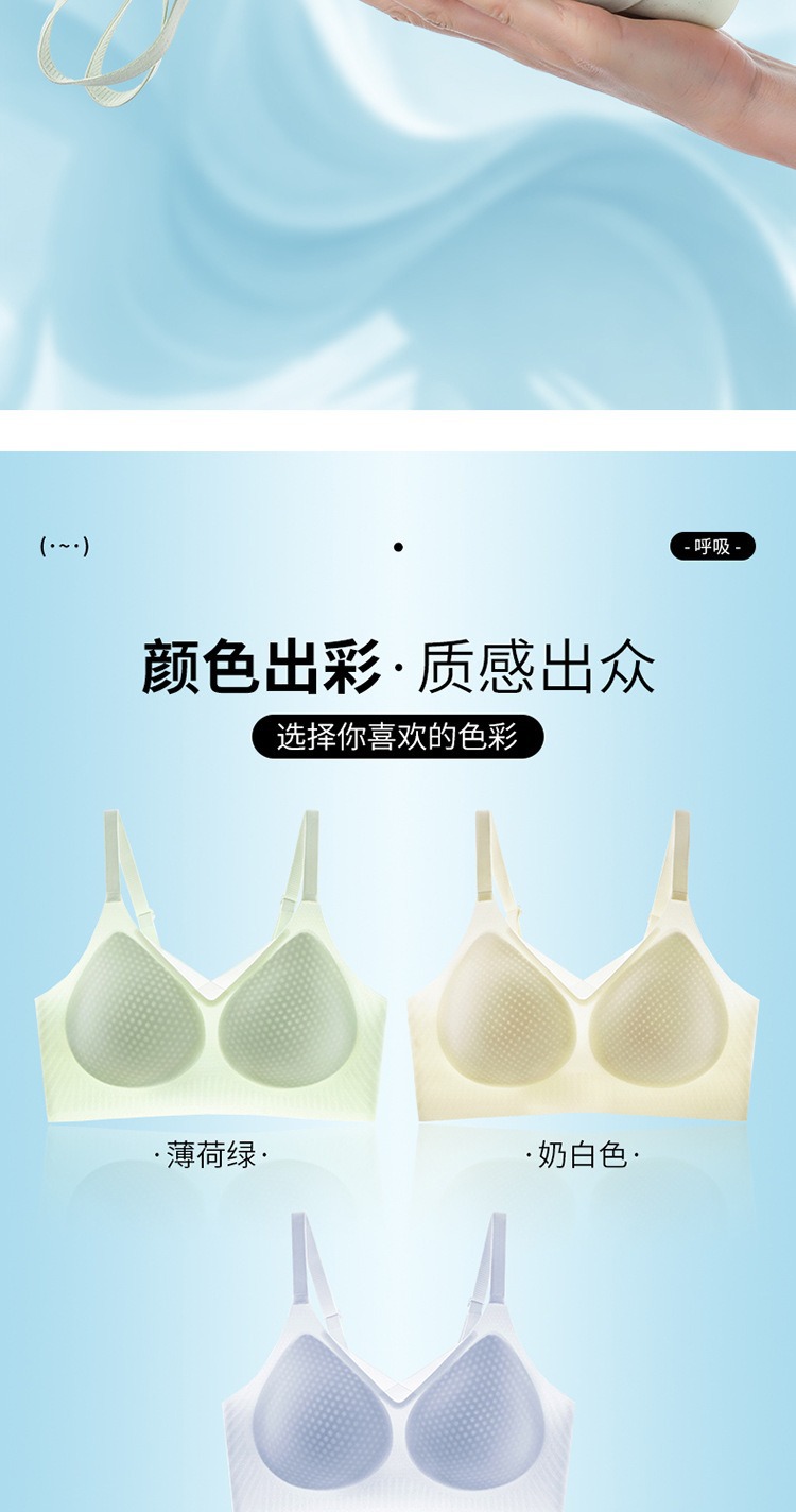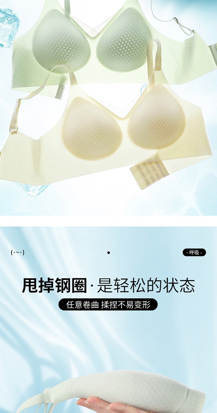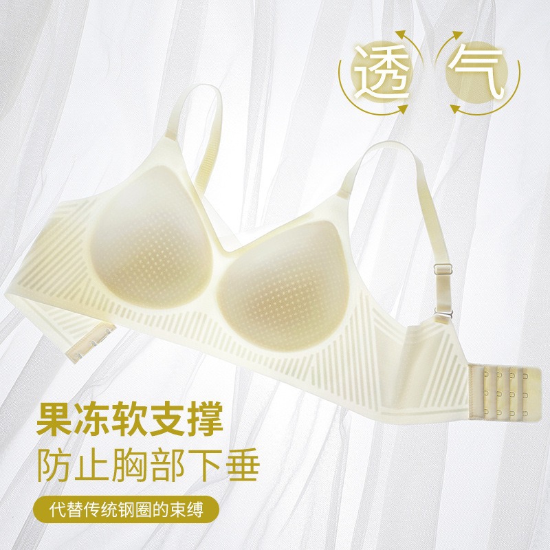 夏季无痕内衣女大胸显小薄款固定杯冰丝凉感果冻条软支撑聚拢文胸