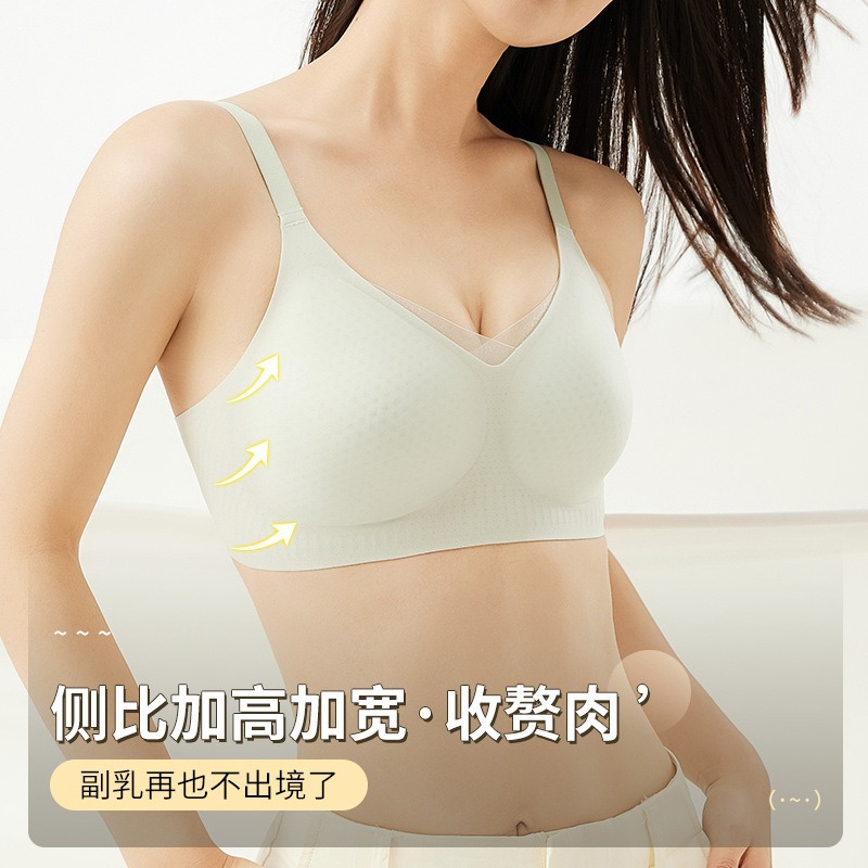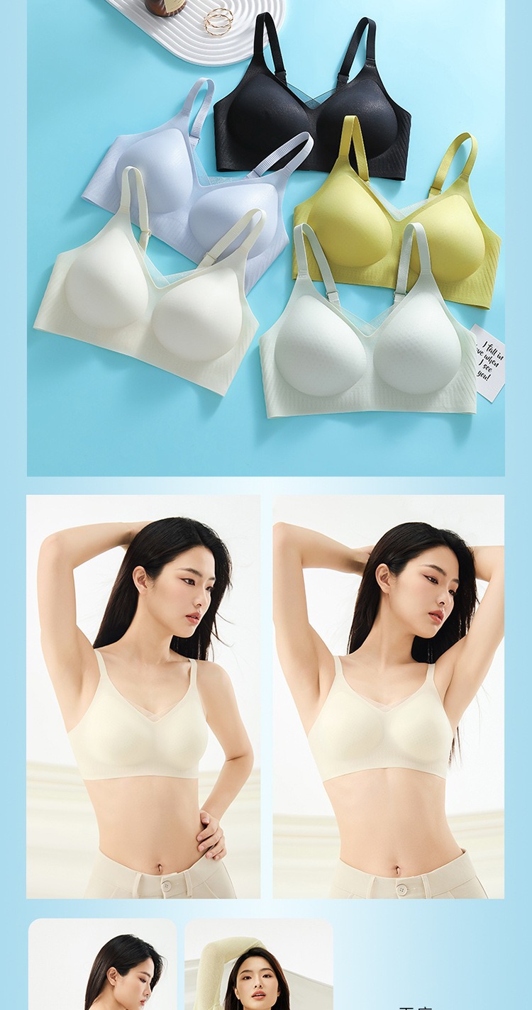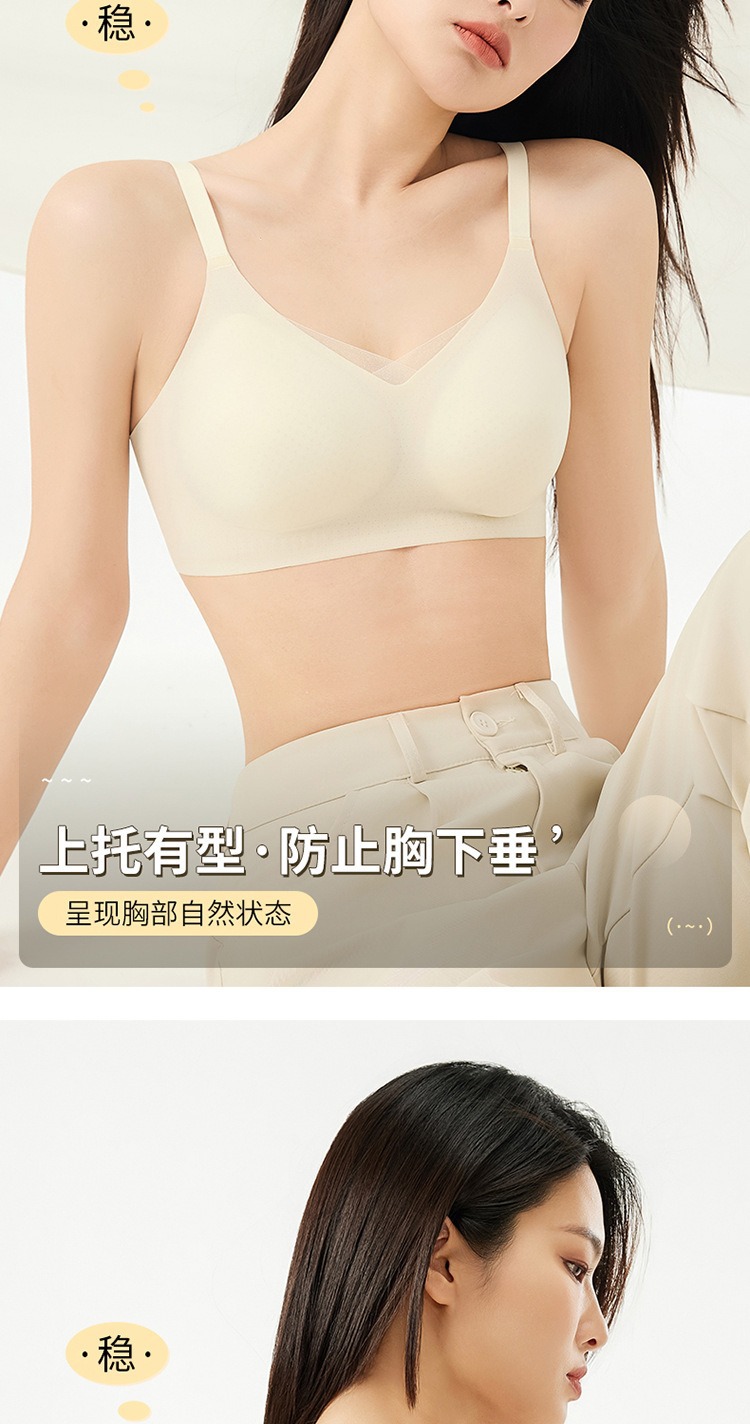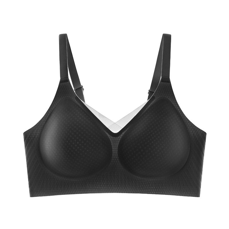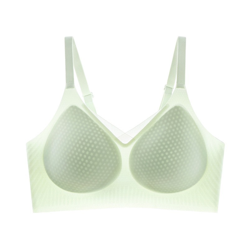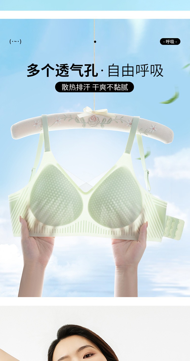 夏季无痕内衣女大胸显小薄款固定杯冰丝凉感果冻条软支撑聚拢文胸