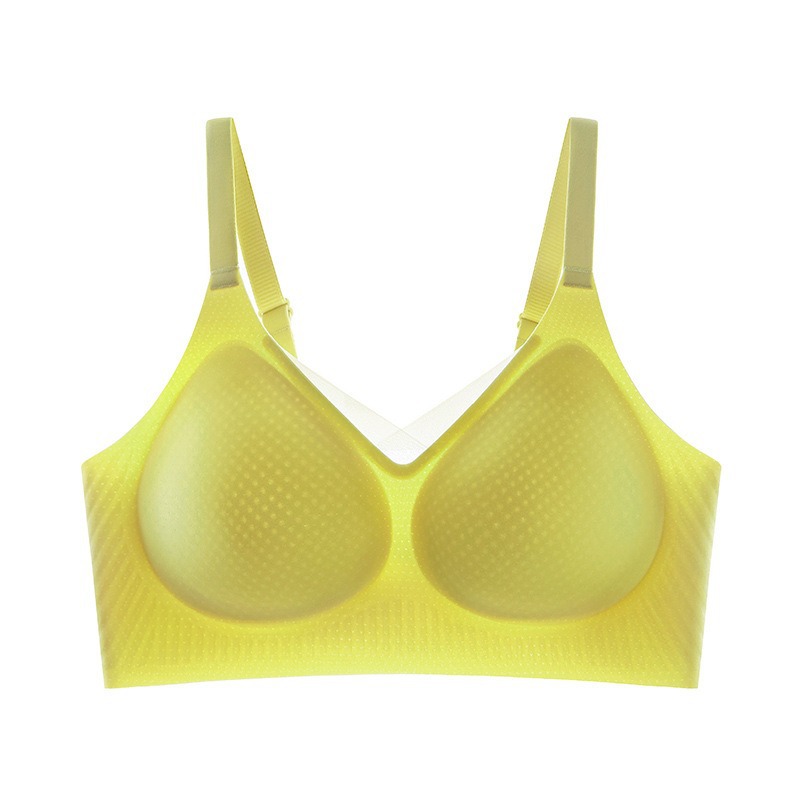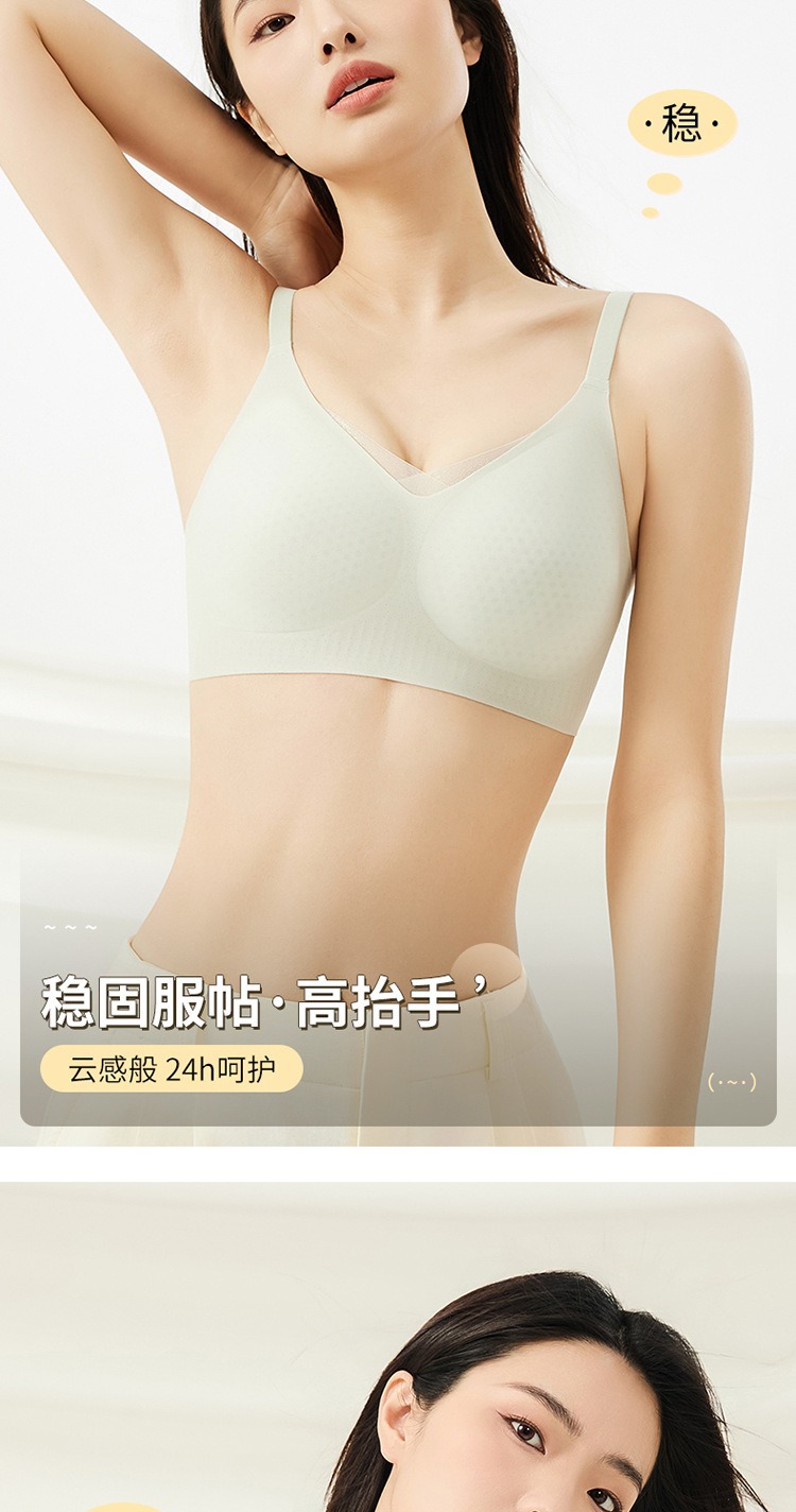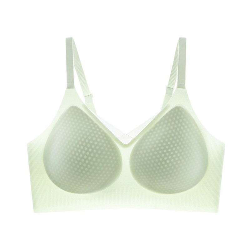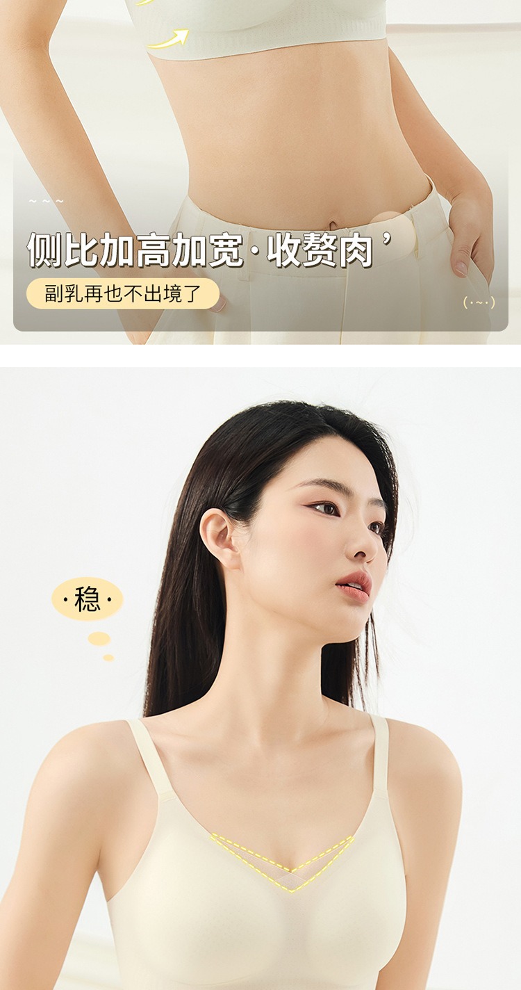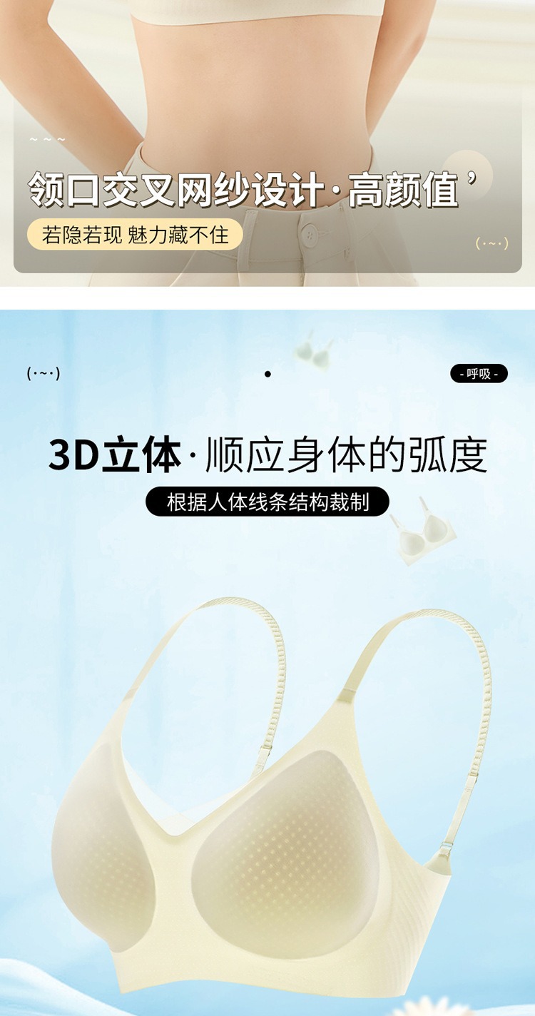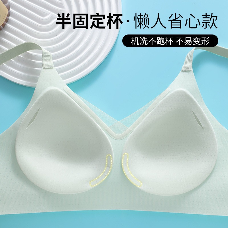 夏季无痕内衣女大胸显小薄款固定杯冰丝凉感果冻条软支撑聚拢文胸