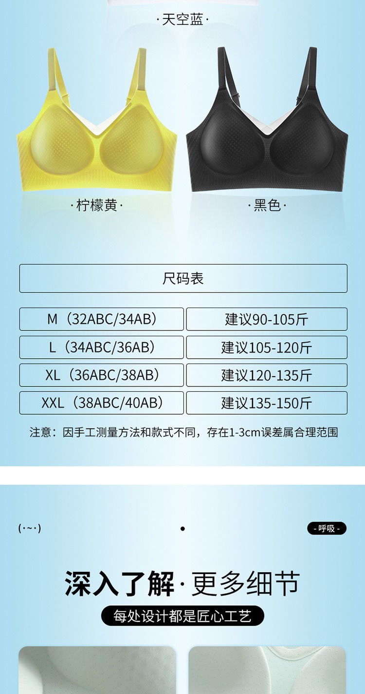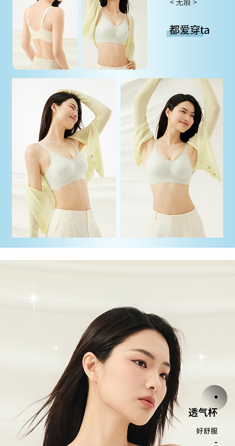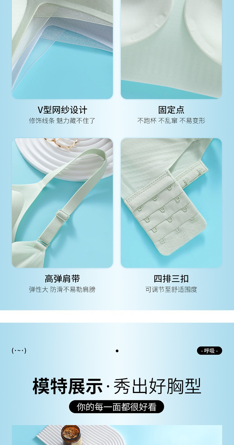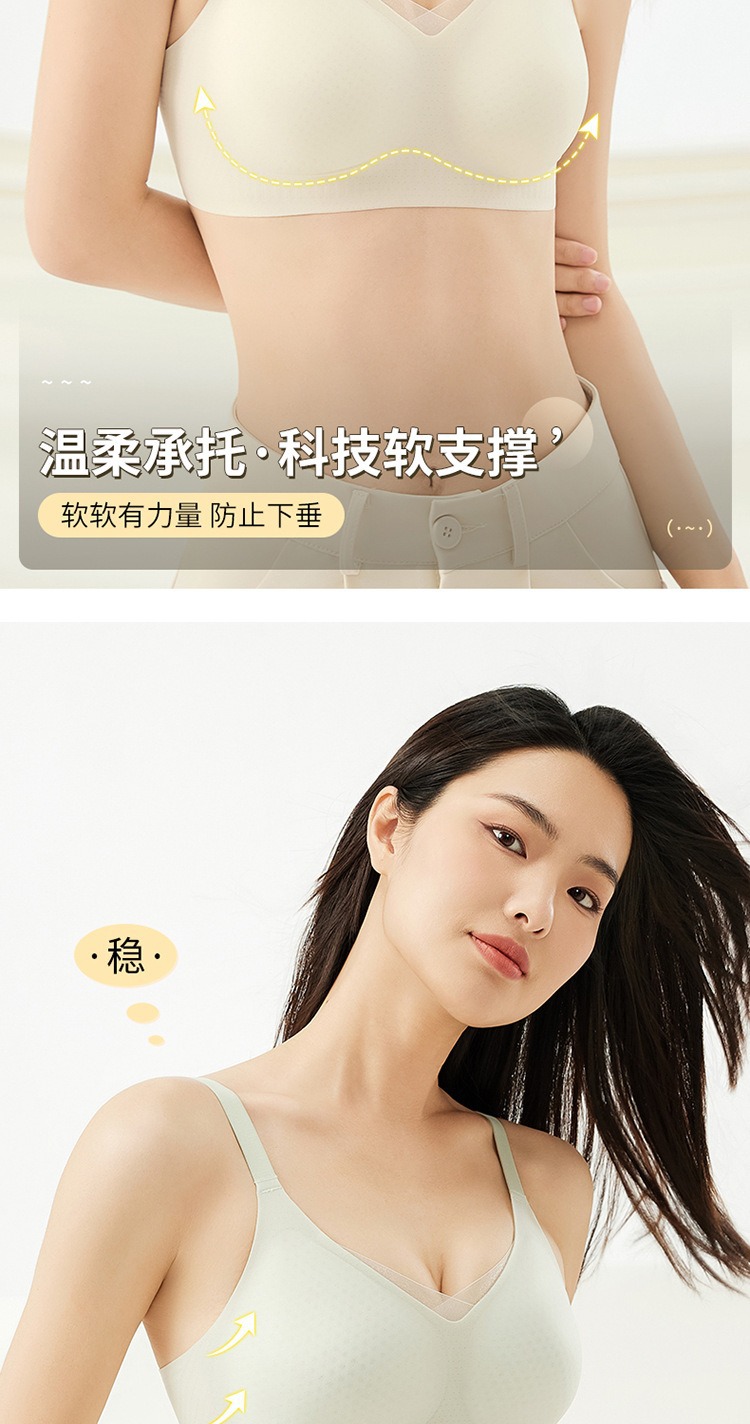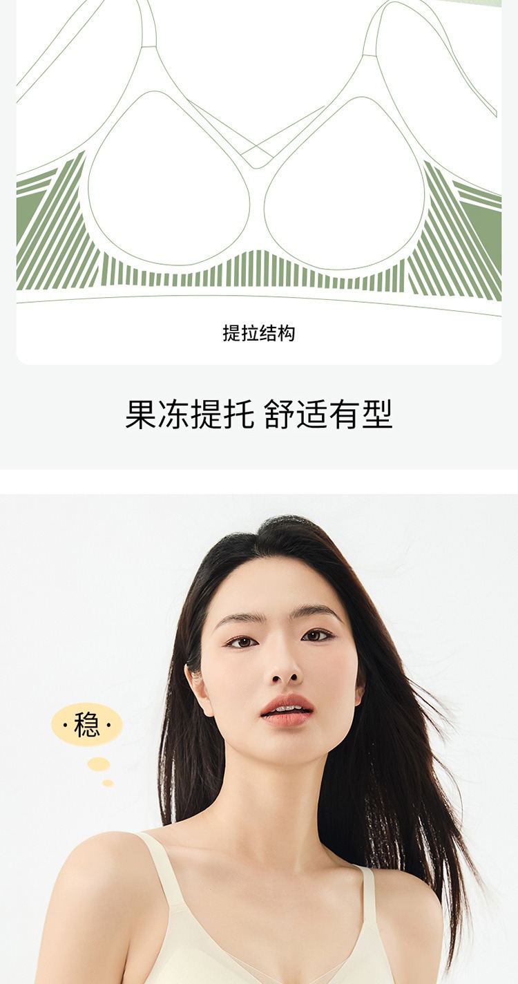 夏季无痕内衣女大胸显小薄款固定杯冰丝凉感果冻条软支撑聚拢文胸