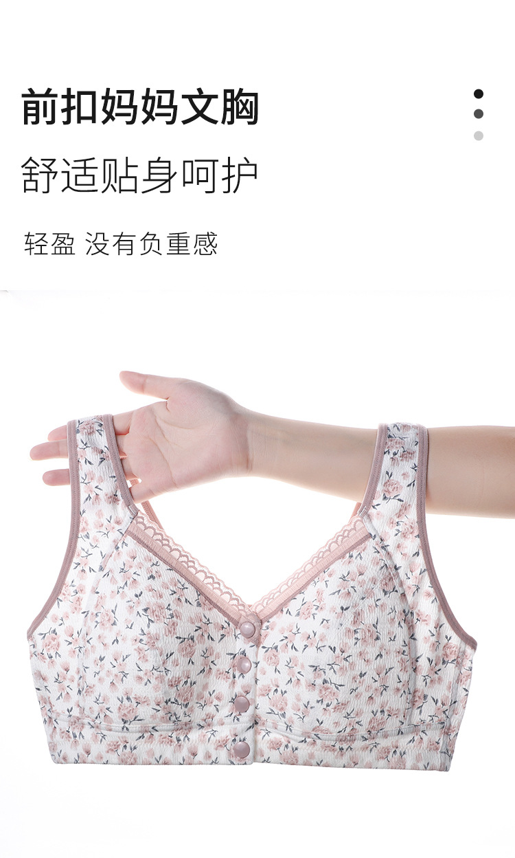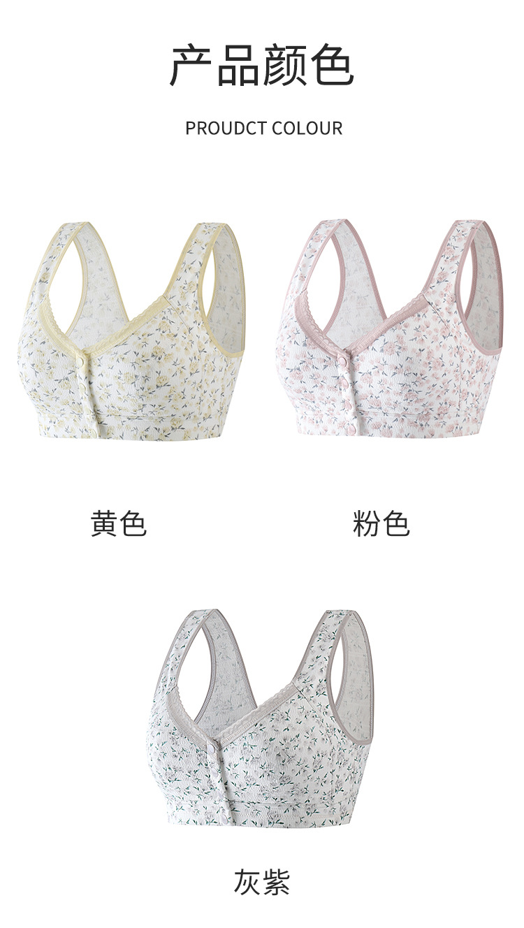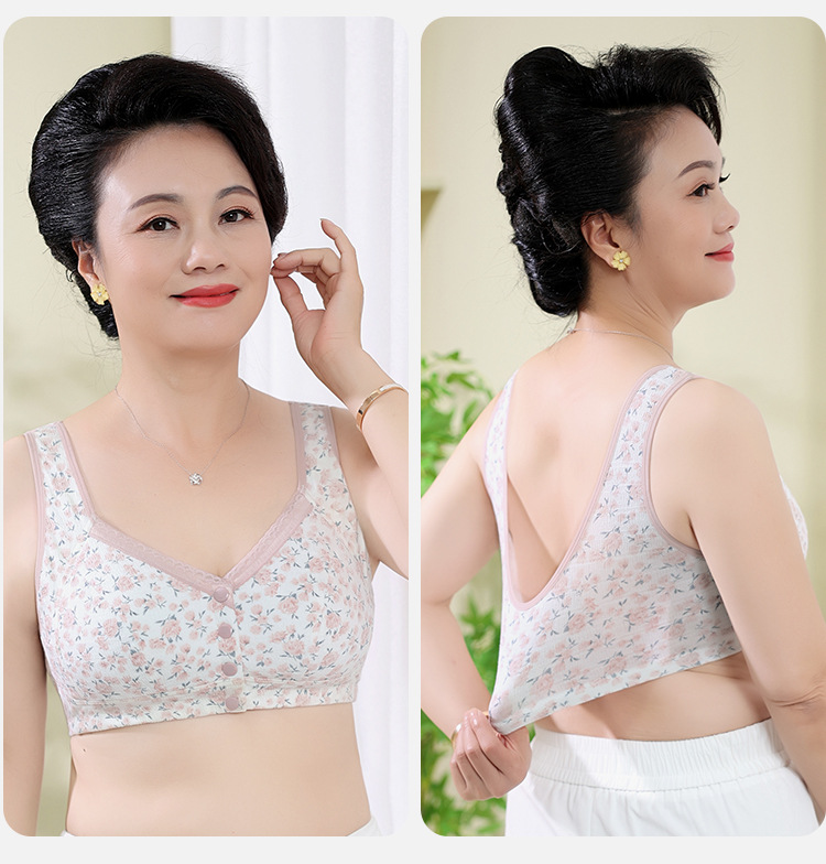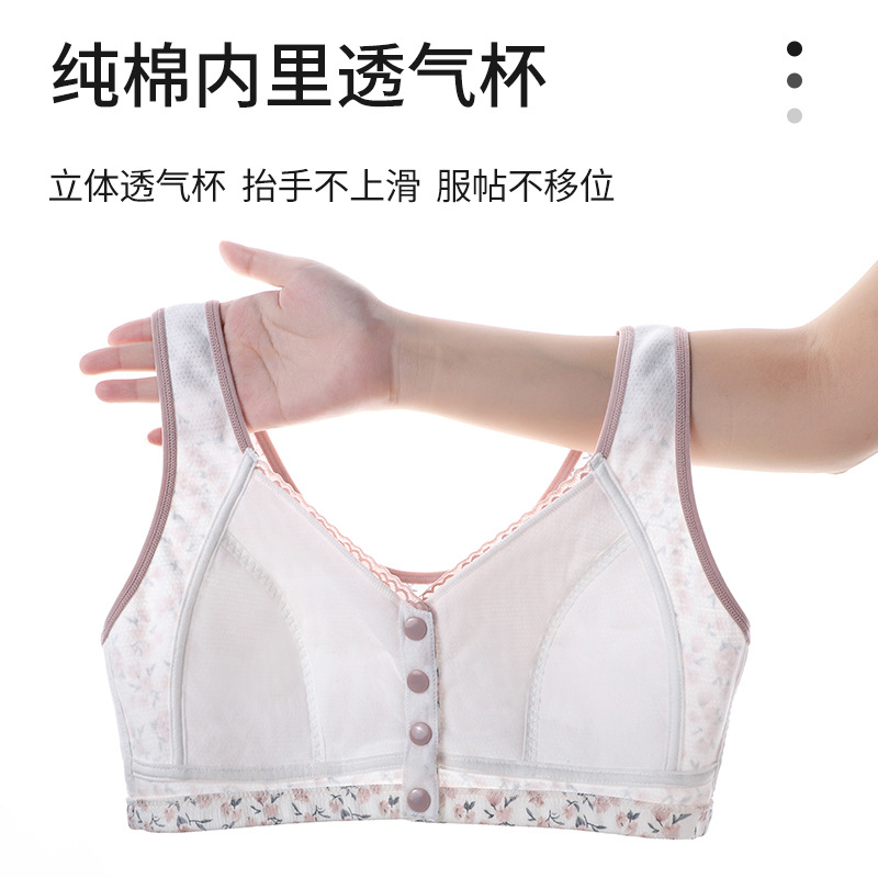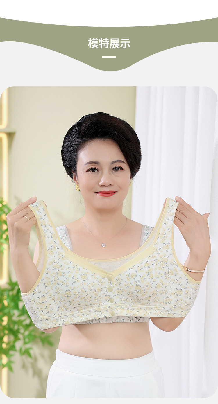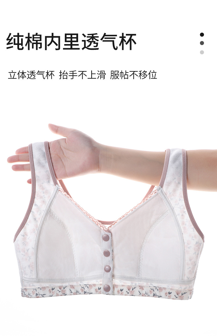 妈妈内衣前扣背心式文胸舒适中老年妇女大码无钢圈纯棉薄款文胸罩