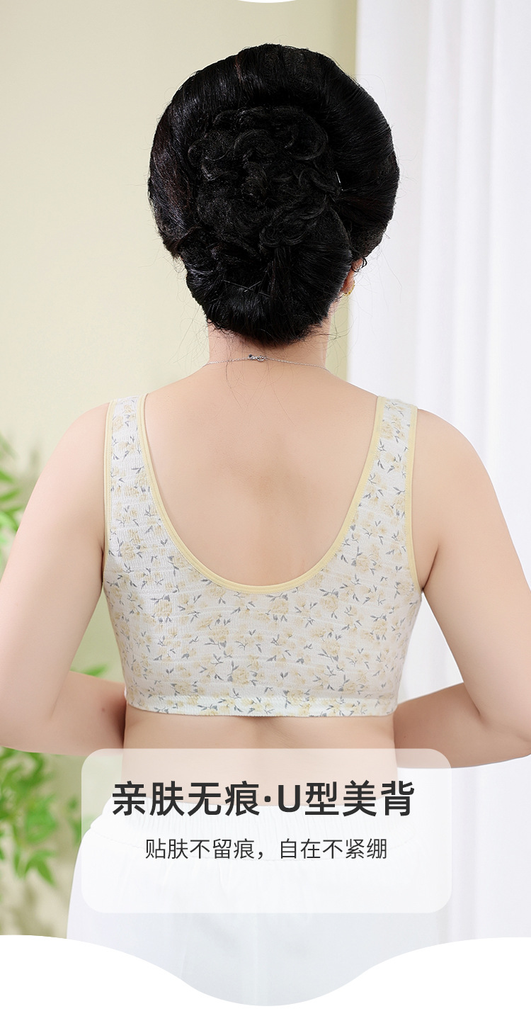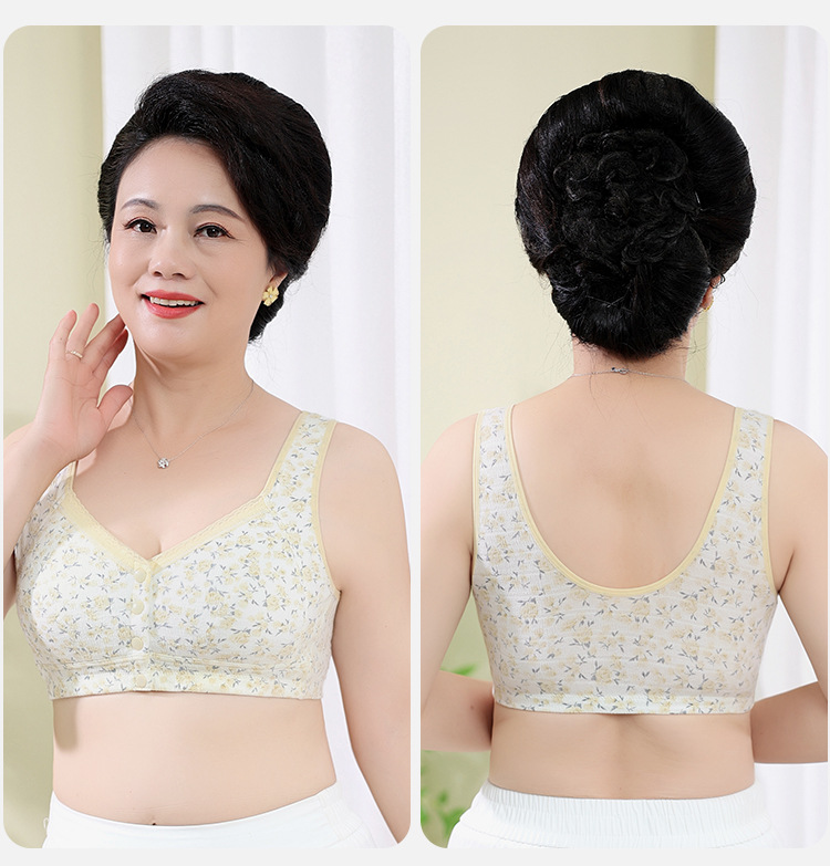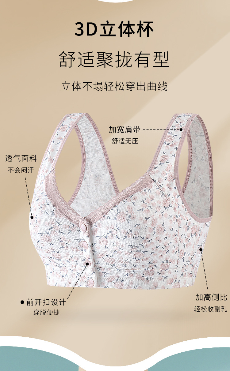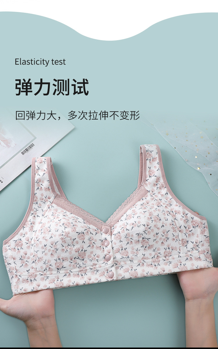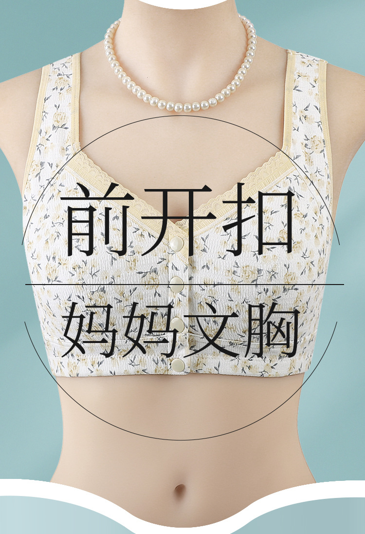 妈妈内衣前扣背心式文胸舒适中老年妇女大码无钢圈纯棉薄款文胸罩