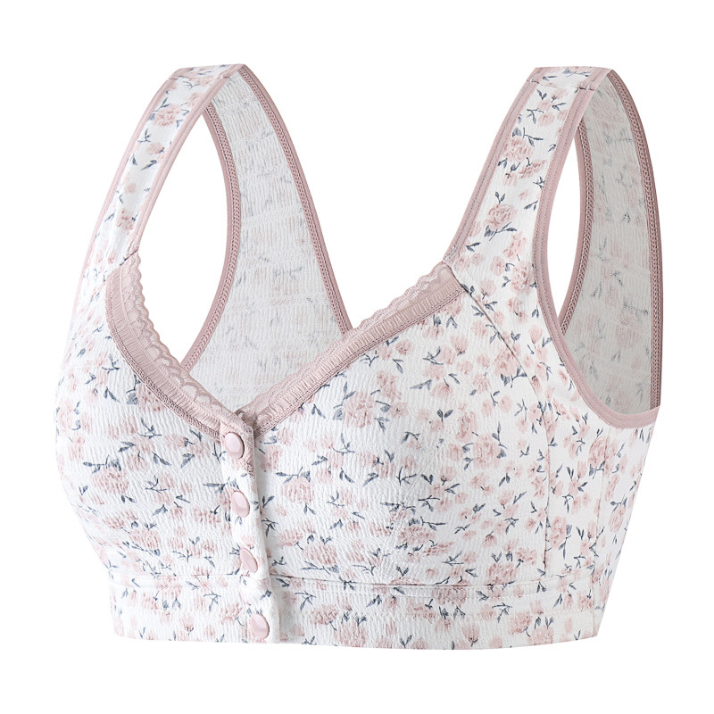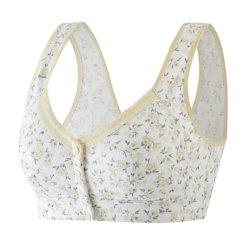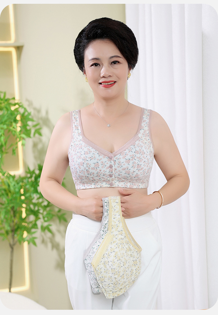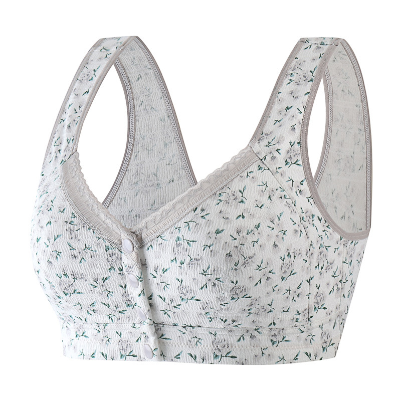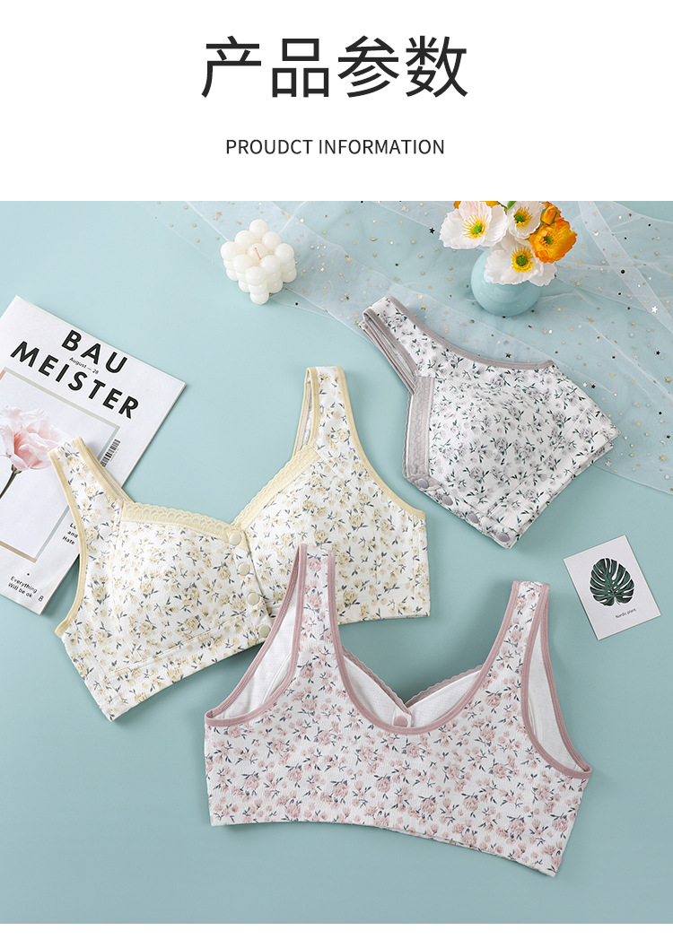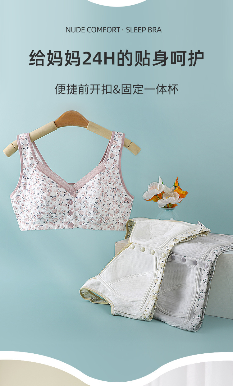 妈妈内衣前扣背心式文胸舒适中老年妇女大码无钢圈纯棉薄款文胸罩