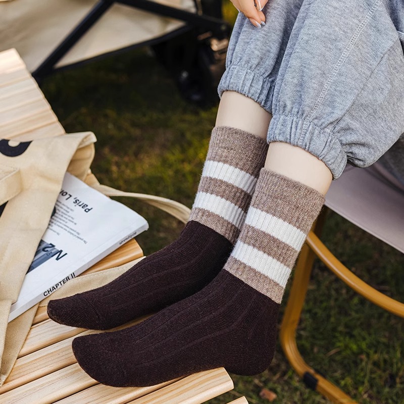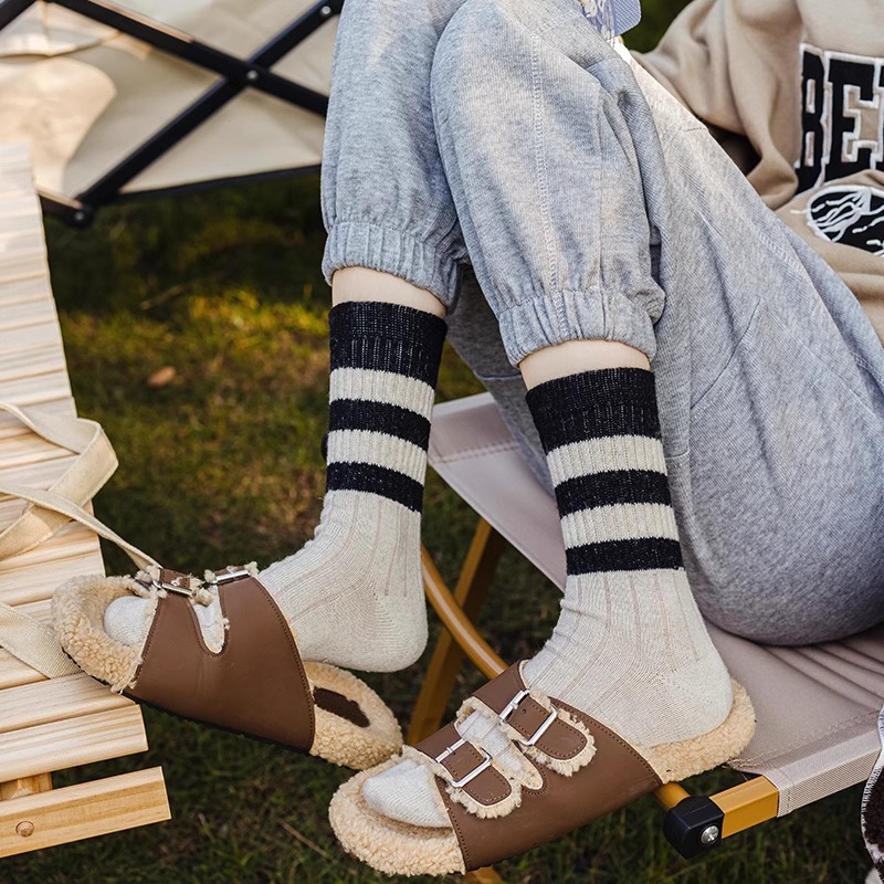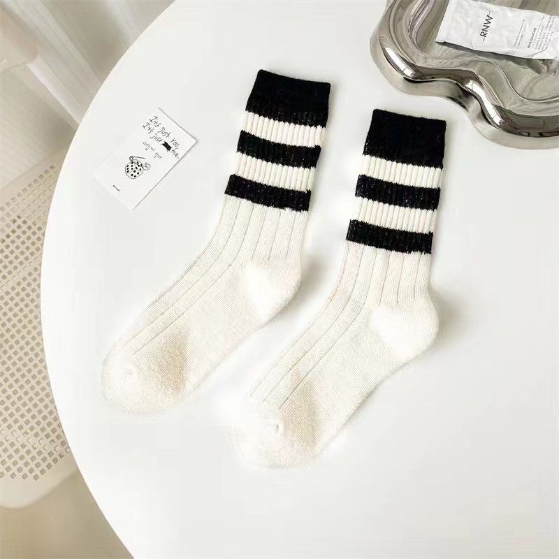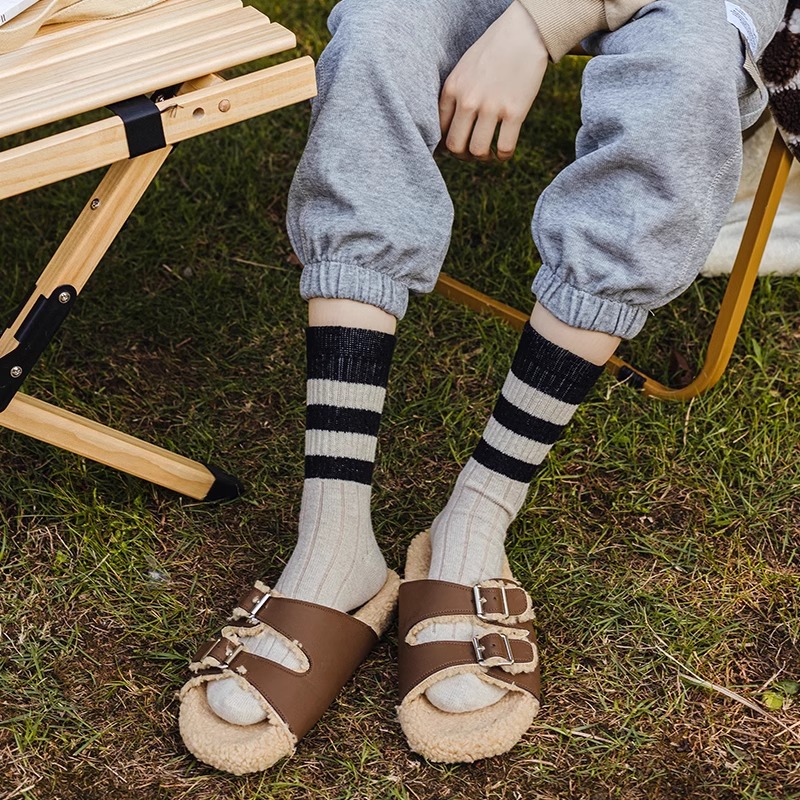 条纹袜子女中筒ins潮百搭堆堆袜春夏薄款日系学生高颜值长袜外穿