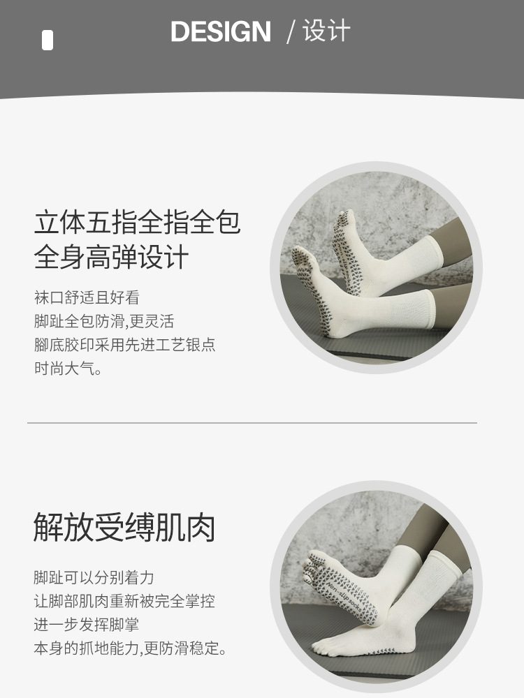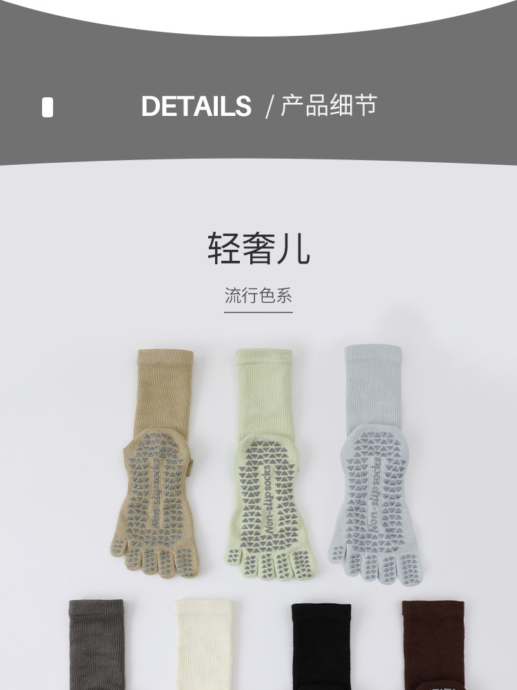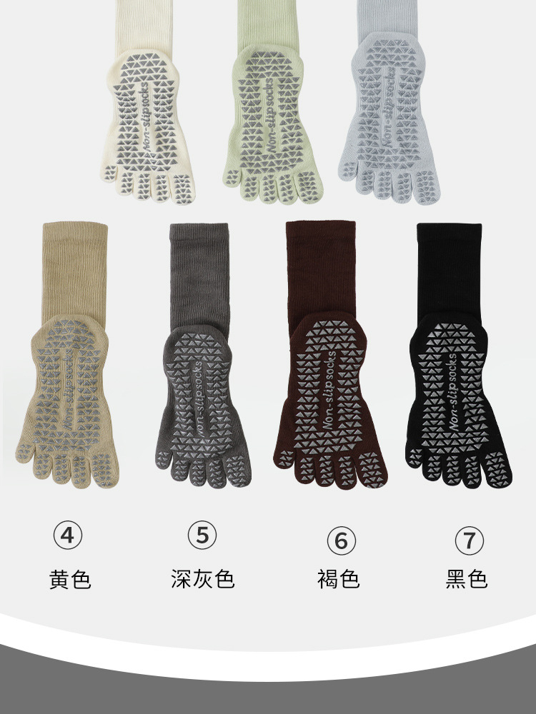 瑜伽袜子女中筒吸汗分趾袜五指防滑袜跨境专业点胶运动普拉提袜子