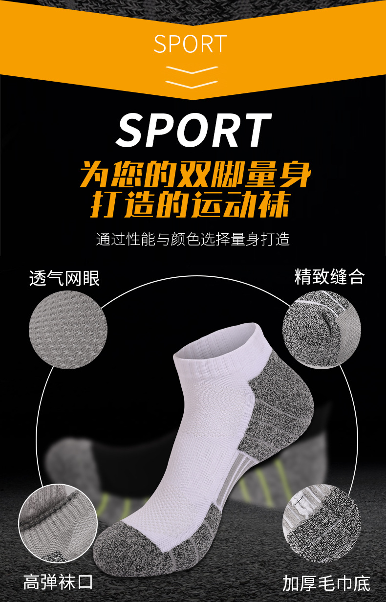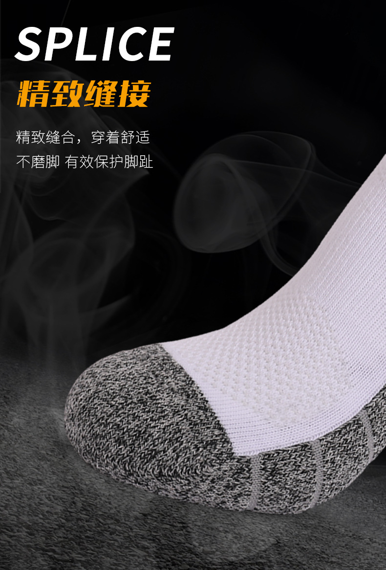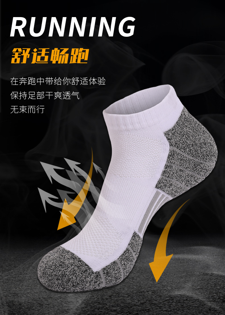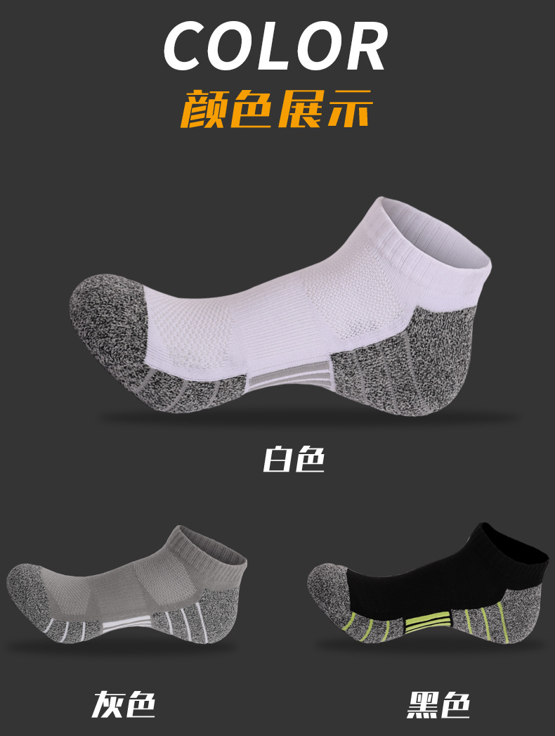 加厚毛巾底跑步袜棉吸汗透气防滑运动袜户外船袜亚马逊跨境直供