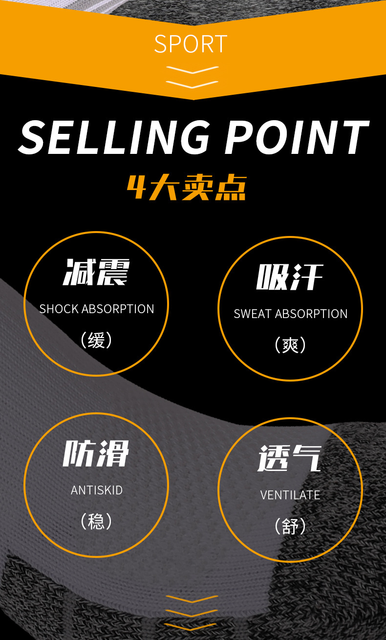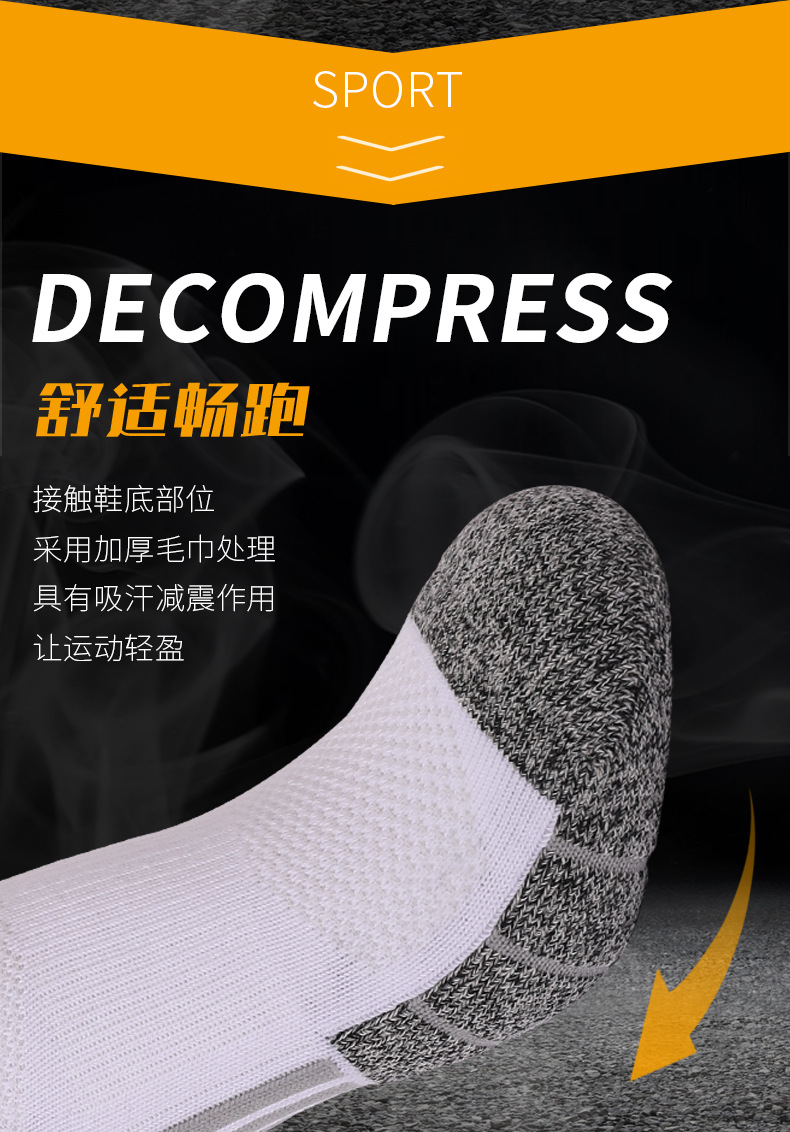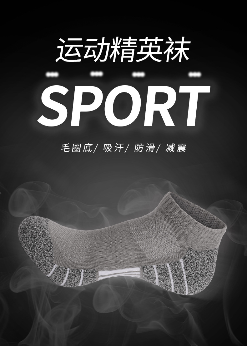 加厚毛巾底跑步袜棉吸汗透气防滑运动袜户外船袜亚马逊跨境直供