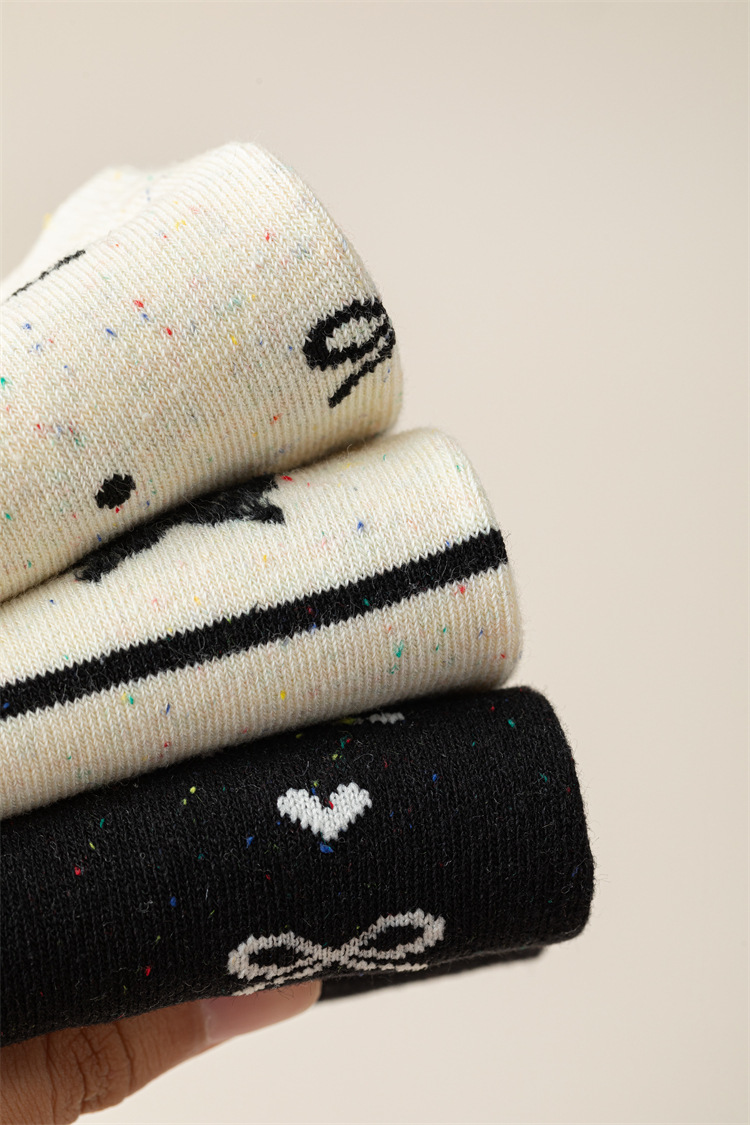 新款蝴蝶结波点袜子女秋冬季日系黑白堆堆袜芭蕾风点子纱中筒袜