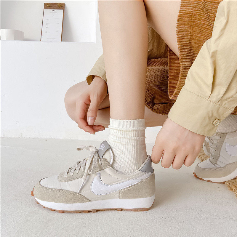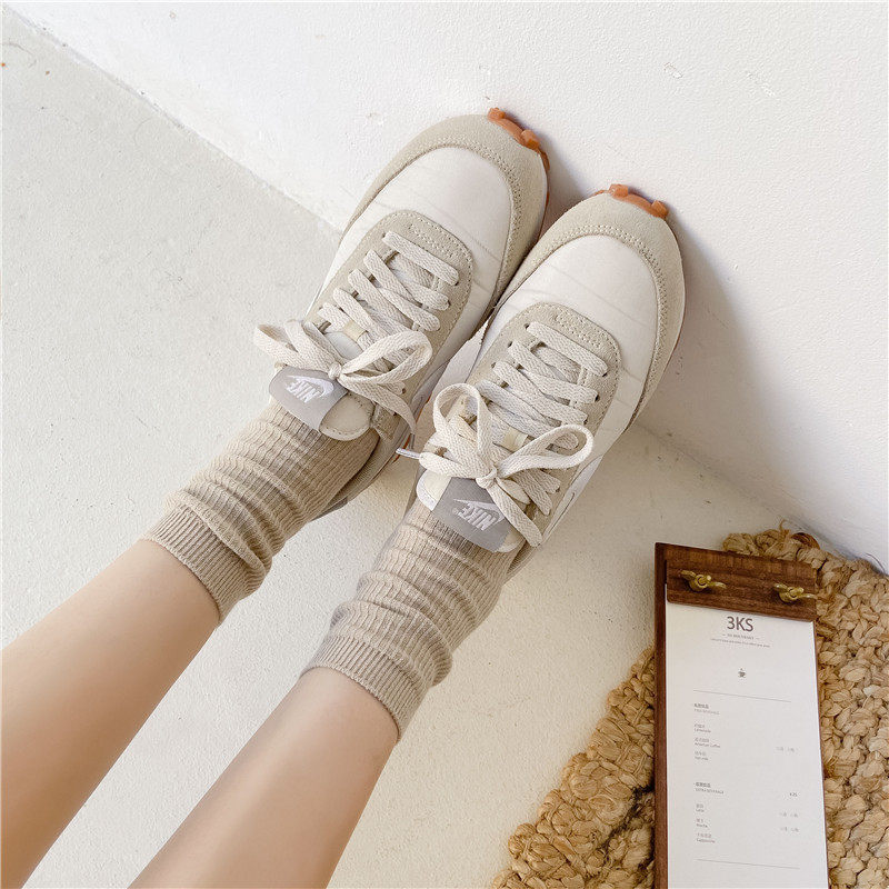 本色jk韩日系学生纯色竖条纹咖色袜子女中筒百搭堆堆袜大地色系