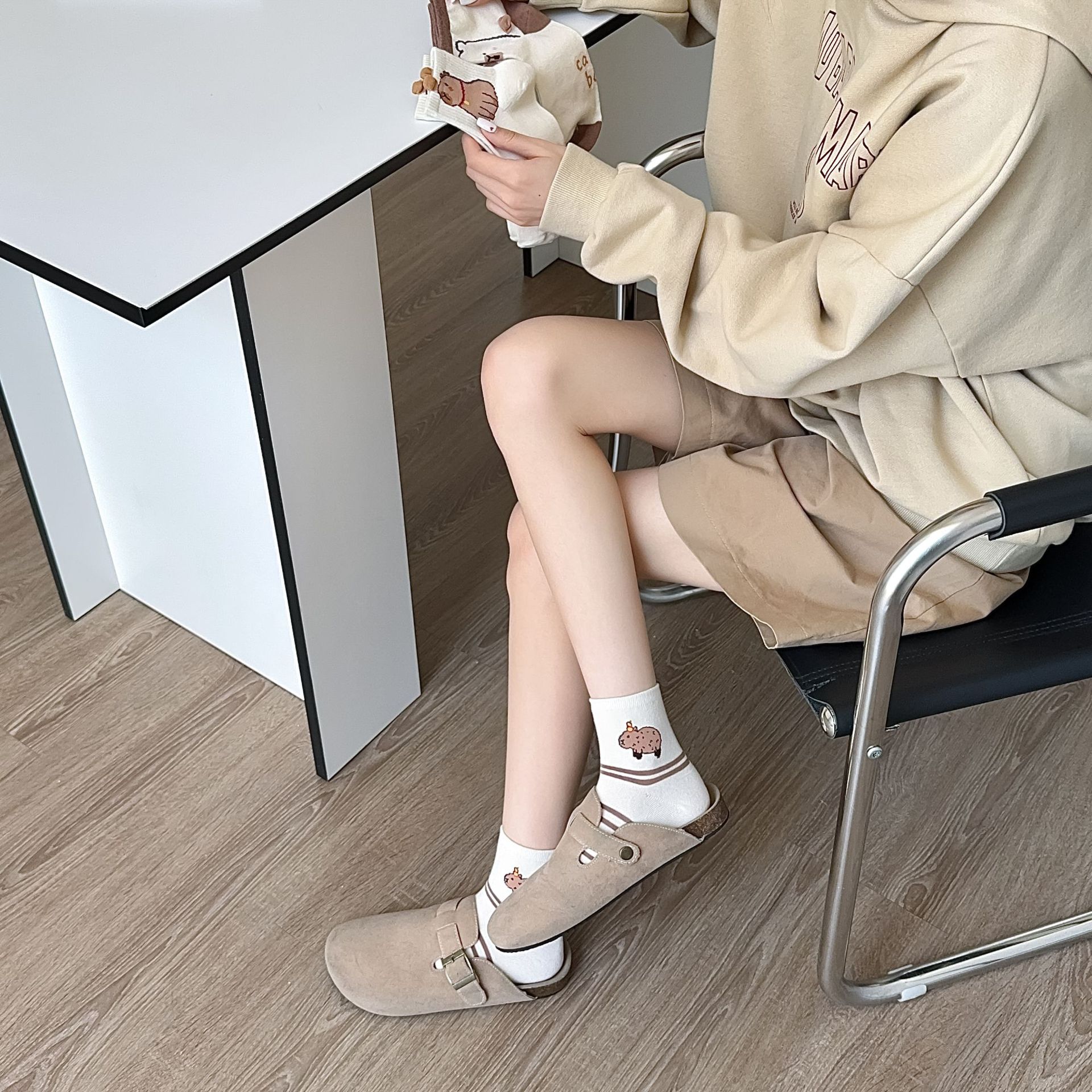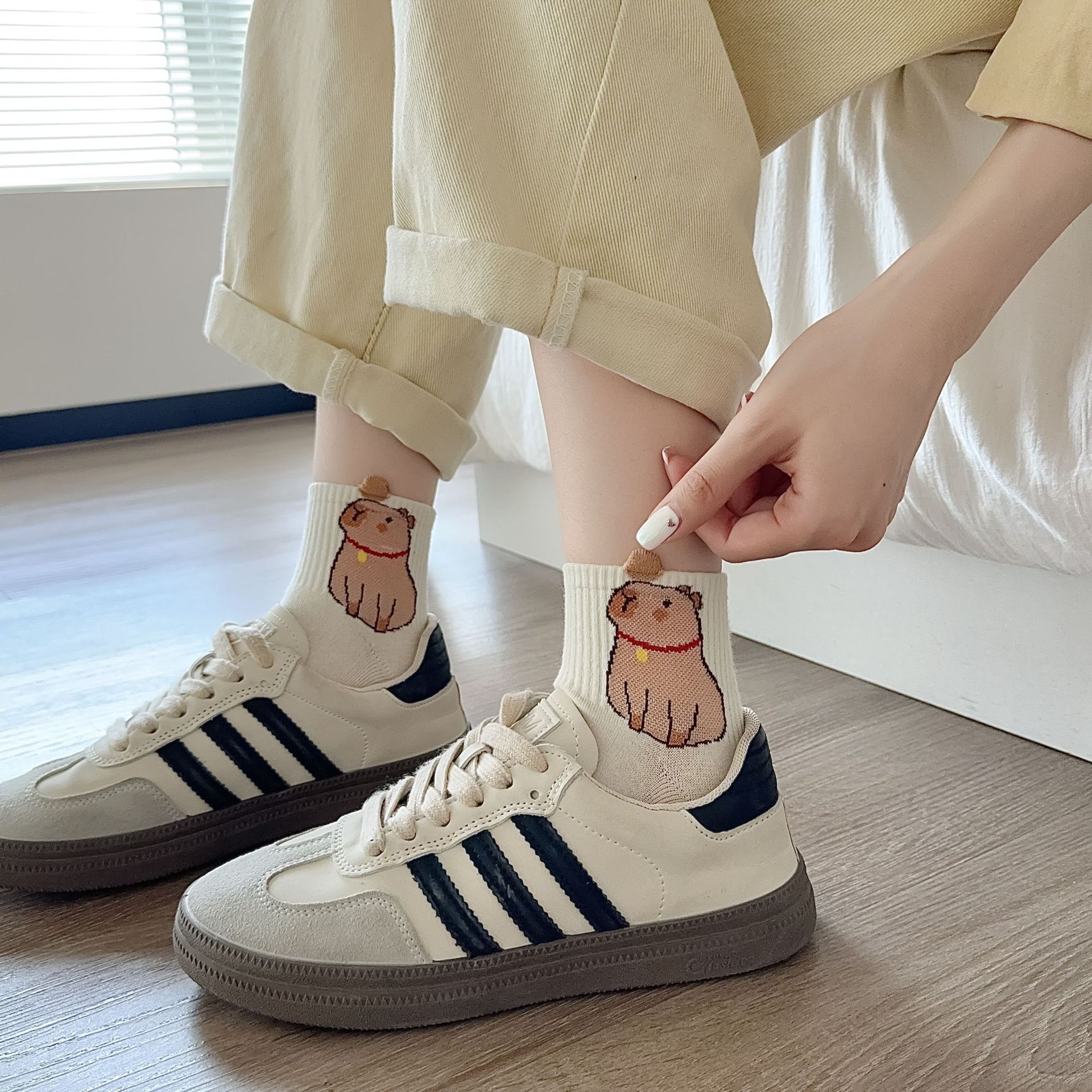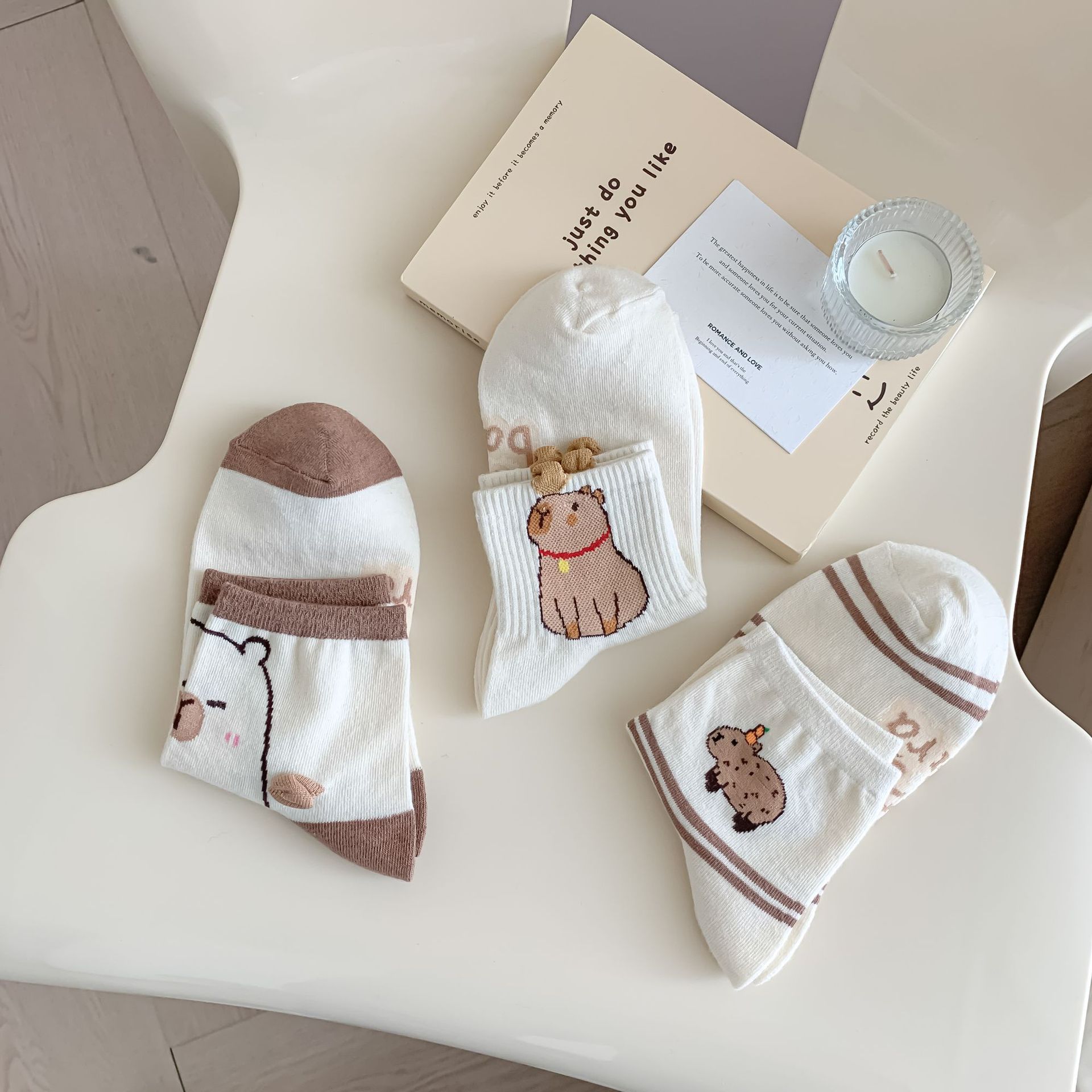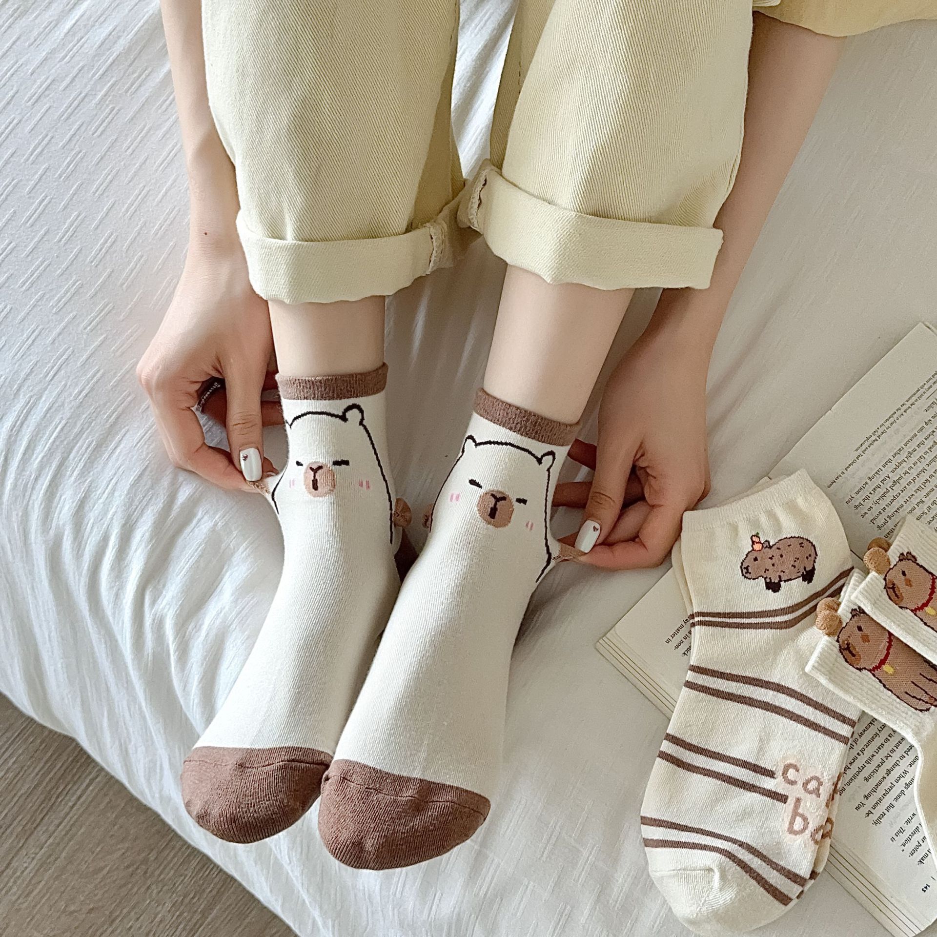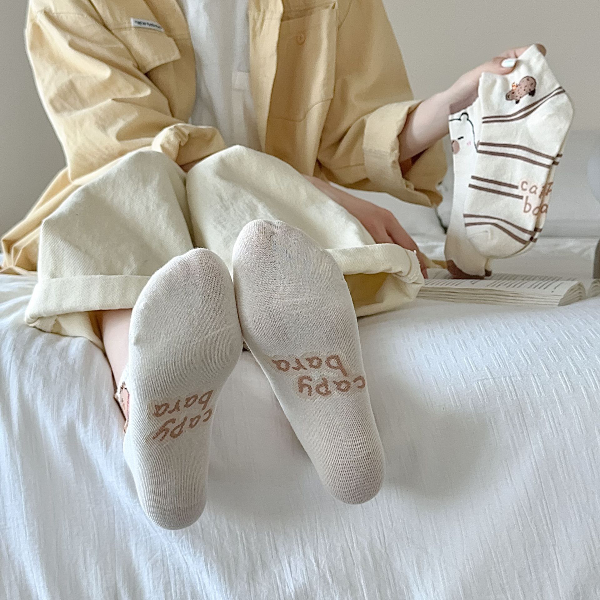 春夏薄款咖色可爱卡通小熊中筒袜袜子个性镂空堆堆袜日系诸暨袜子