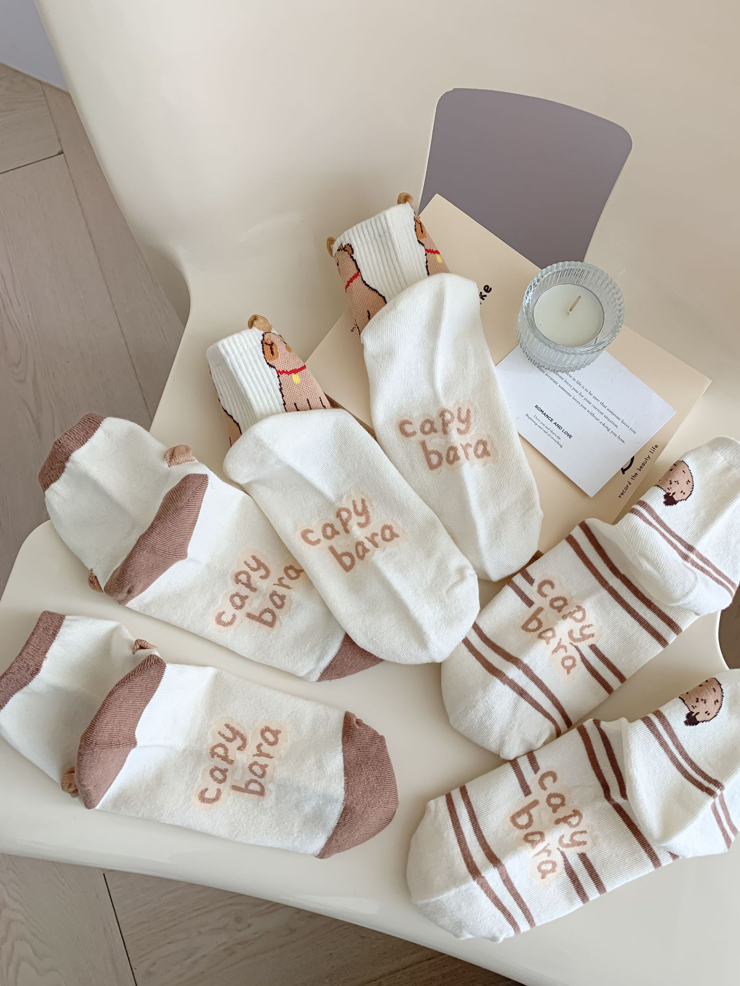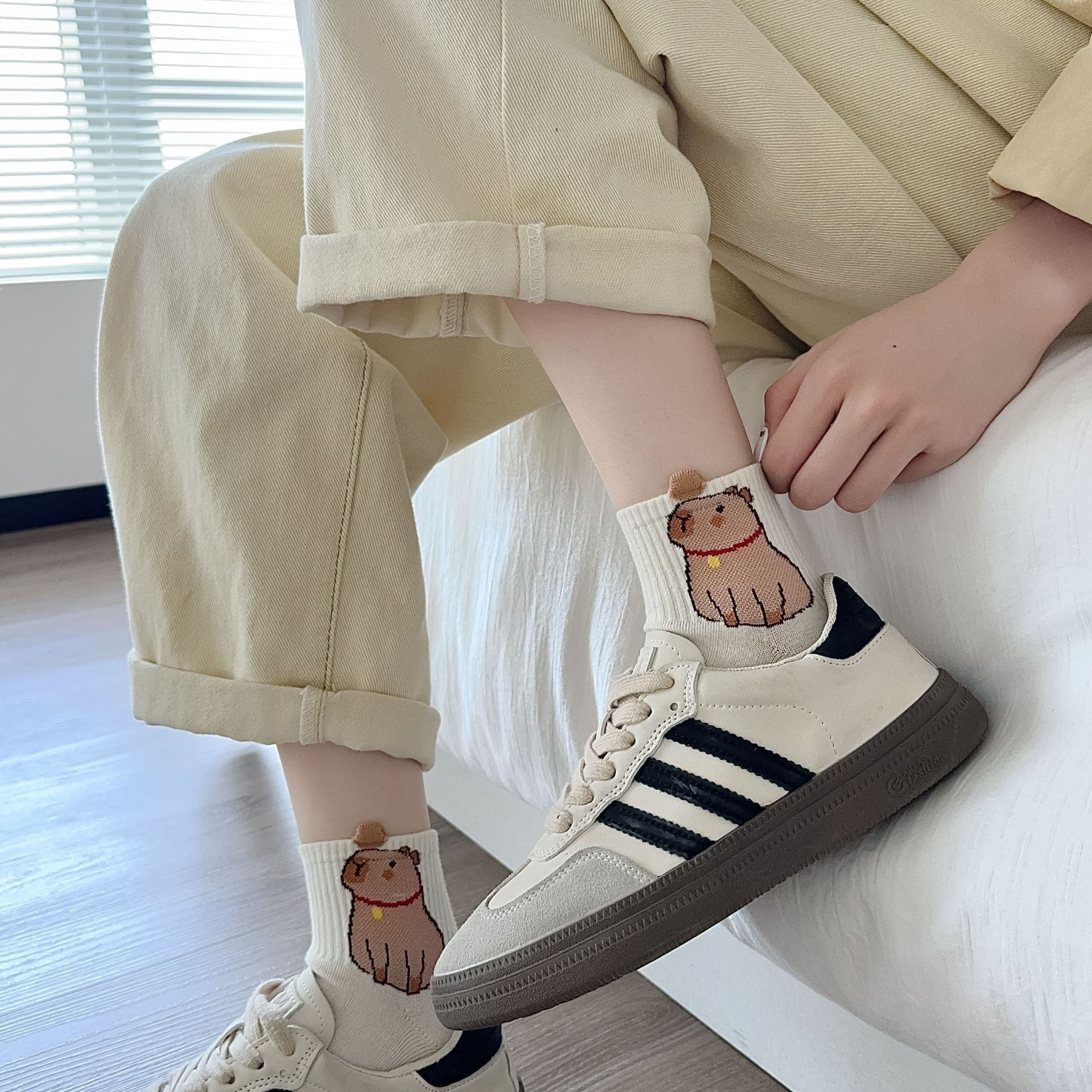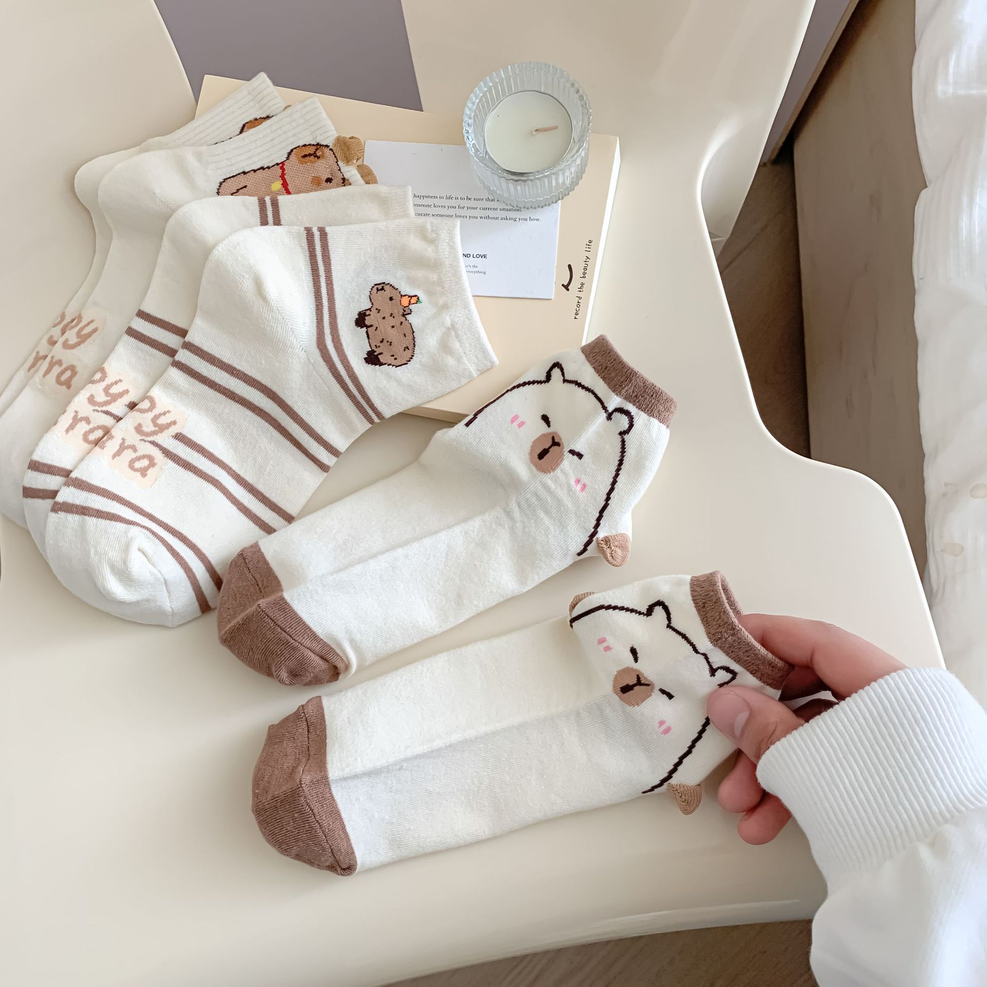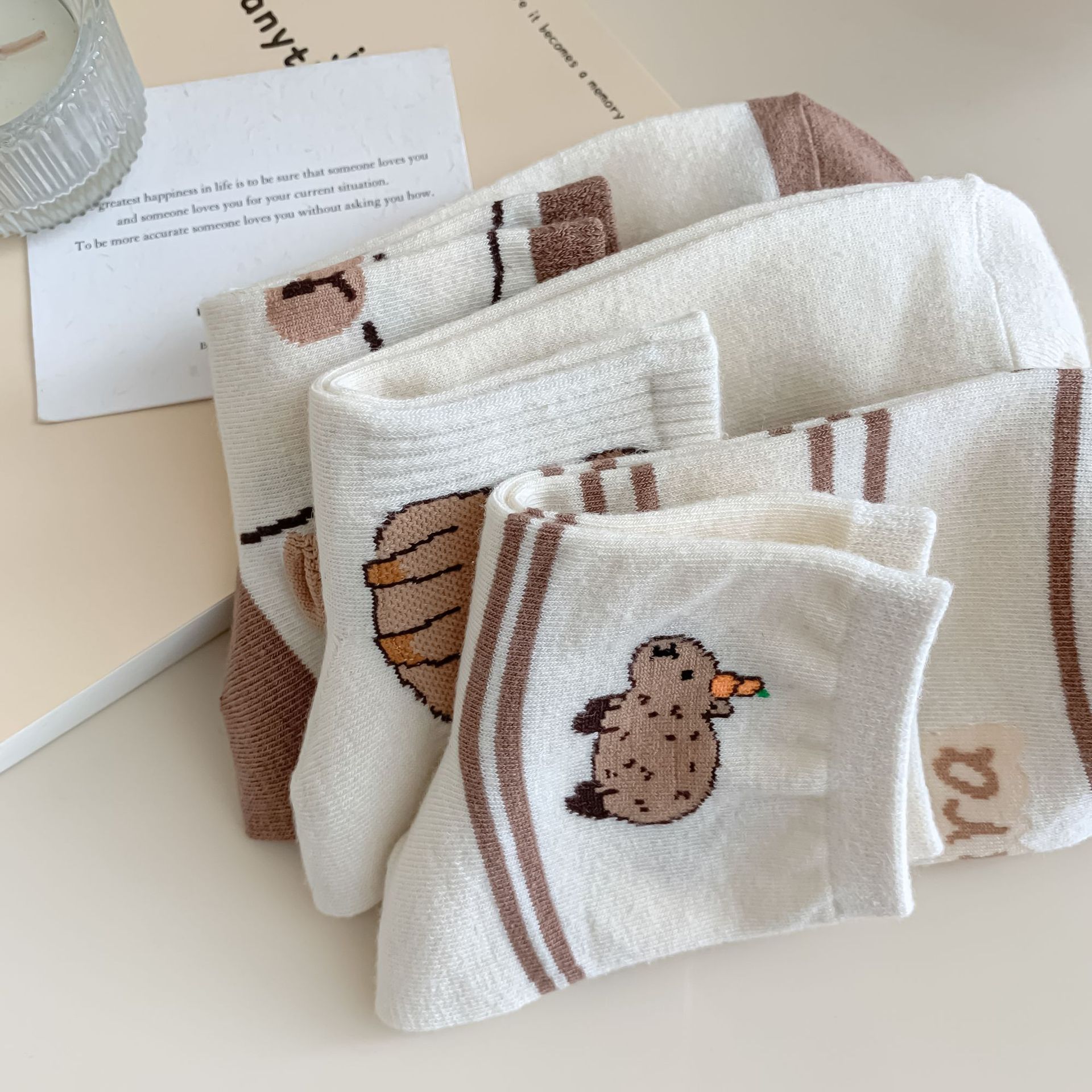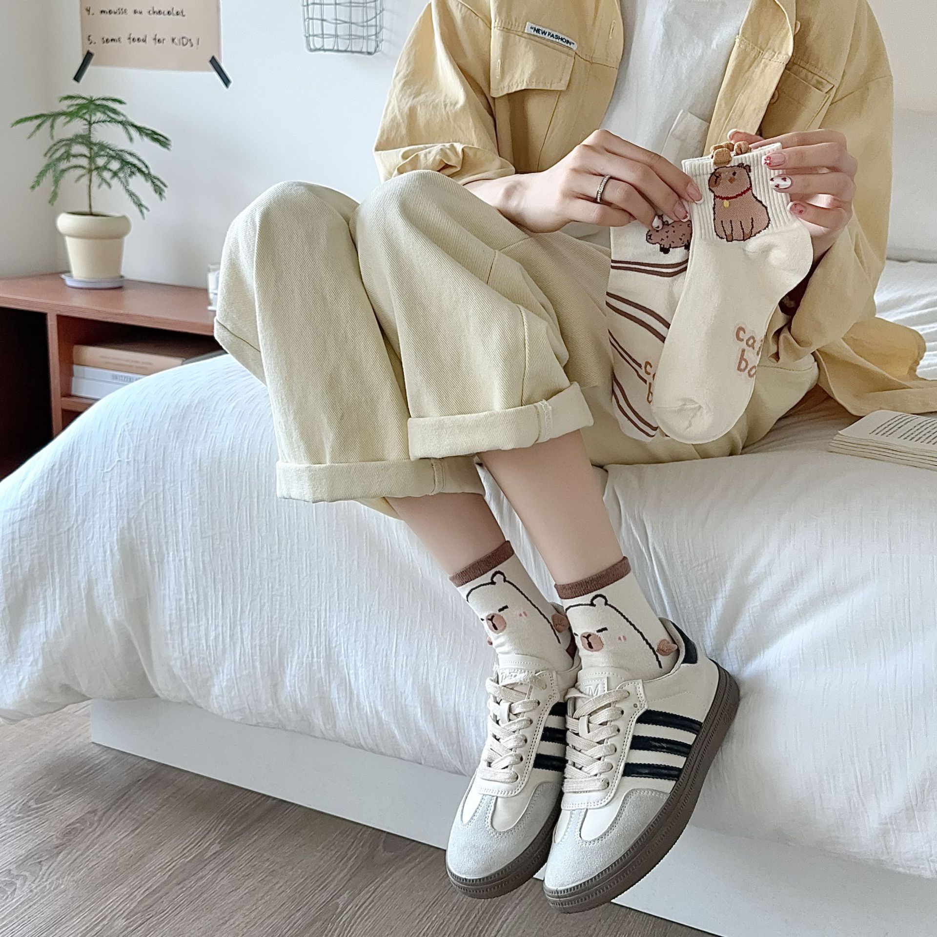 春夏薄款咖色可爱卡通小熊中筒袜袜子个性镂空堆堆袜日系诸暨袜子