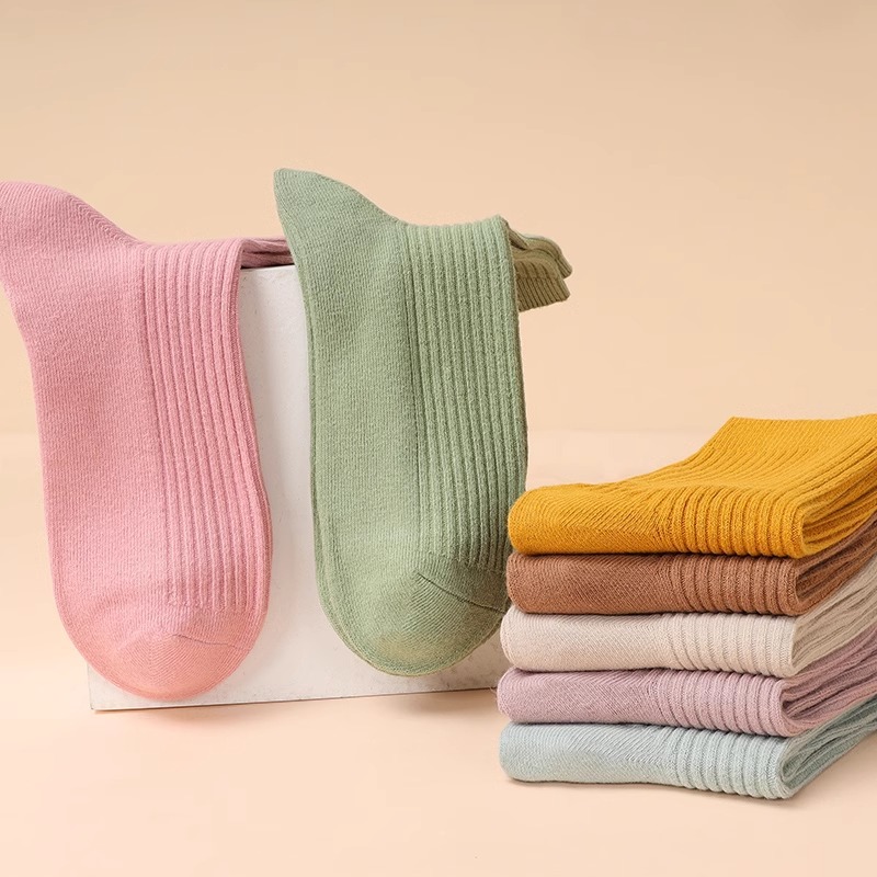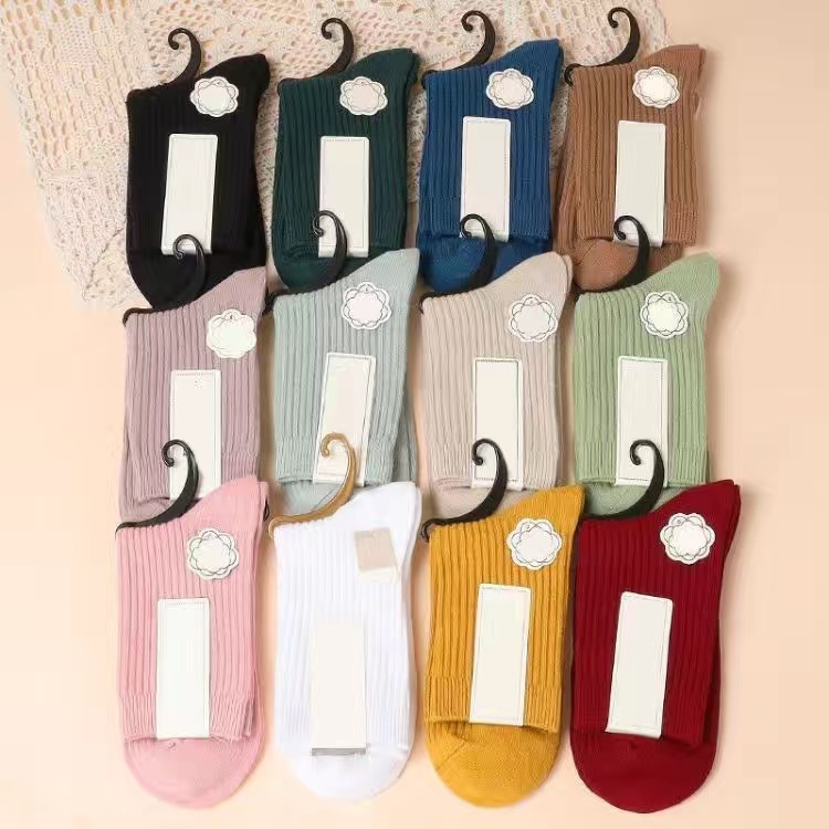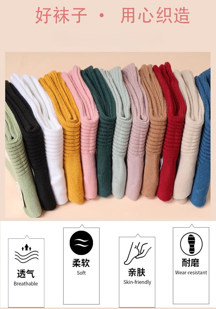 袜子女秋冬季纯色加加厚中筒女袜不掉色保暖休闲中长腰女士堆堆袜