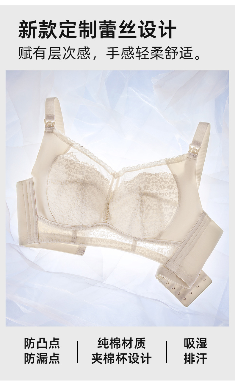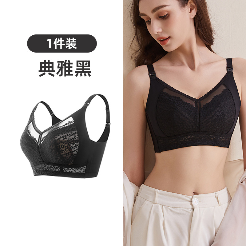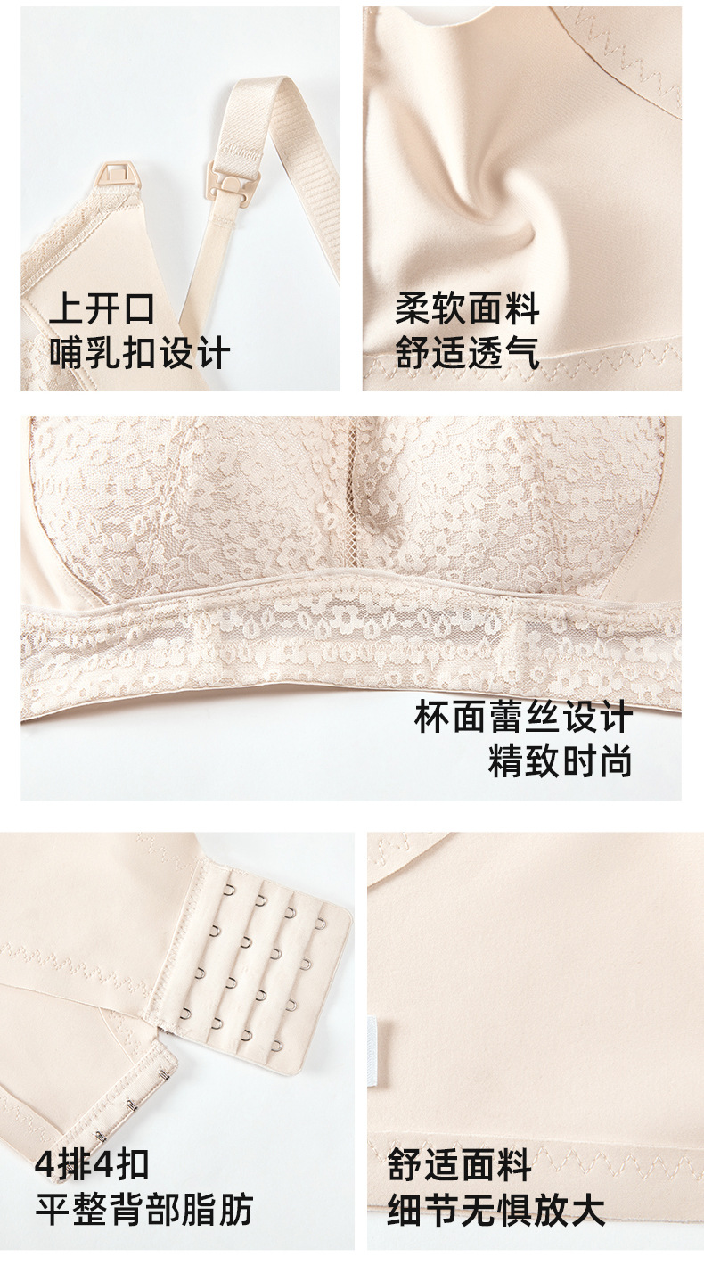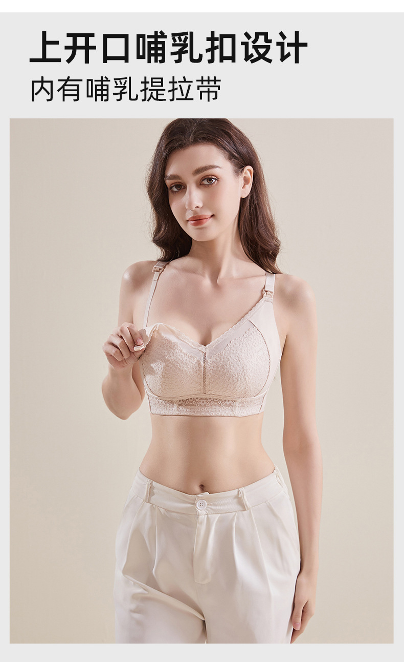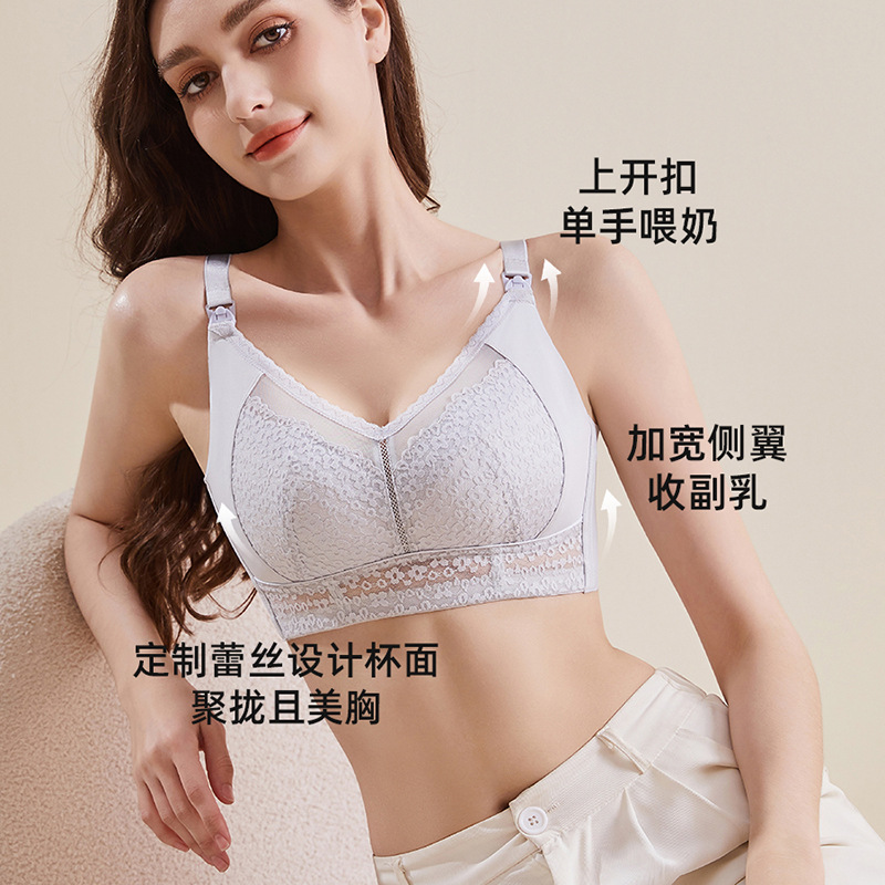 2024年新款蕾丝无钢圈大胸显小上托提拉聚拢无痕侧比调整哺乳文胸
