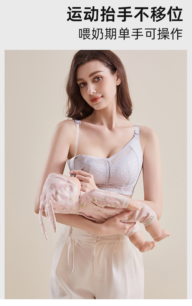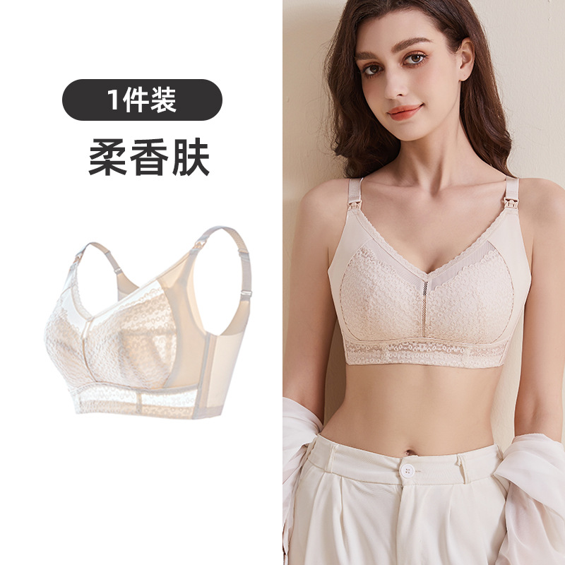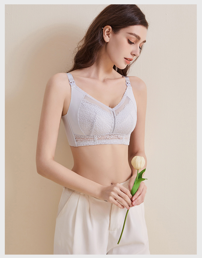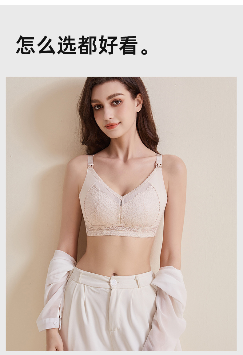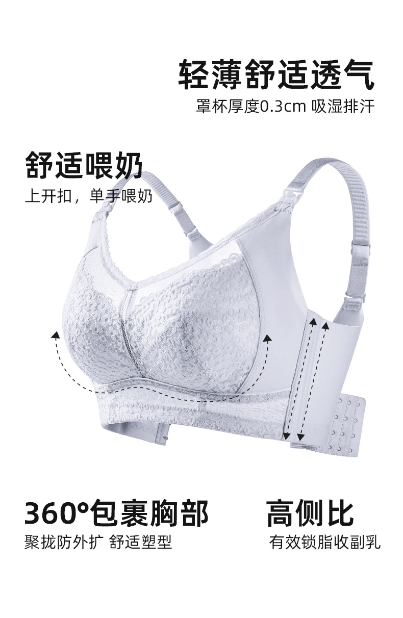 2024年新款蕾丝无钢圈大胸显小上托提拉聚拢无痕侧比调整哺乳文胸