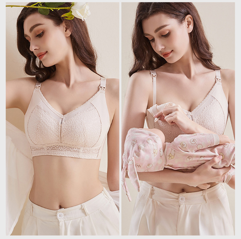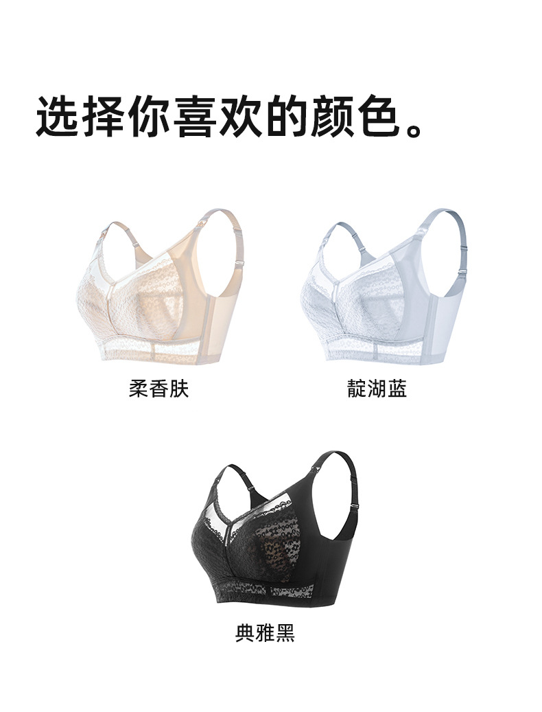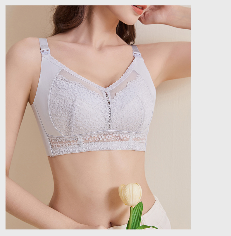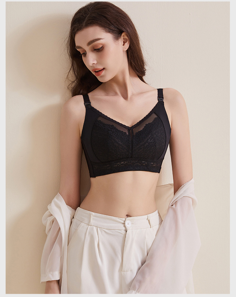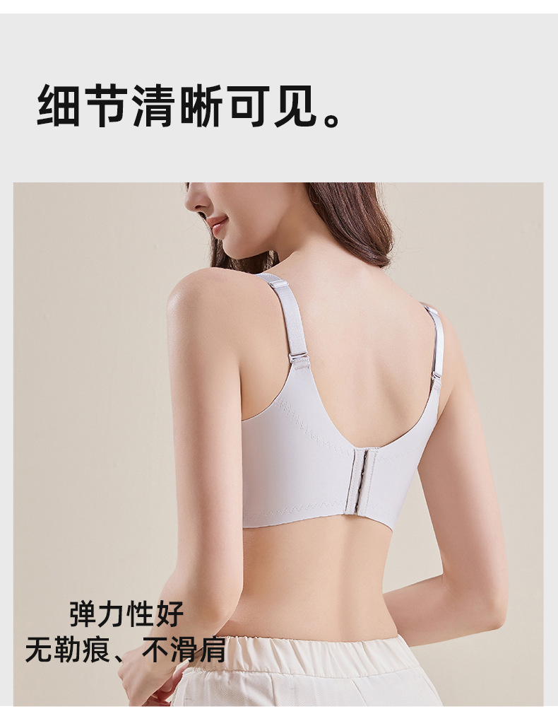 2024年新款蕾丝无钢圈大胸显小上托提拉聚拢无痕侧比调整哺乳文胸