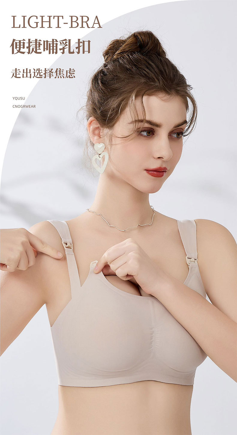 2024新款简约纯色抹胸舒适哺乳内衣无钢圈聚拢收副乳孕妇文胸外贸