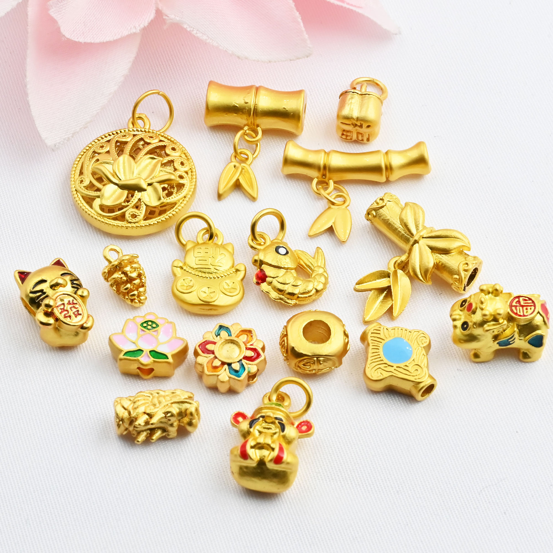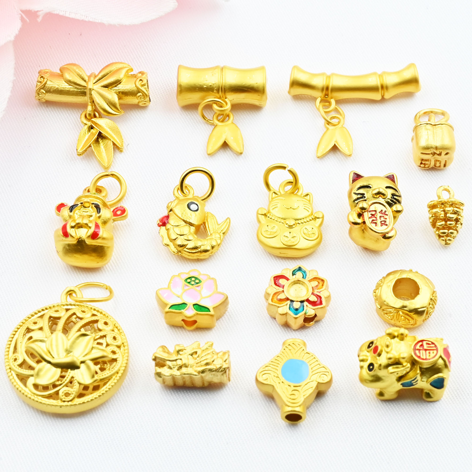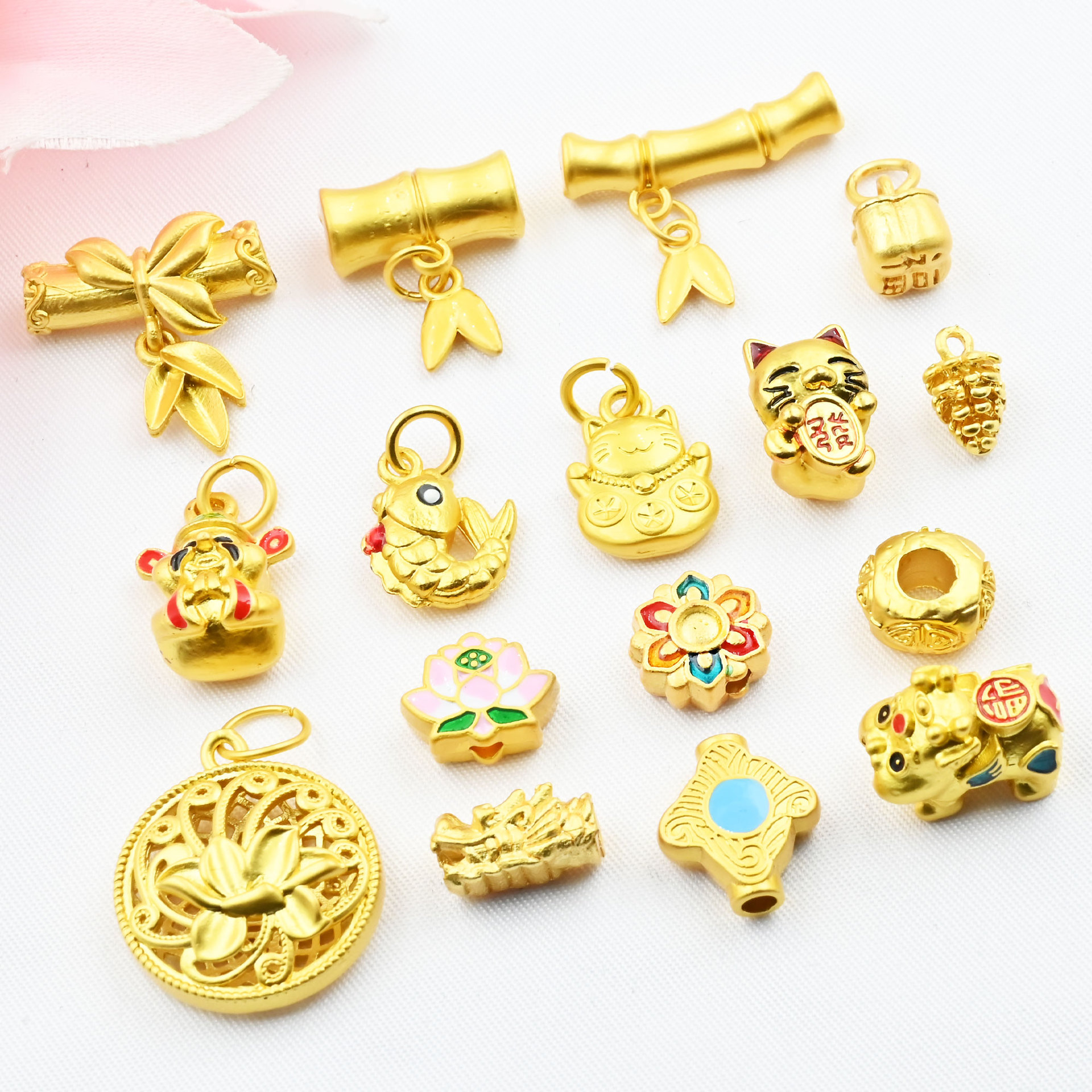 古法金猫吊坠节节高升珠子挂饰diy饰品配饰材料