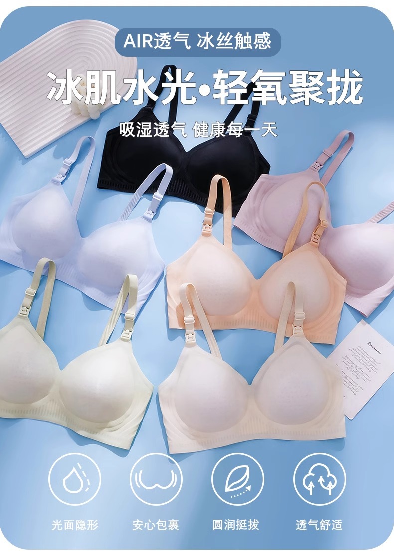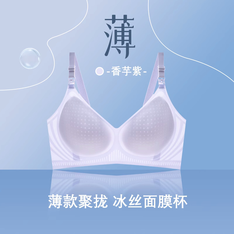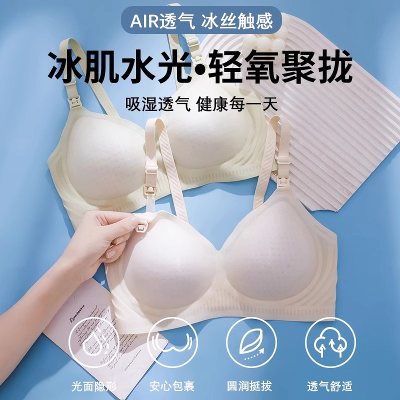 夏季薄款冰丝哺乳期内衣无痕无钢圈防下垂怀孕期孕妇文胸喂奶专用