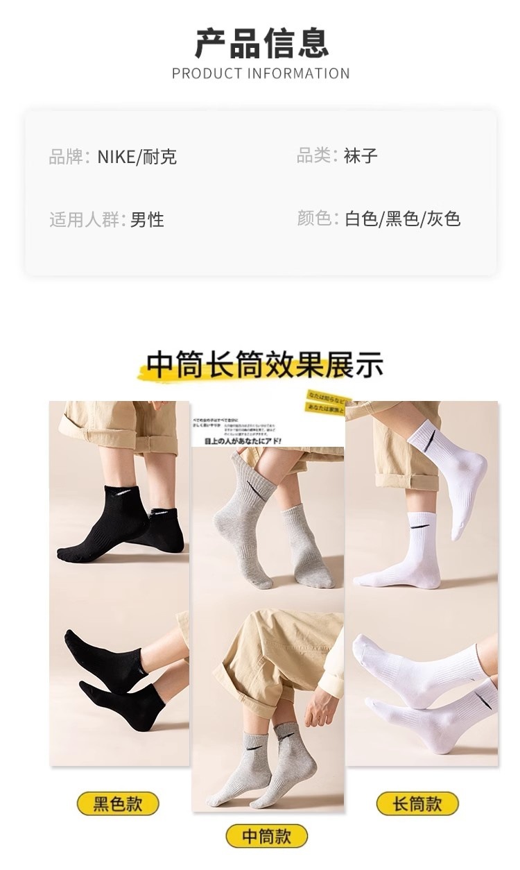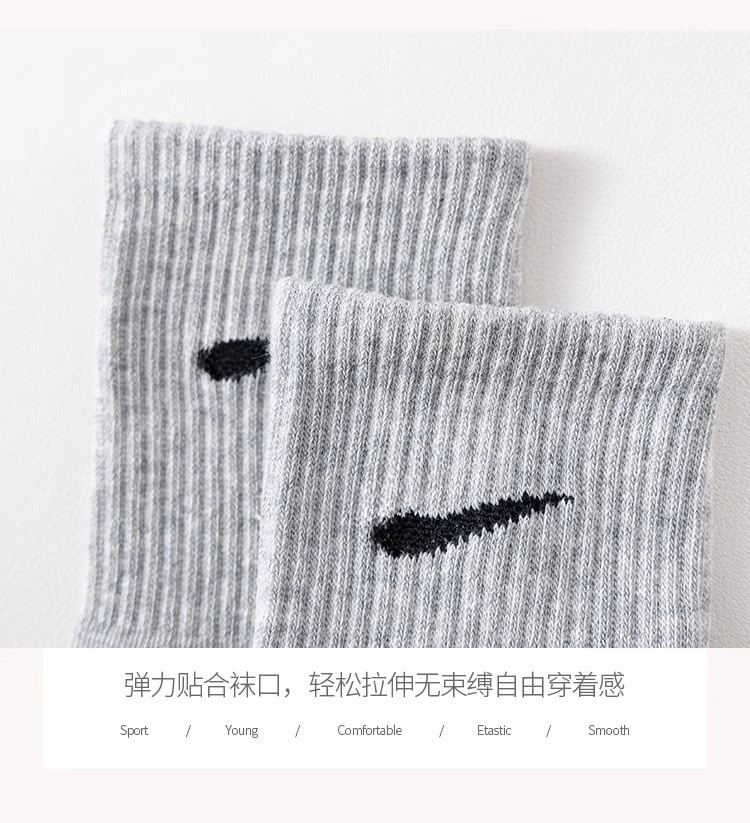 跨境专供苏万耐剋斯特袜子男女勾勾中筒纯色运动袜学生高筒袜批发