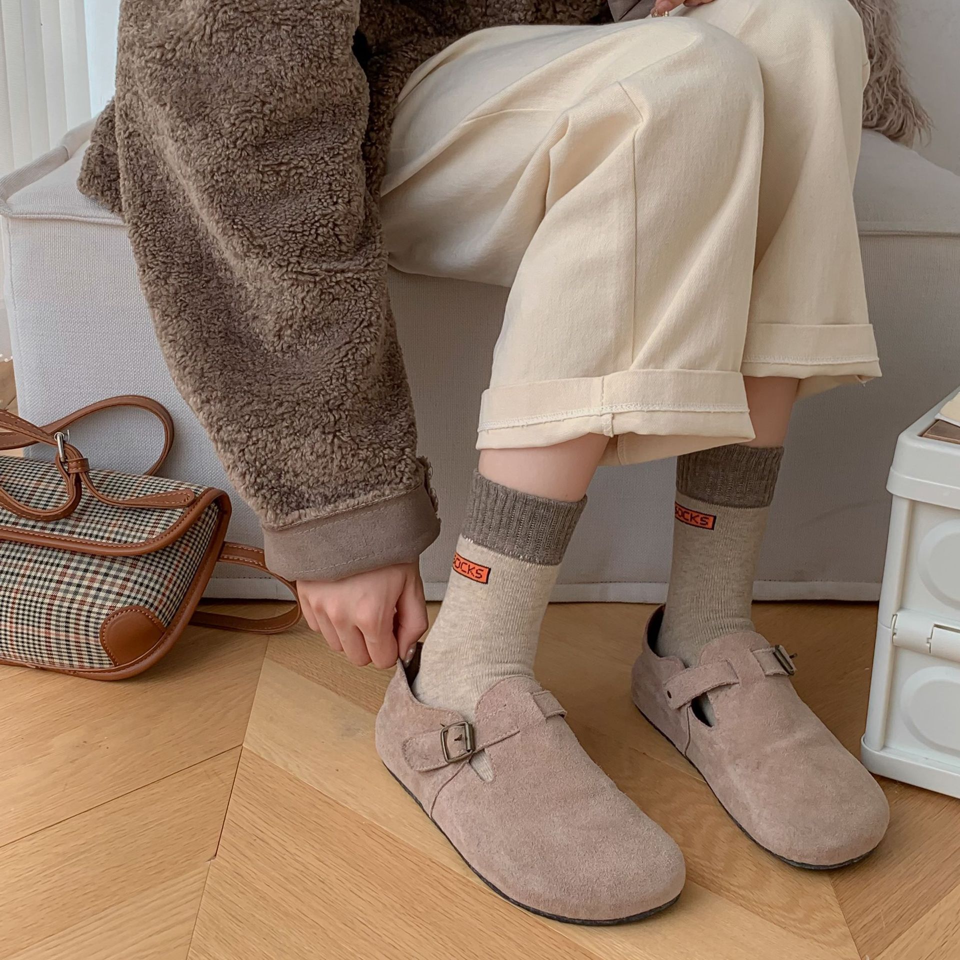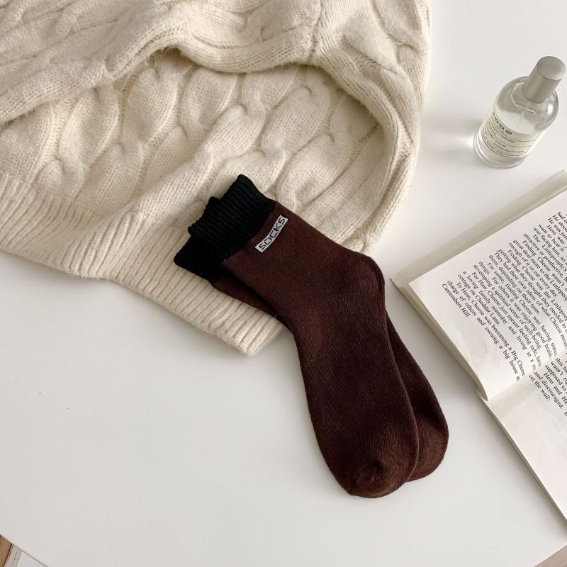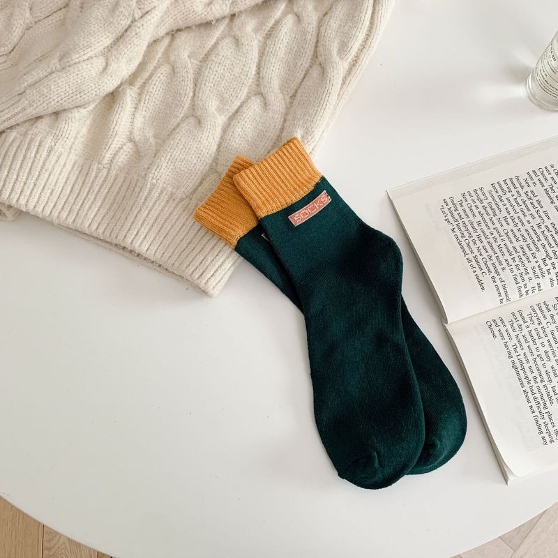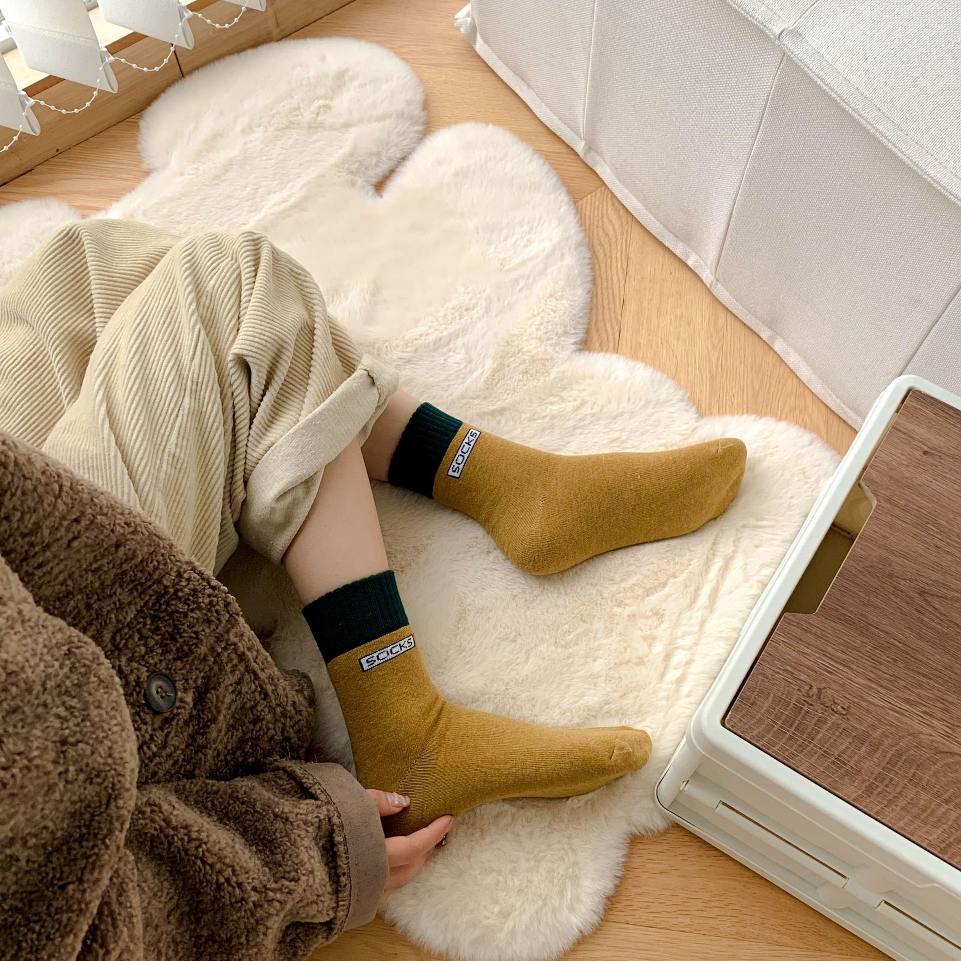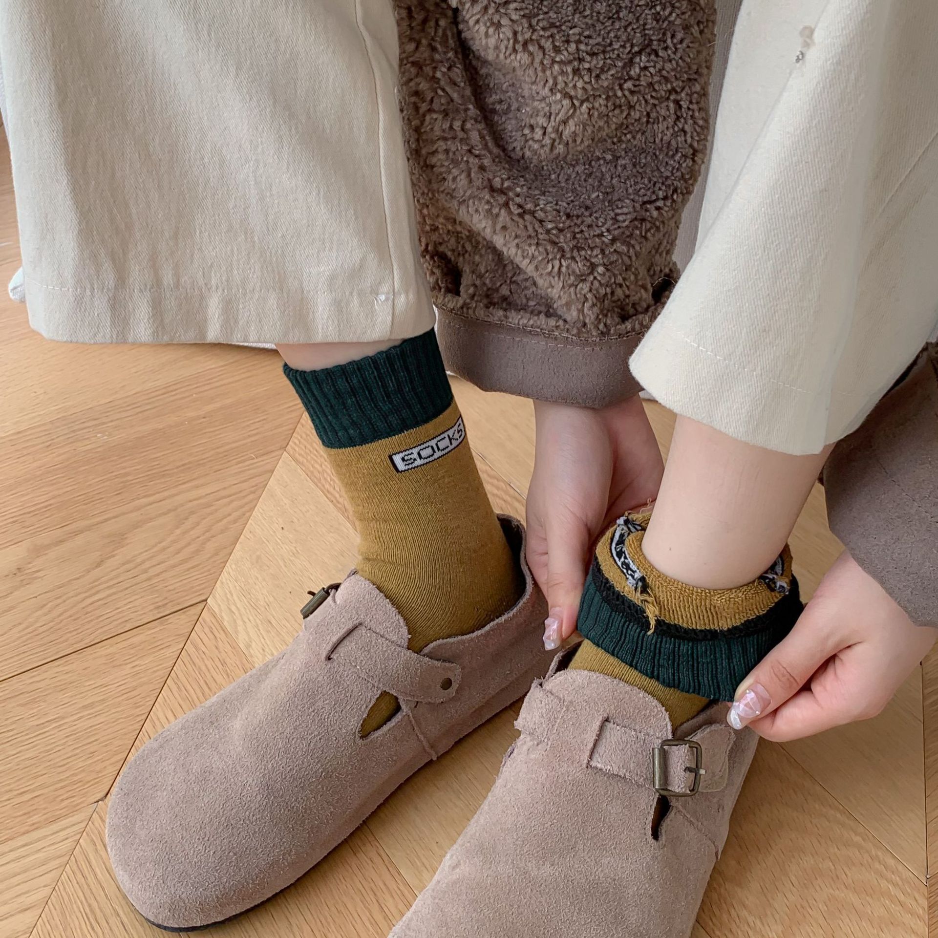 秋冬 保暖 中筒长筒袜秋冬季加绒加厚全棉袜字母款百搭休闲毛圈袜