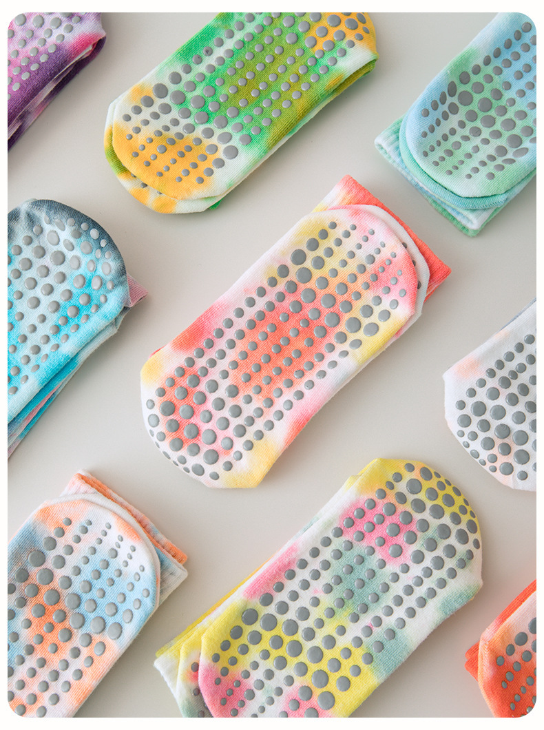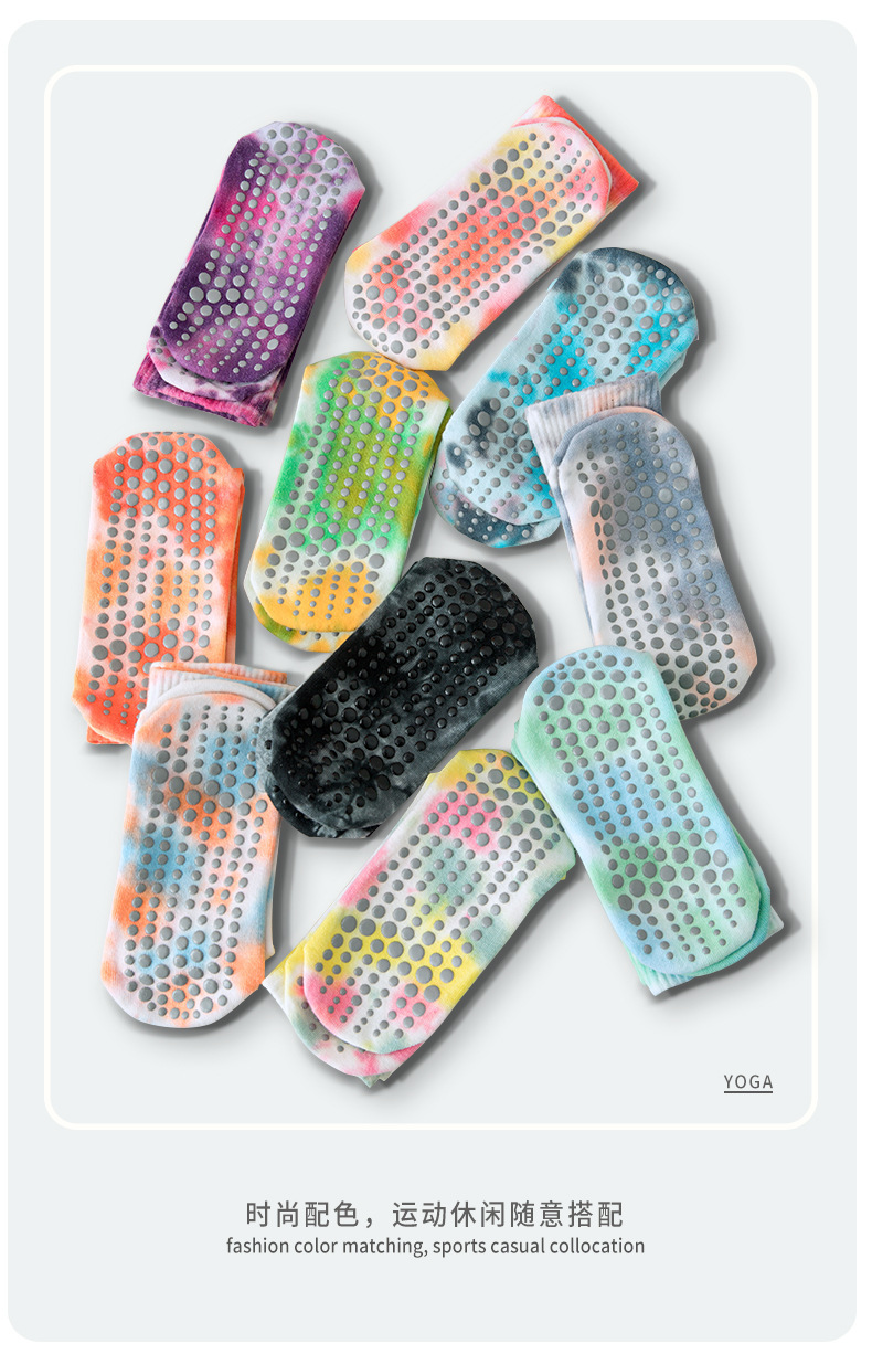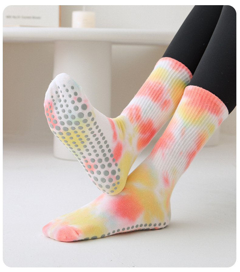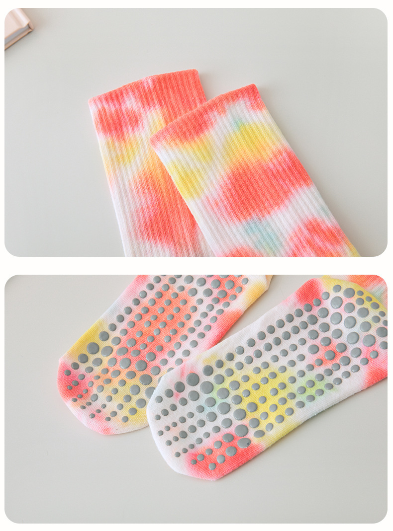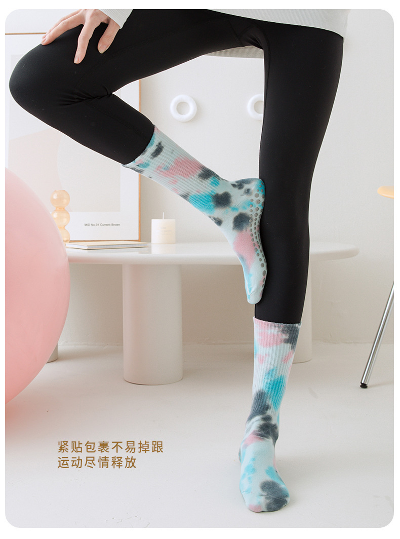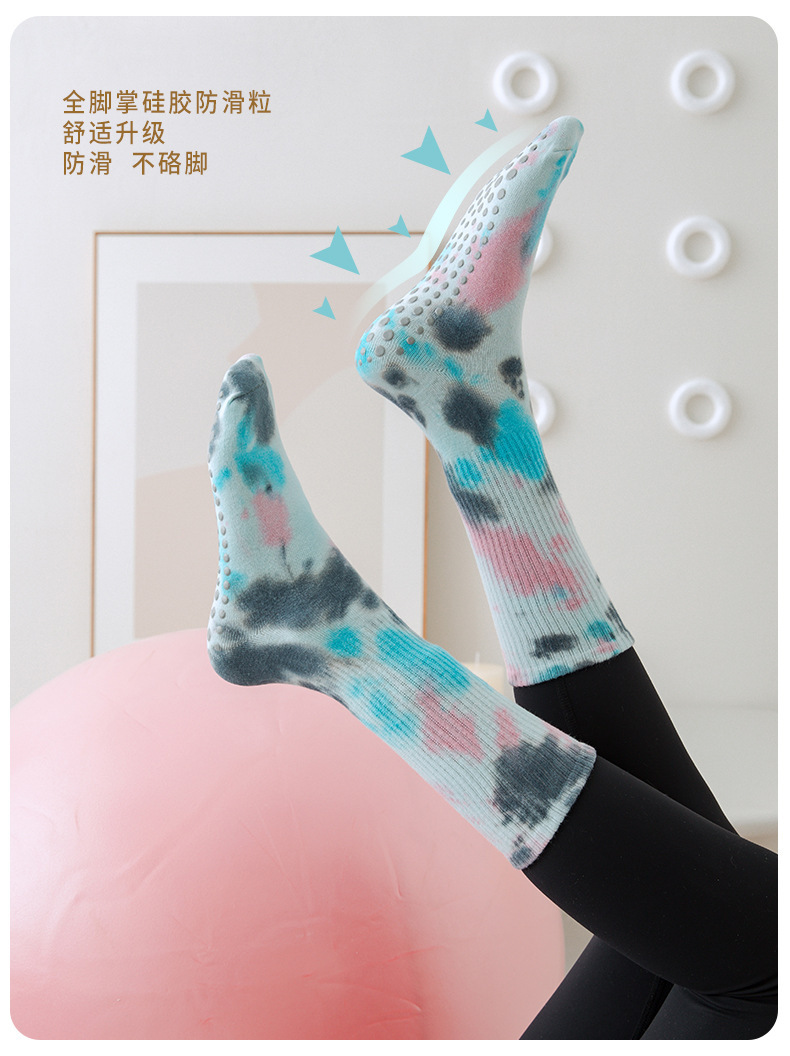 袜子女普拉提防滑中筒袜扎染跨境地板袜透气吸汗居家运动瑜伽袜子