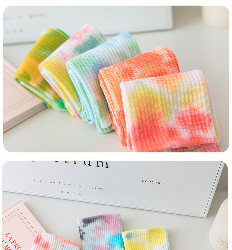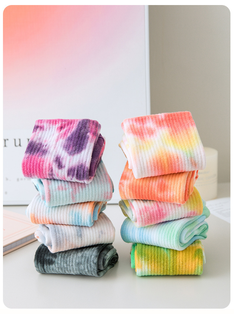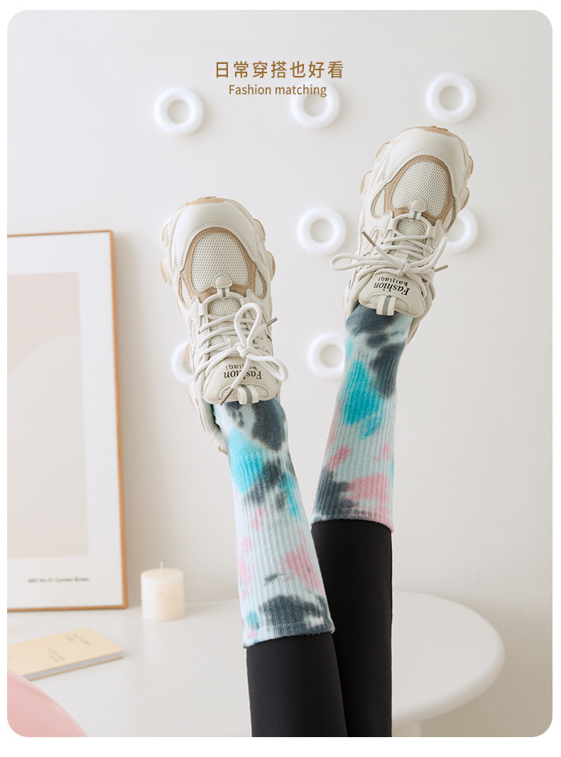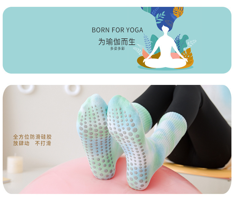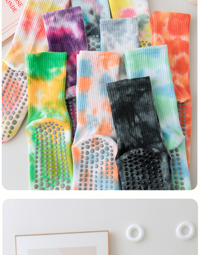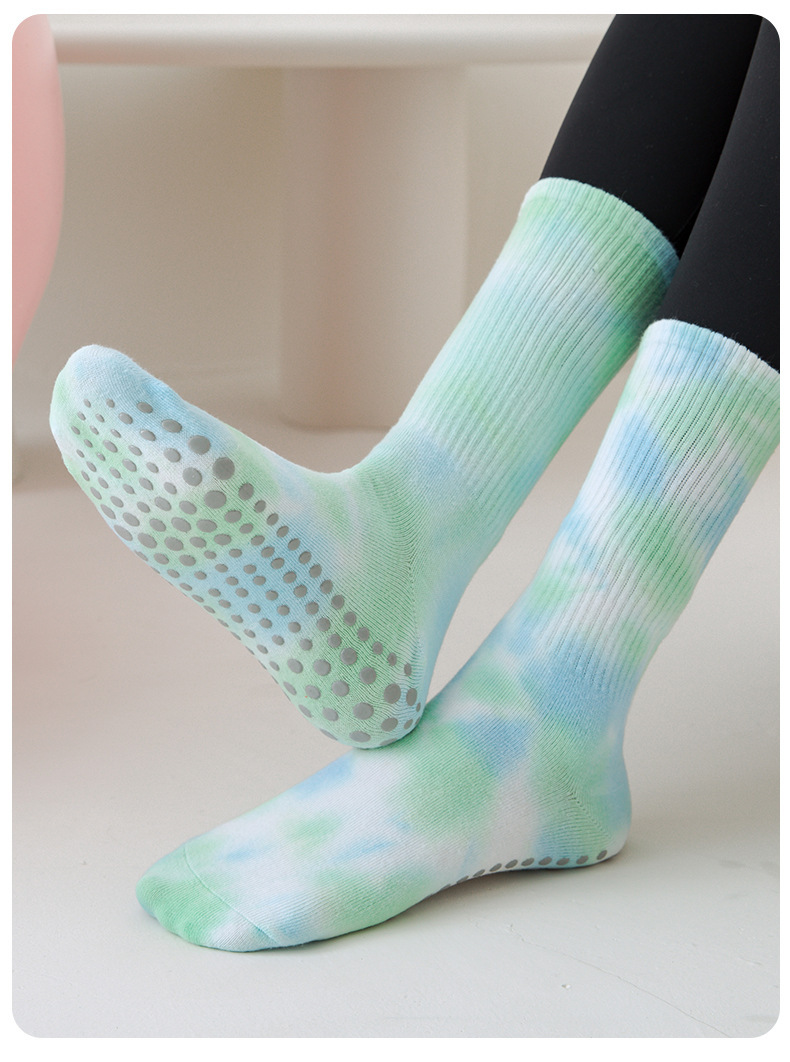 袜子女普拉提防滑中筒袜扎染跨境地板袜透气吸汗居家运动瑜伽袜子