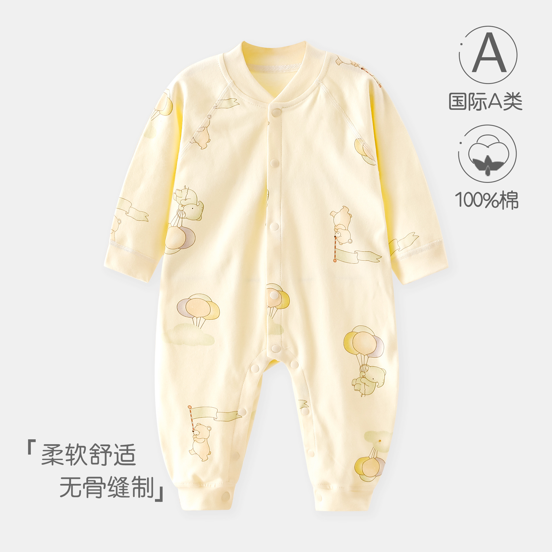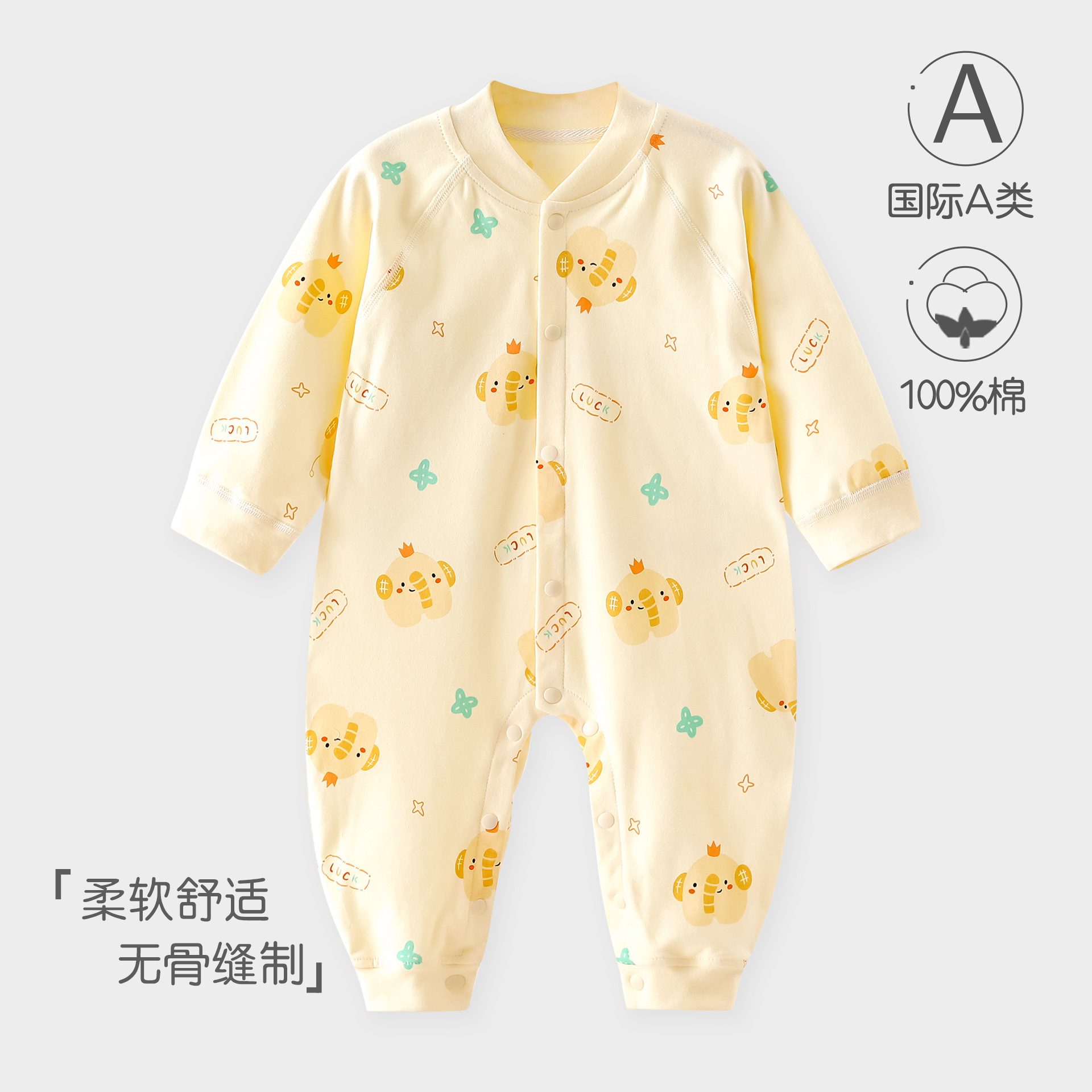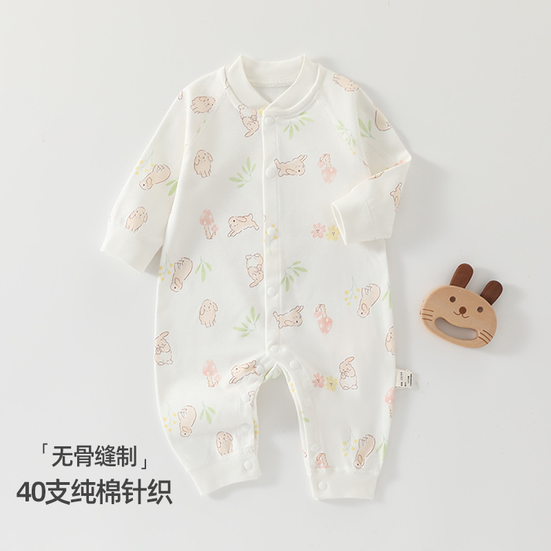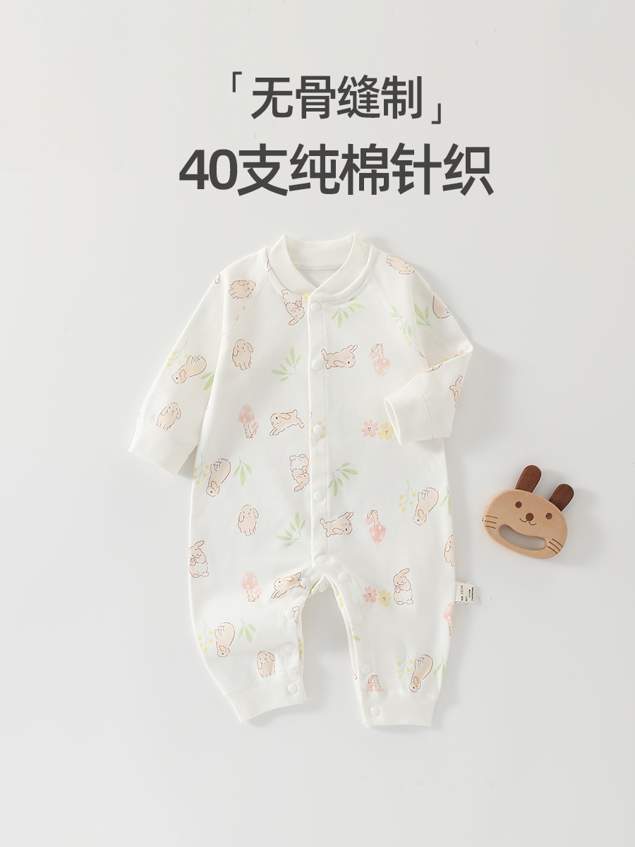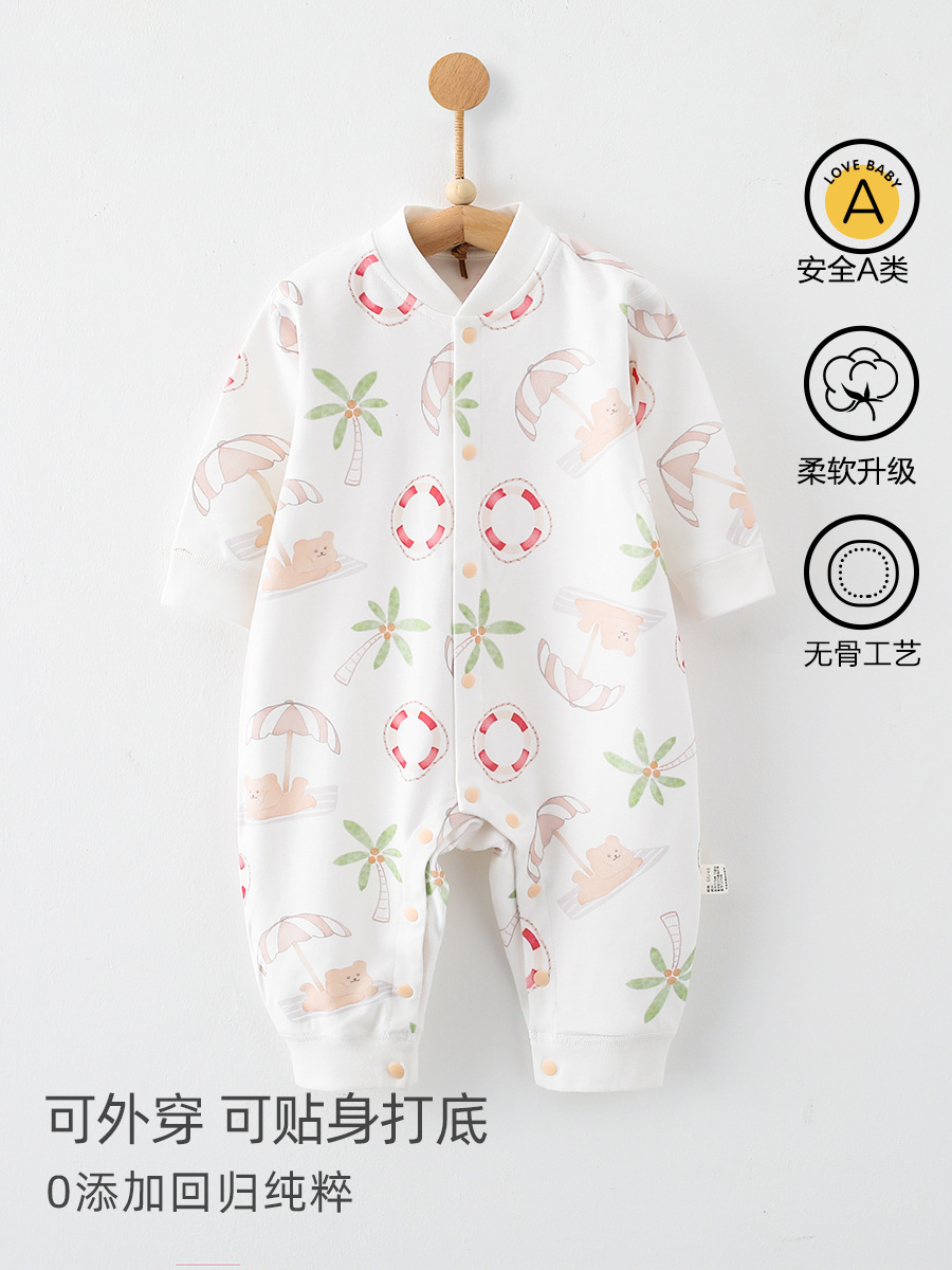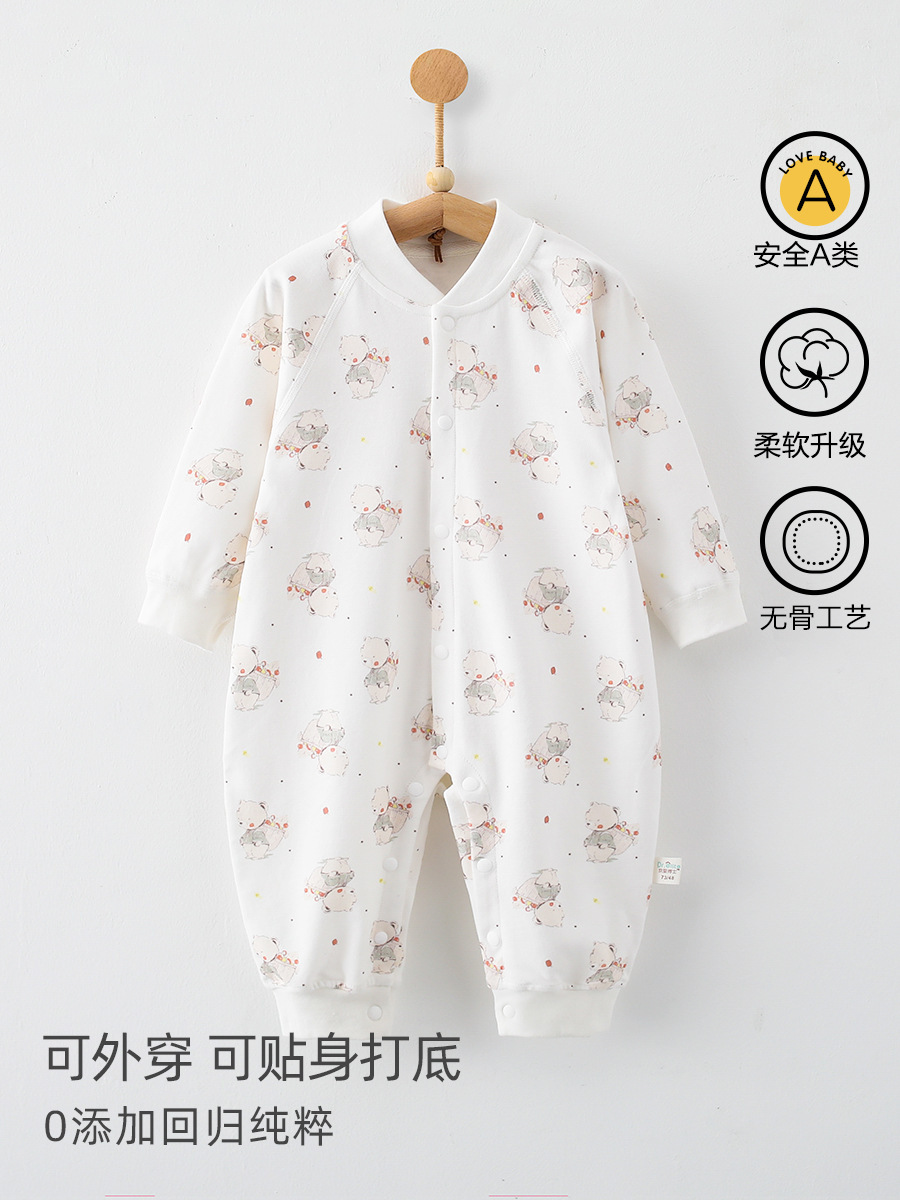 婴儿连体衣春秋a类纯棉6一12月宝宝无骨秋装新生儿衣服早秋哈衣爬
