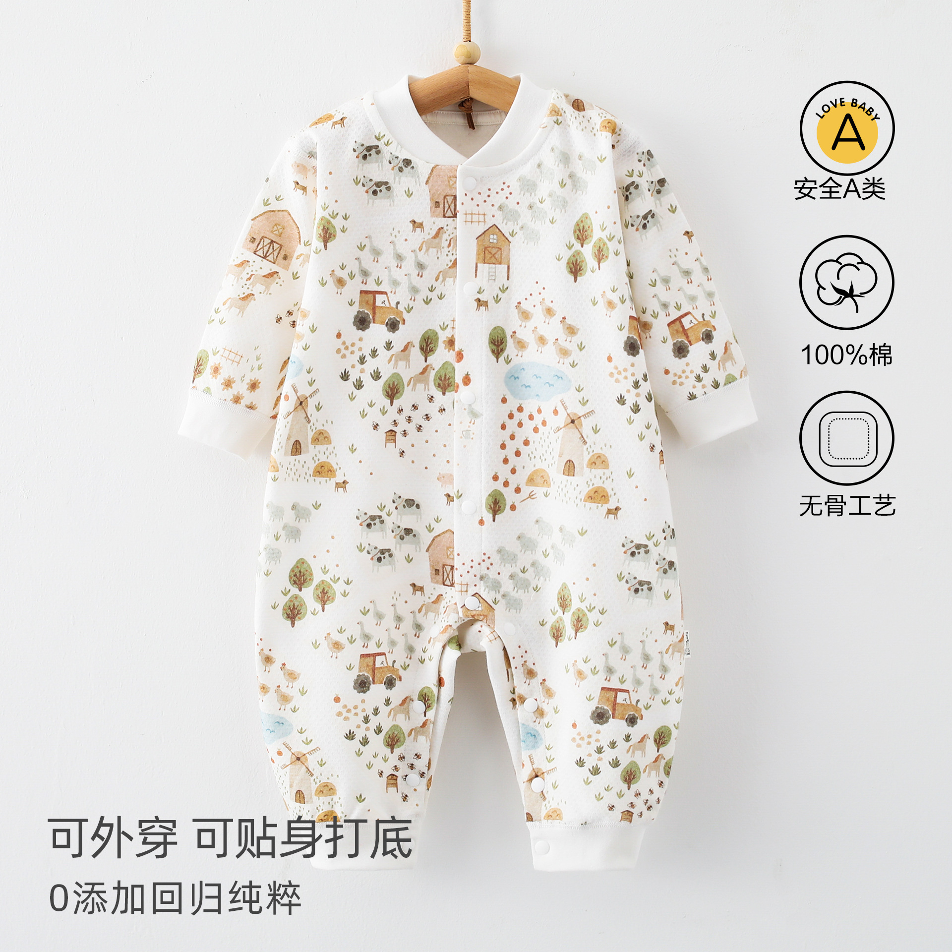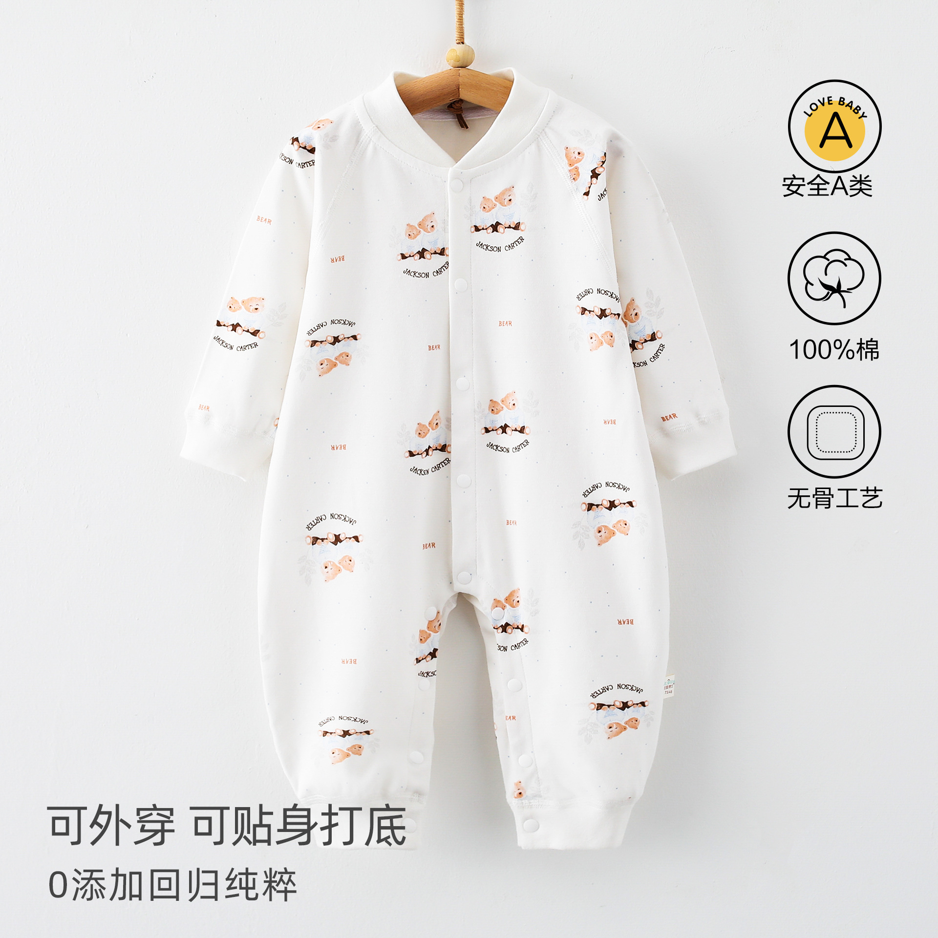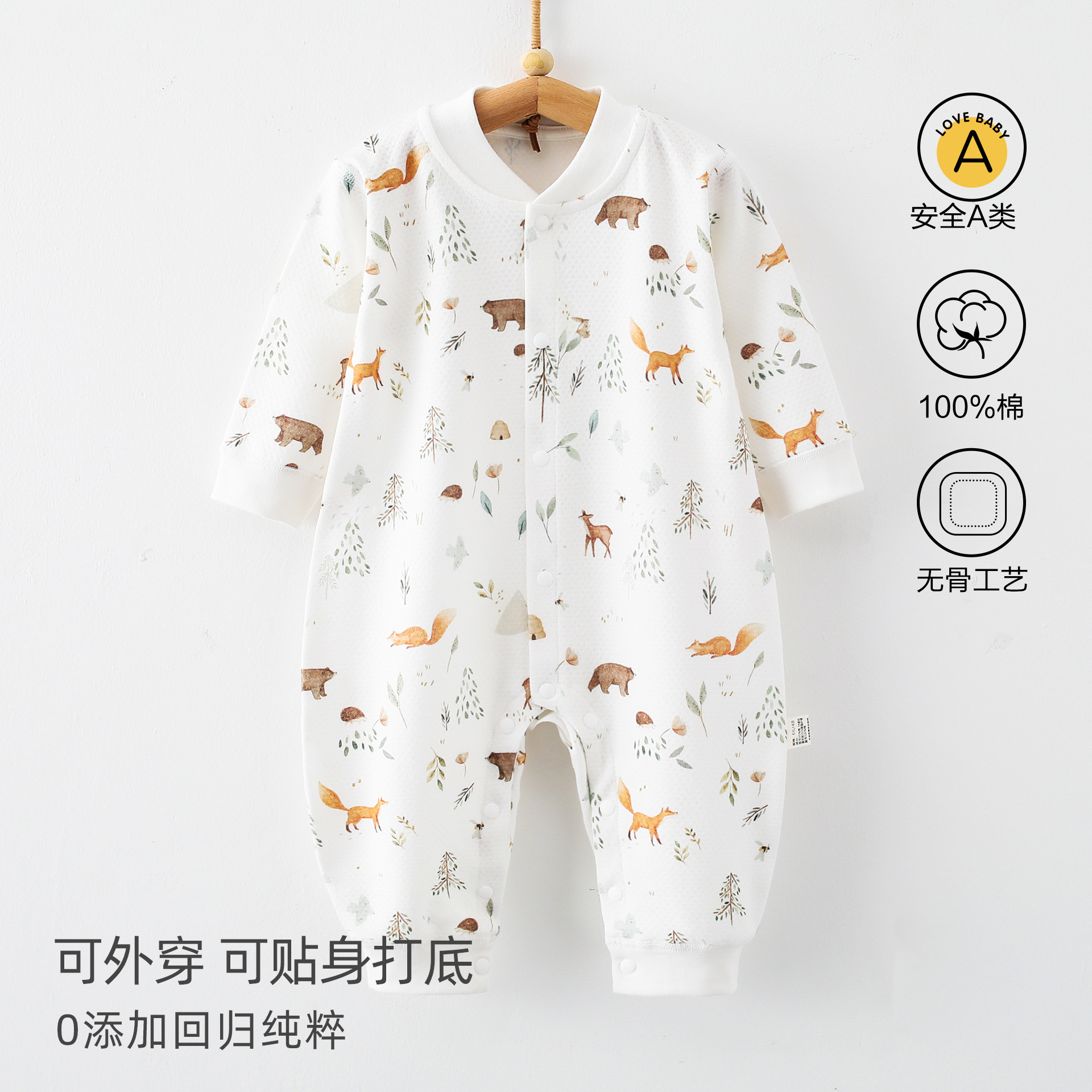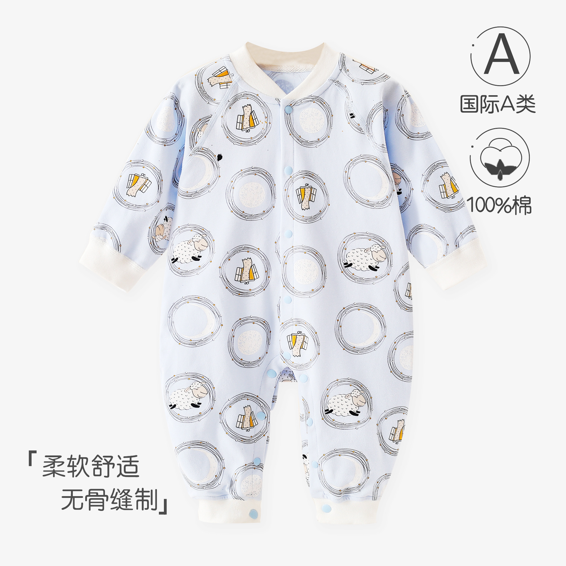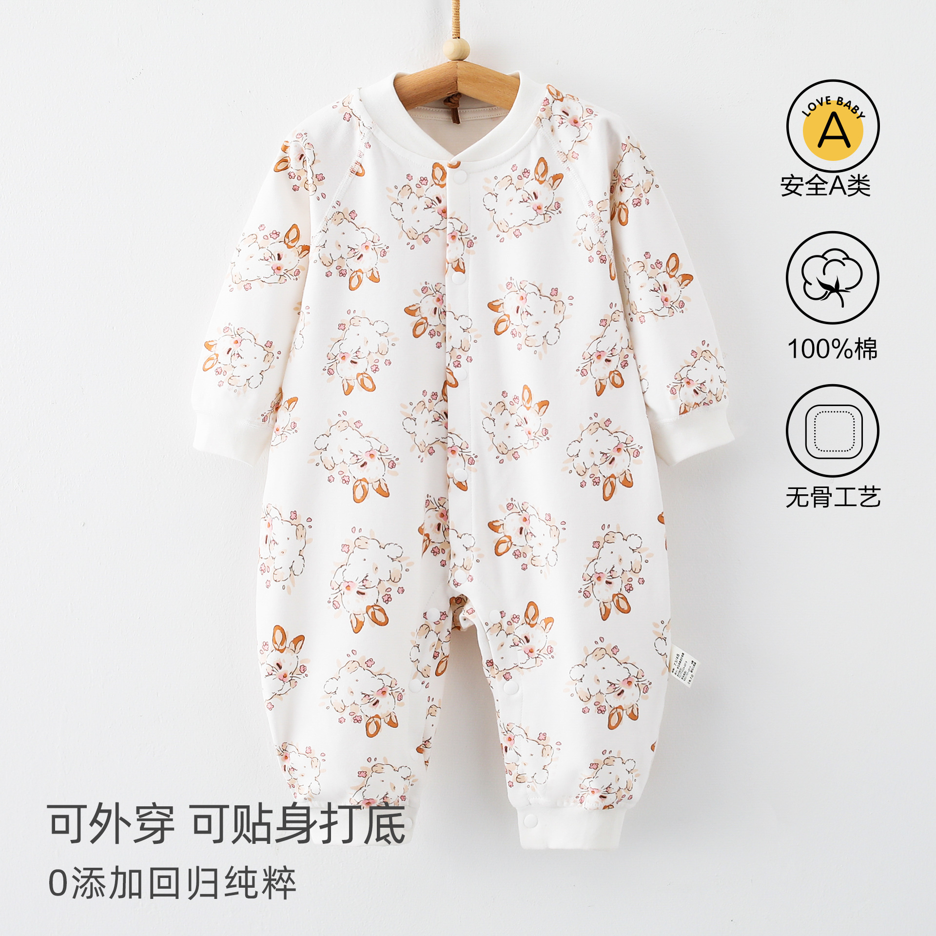 婴儿连体衣春秋a类纯棉6一12月宝宝无骨秋装新生儿衣服早秋哈衣爬