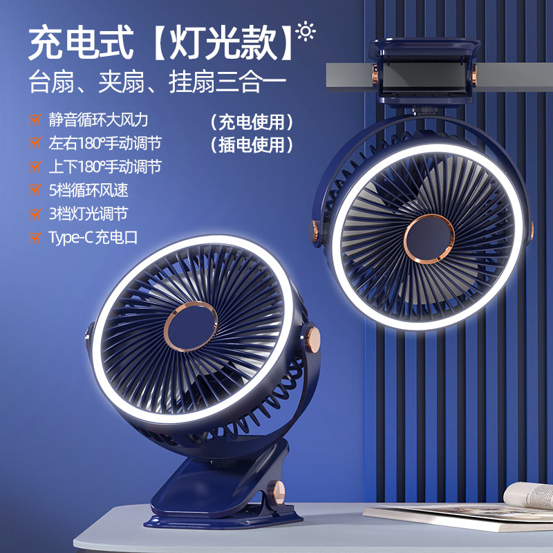 跨境多功能夹子风扇带夜灯usb充电静音学生宿舍便携式小型 小风扇