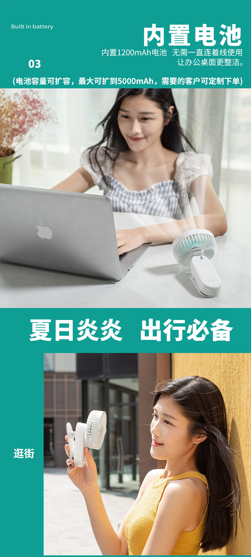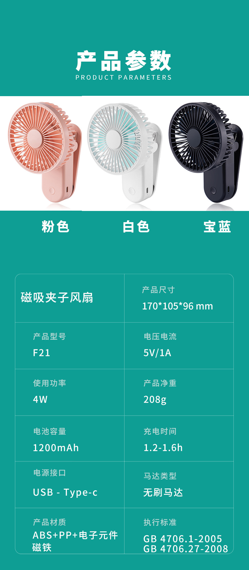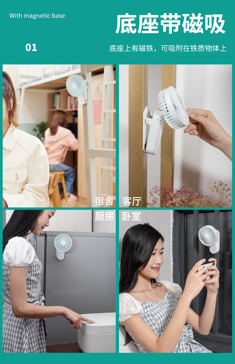新款磁吸夹子风扇 USB充电学生宿舍办公室床头迷你桌面台式小风扇