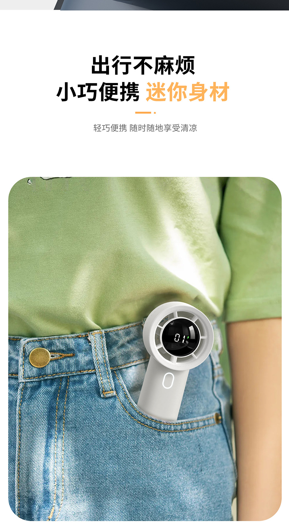 跨境新款办公室桌面小风扇 户外便携数显USB迷你涡轮高速手持风扇