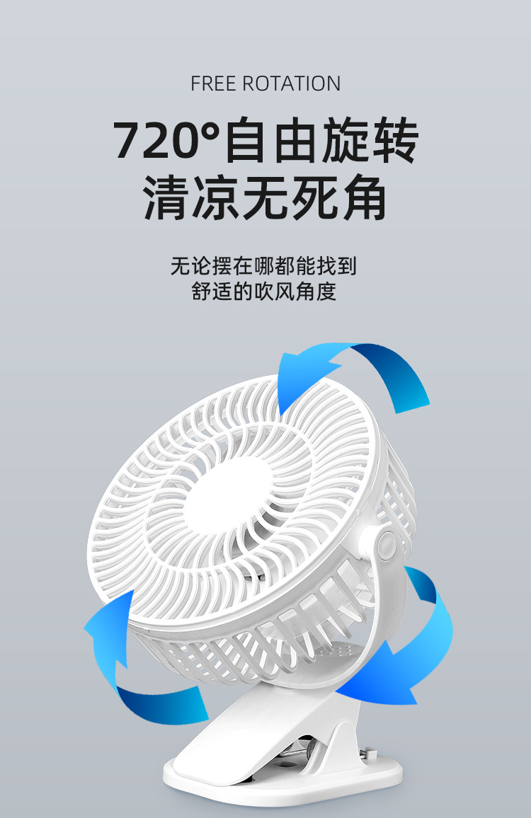 6寸夹子桌面风扇电动usb可充电大风力台夹式挂式迷你家办公室宿舍