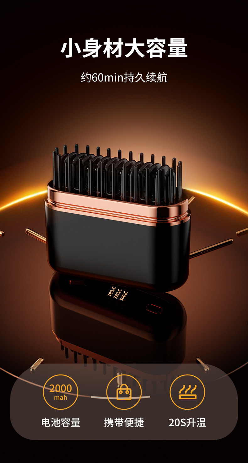 跨境迷你直发梳无线新款充电直发器便携式护发不伤发造型梳子家用