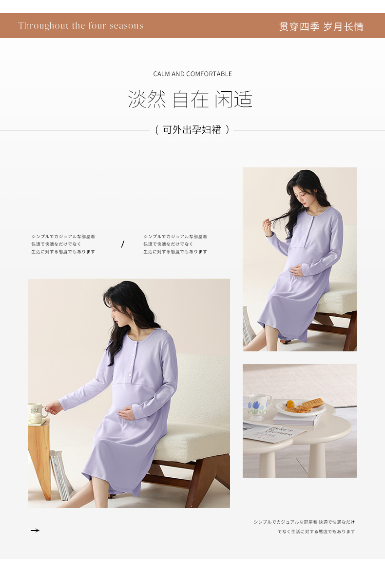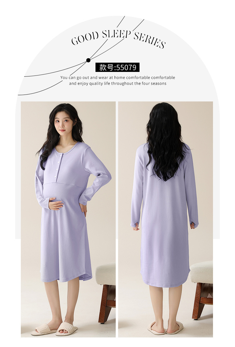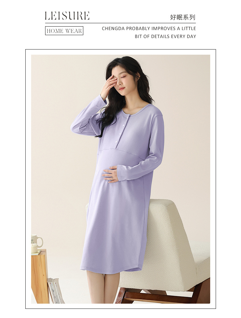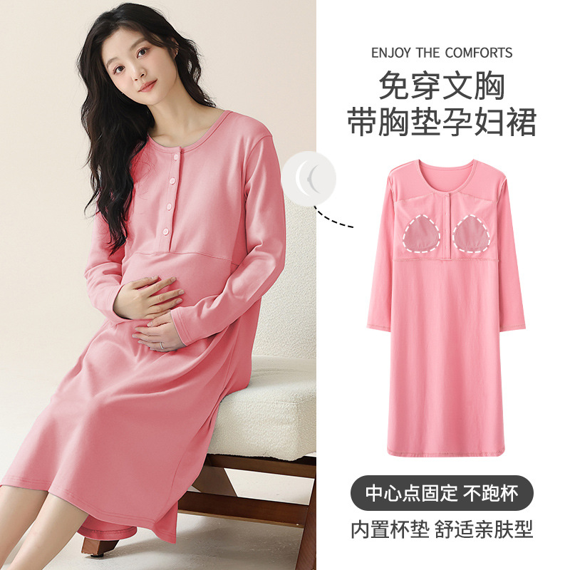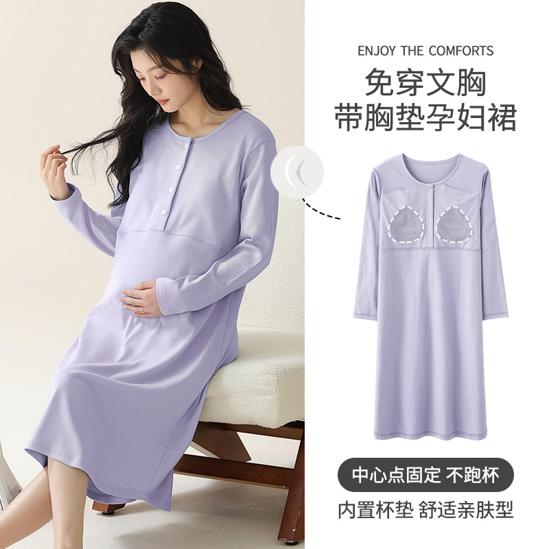 待产裙孕妇月子服春秋款纯棉睡裙哺乳带胸垫睡衣女款2024新款夏季
