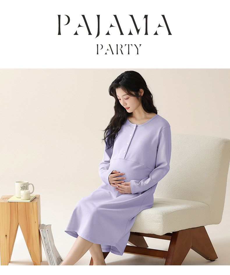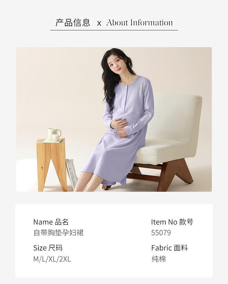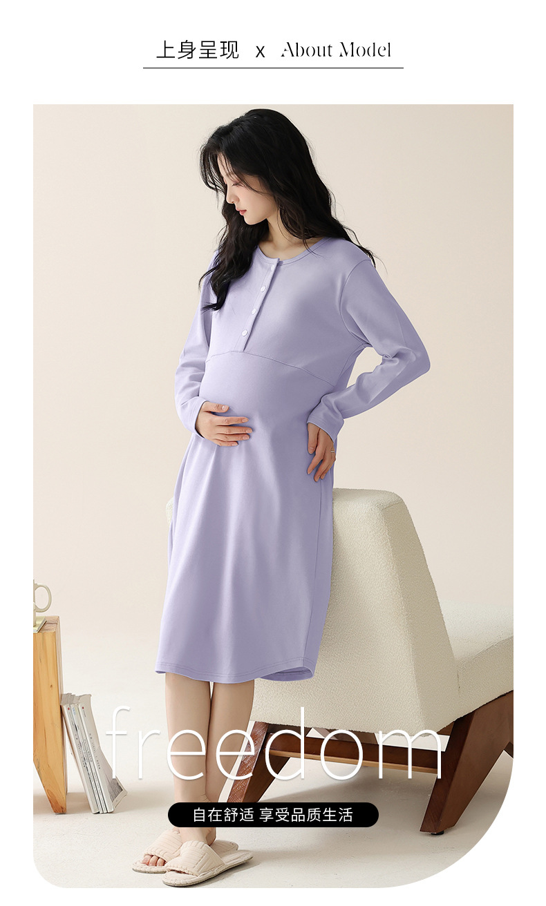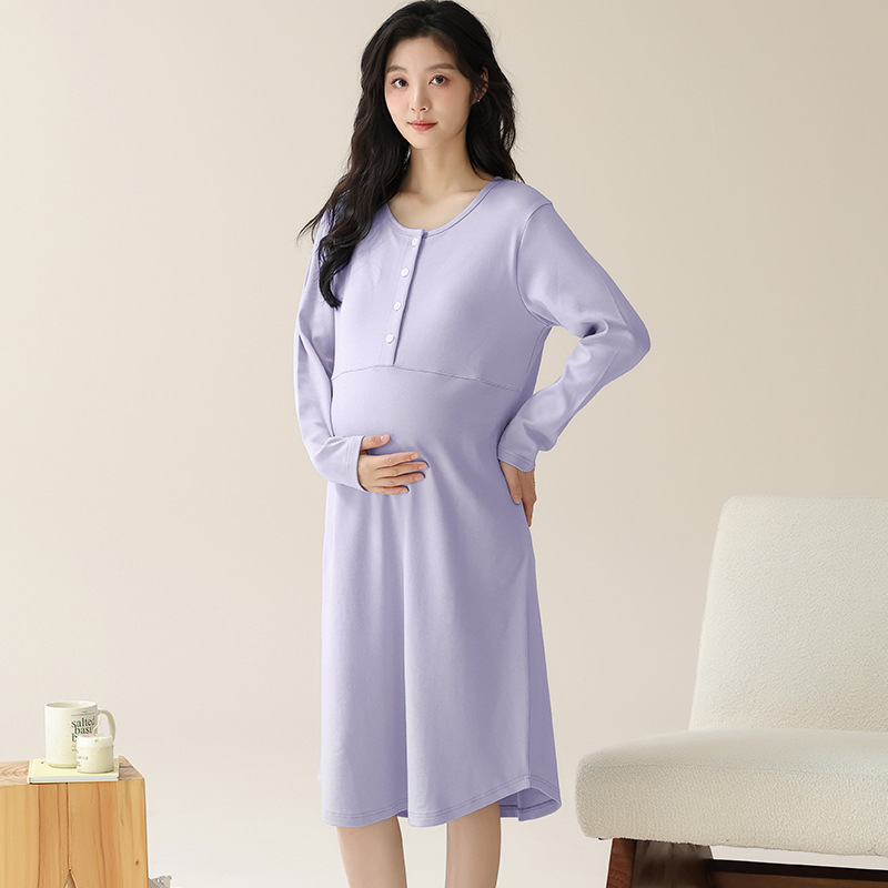 待产裙孕妇月子服春秋款纯棉睡裙哺乳带胸垫睡衣女款2024新款夏季