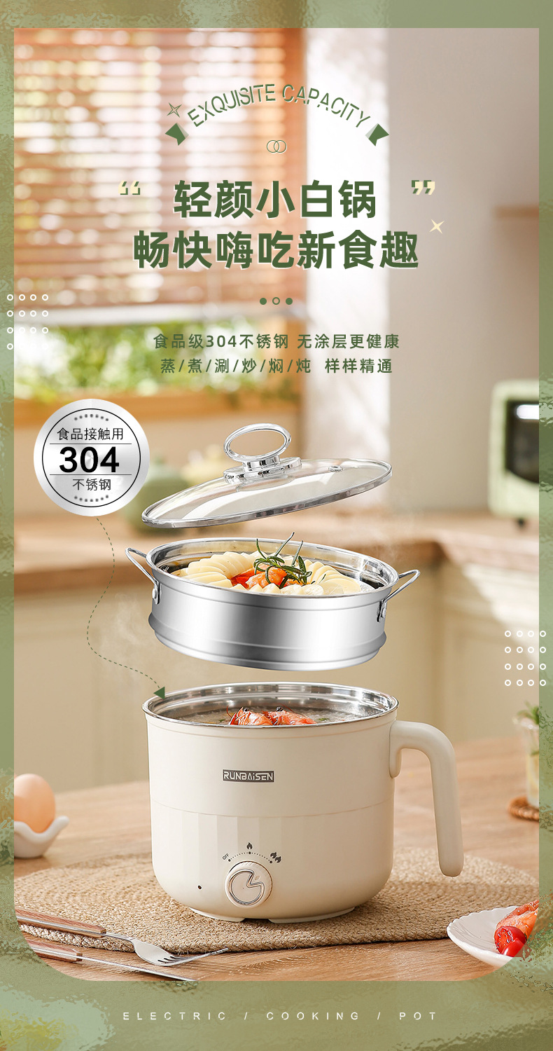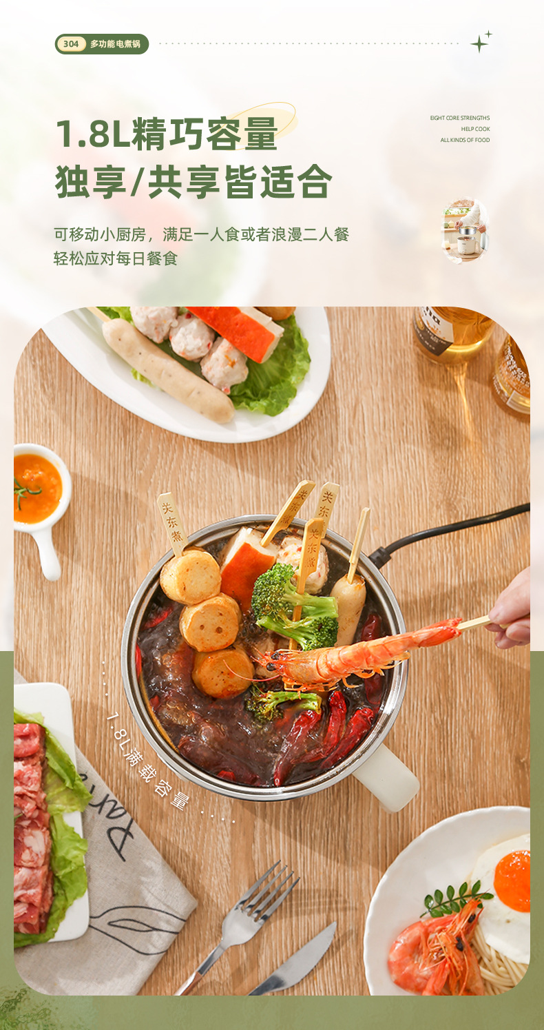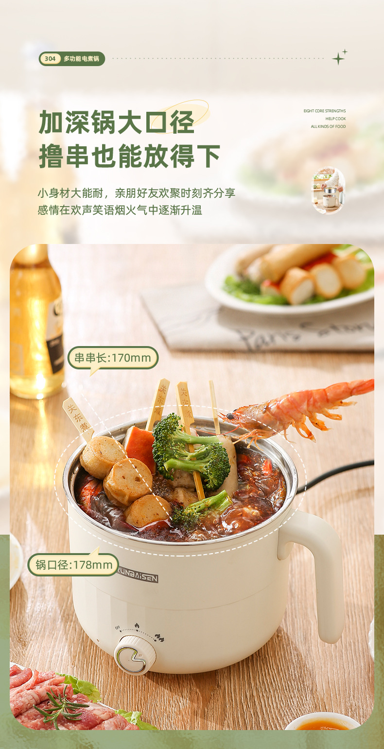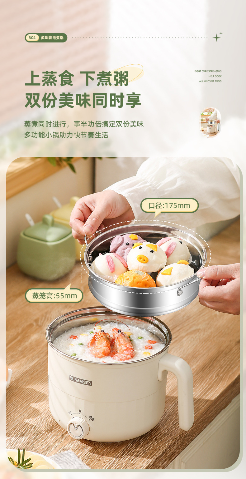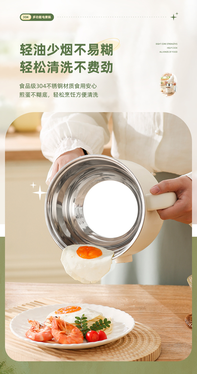多功能电热锅电煮锅宿舍电锅一体电蒸锅小型家用304不锈钢电火锅